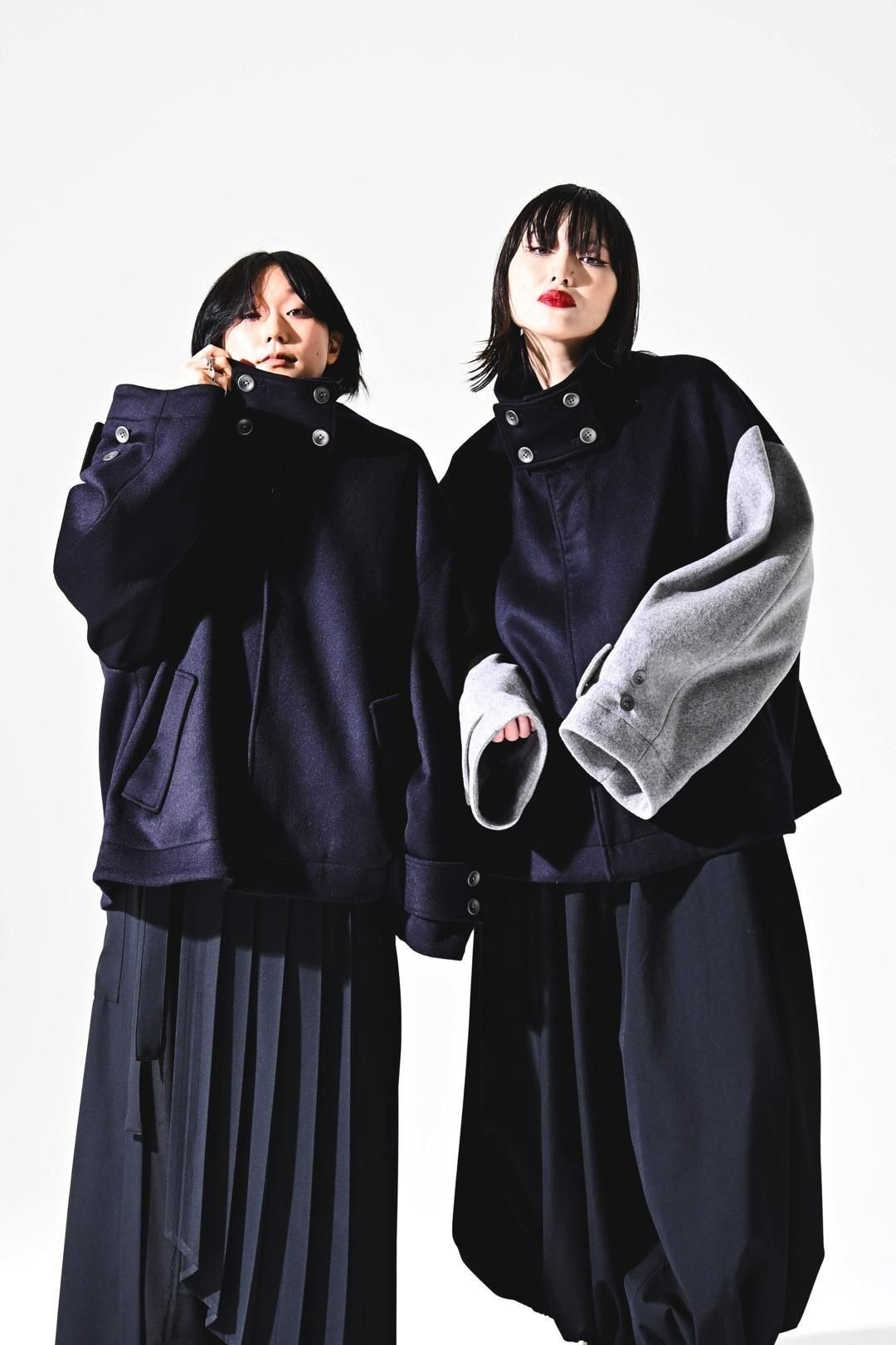 ネックのタブによって襟を立てる/おろすの2種のスタイルをお楽しみ頂けます。