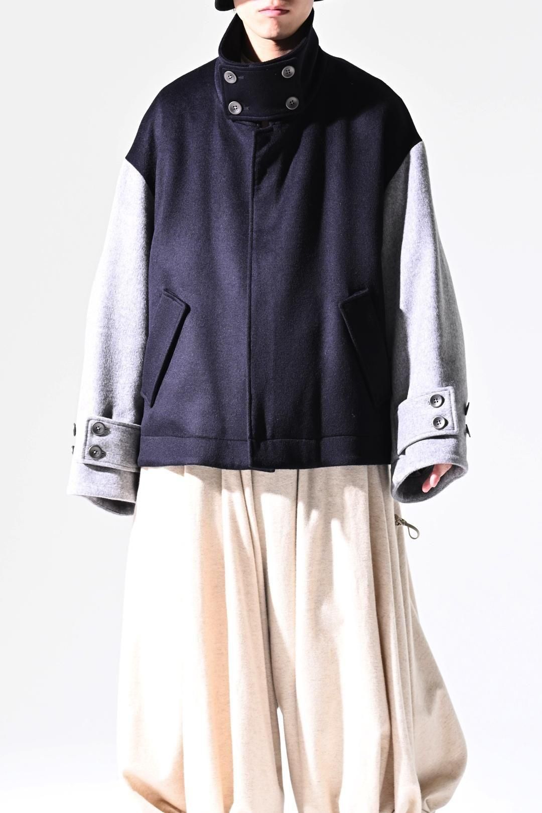 高級毛織物の産地"尾州"産の上質なウールビーバー生地で仕上げたハイネックブルゾン。