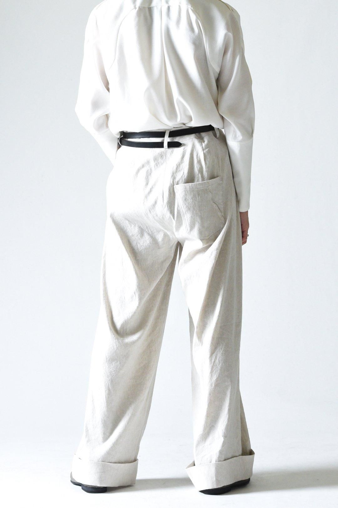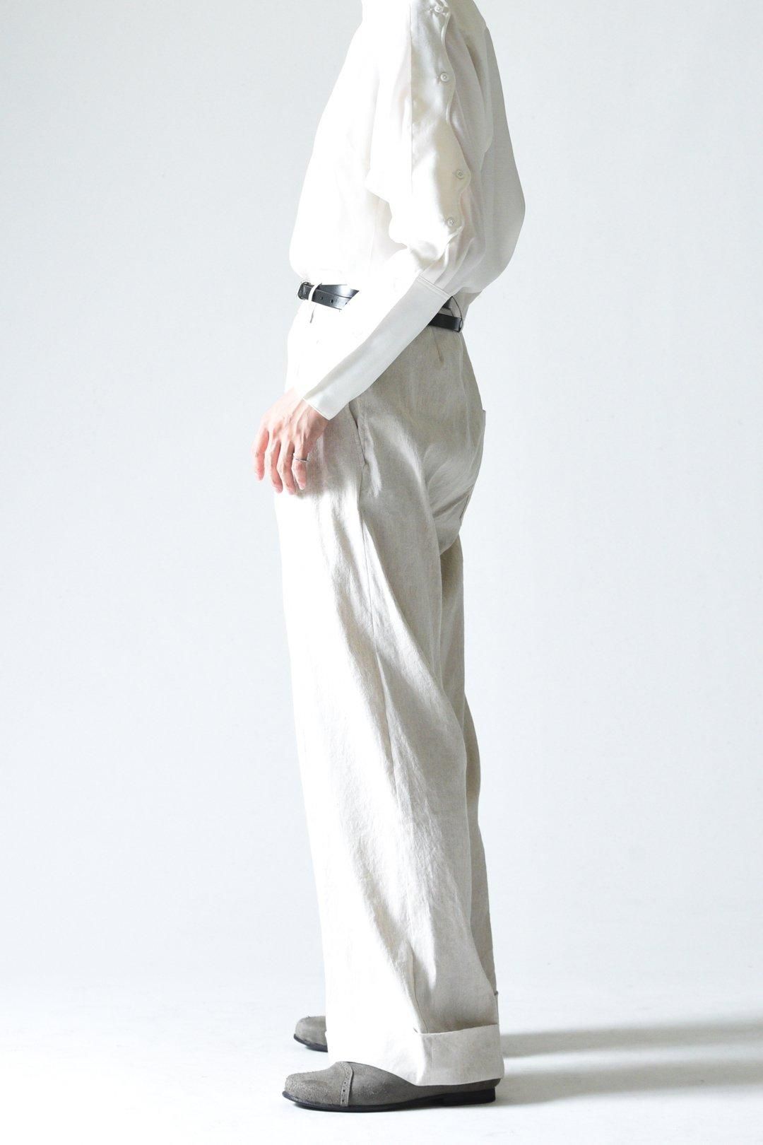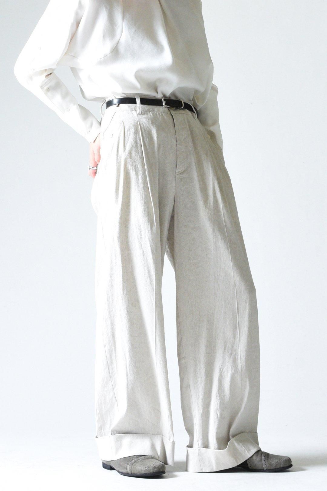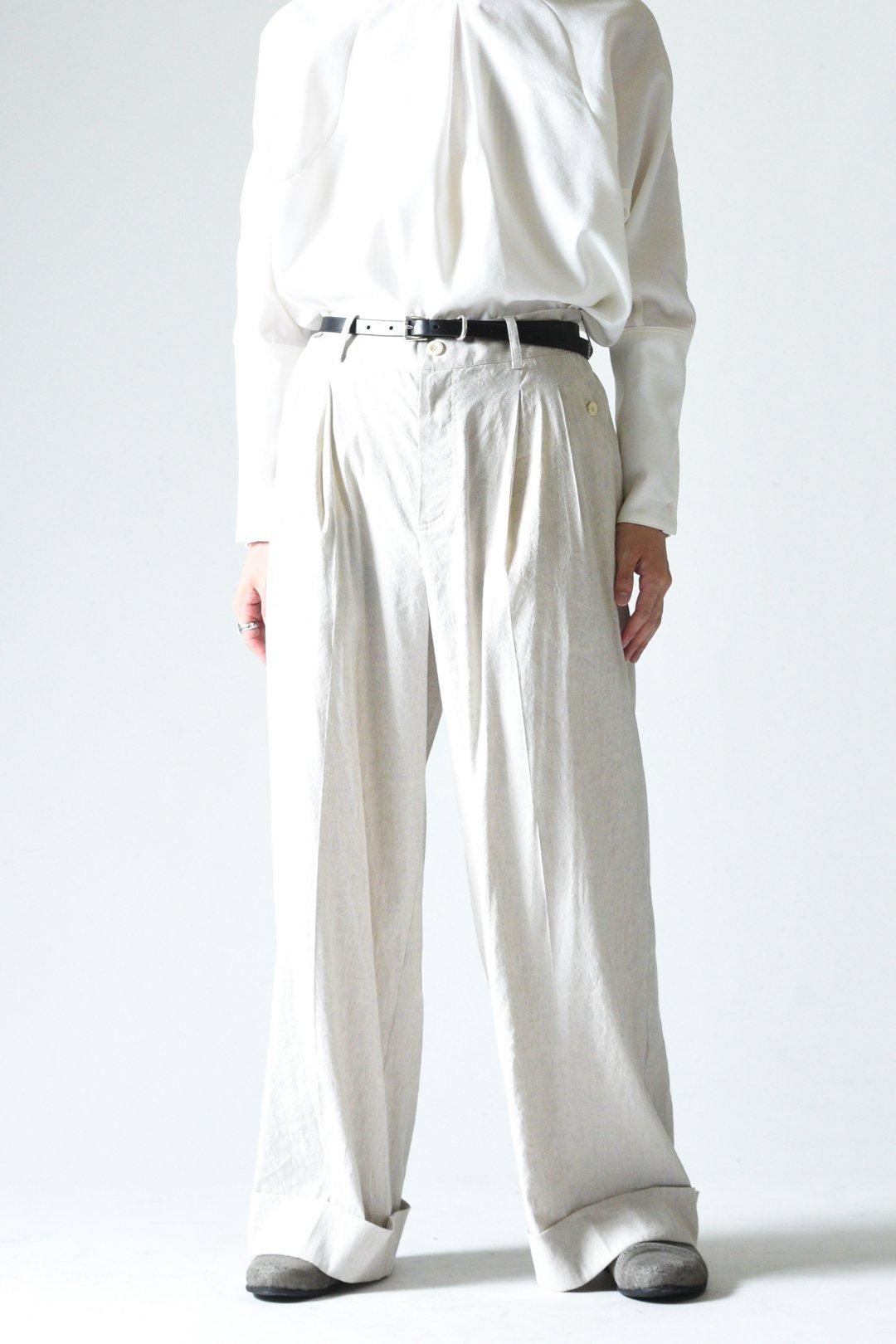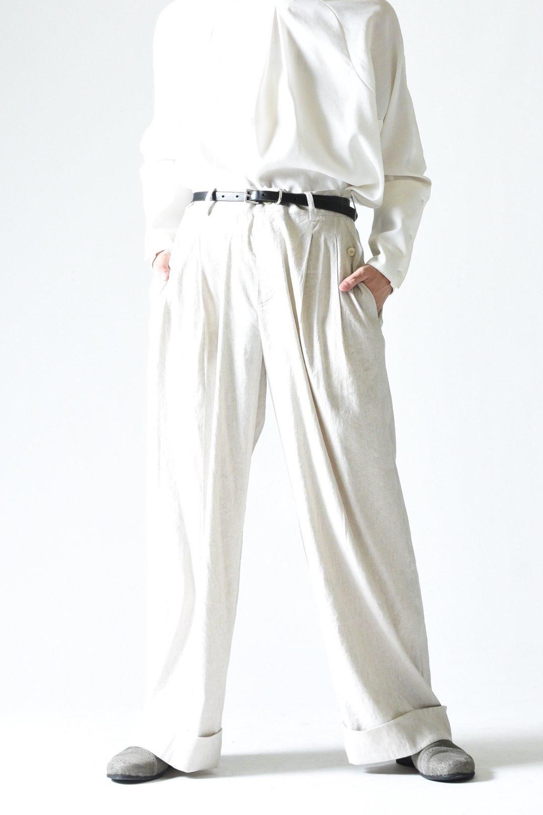 リラックス感のあるダブル仕上げのワイドトラウザーズ。