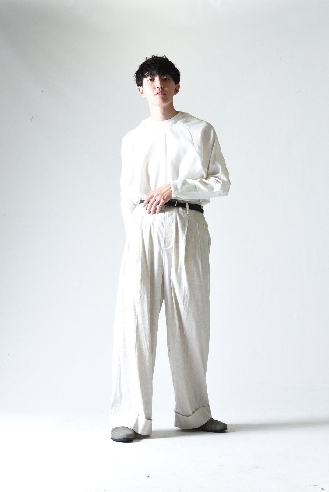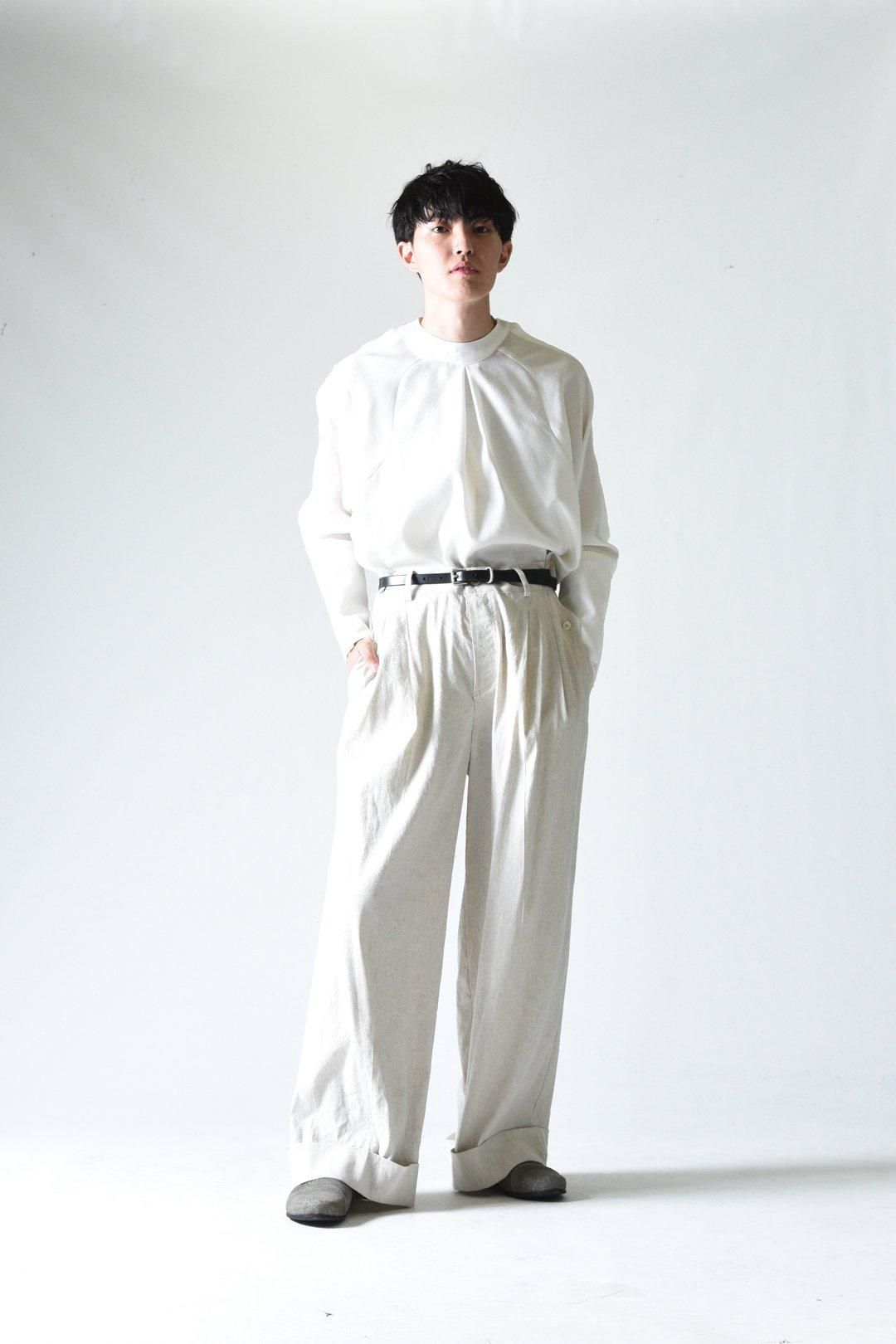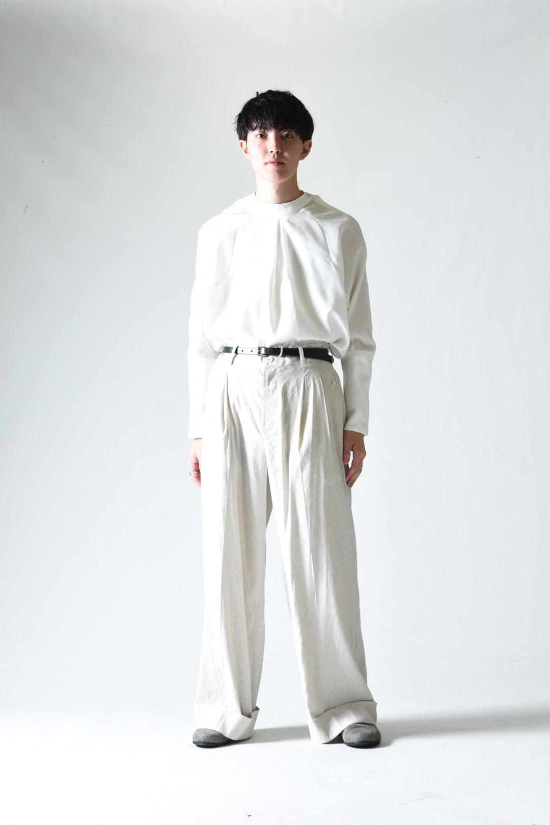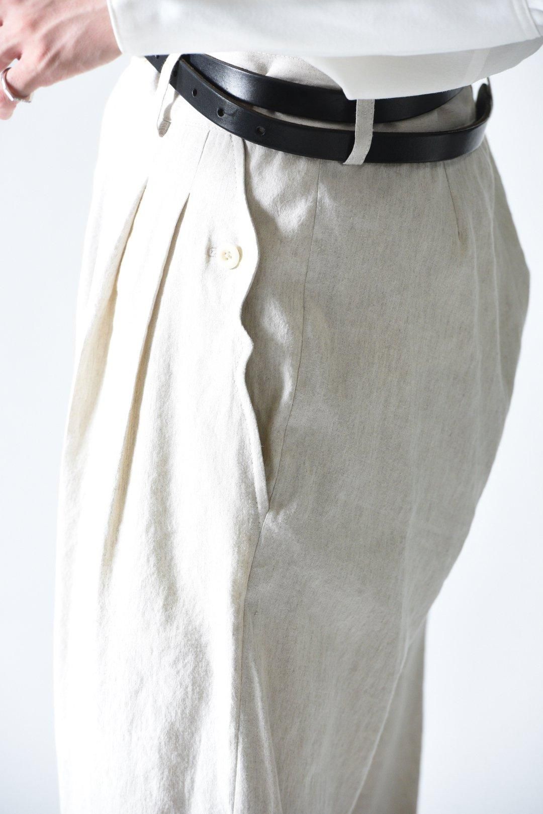 リラックス感のあるダブル仕上げのワイドトラウザーズ。