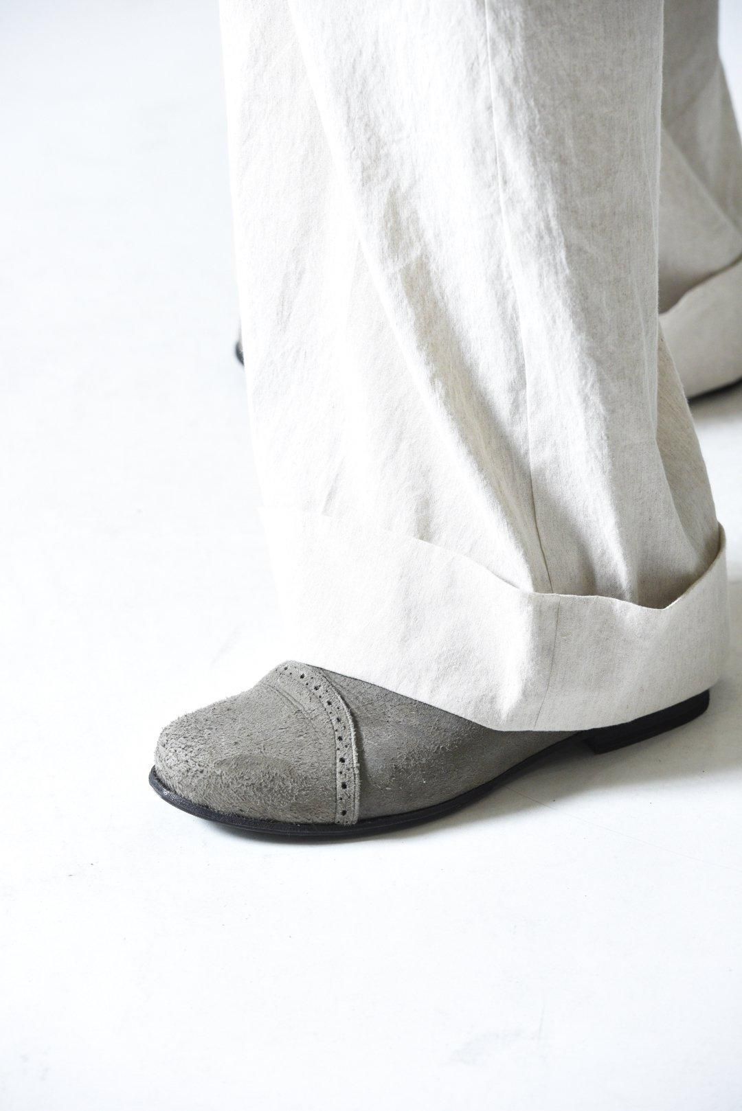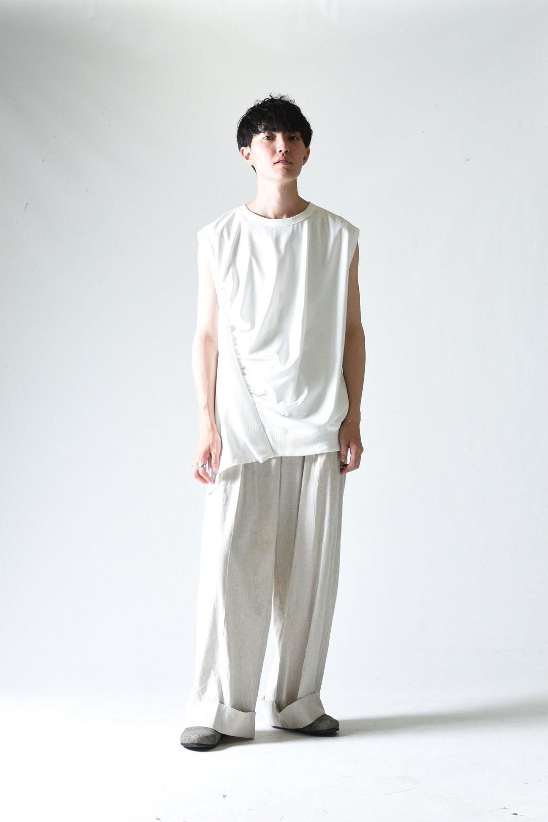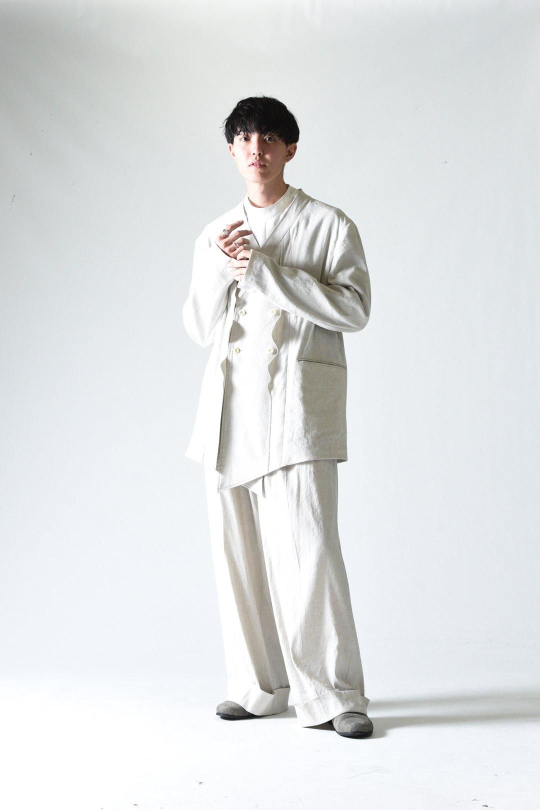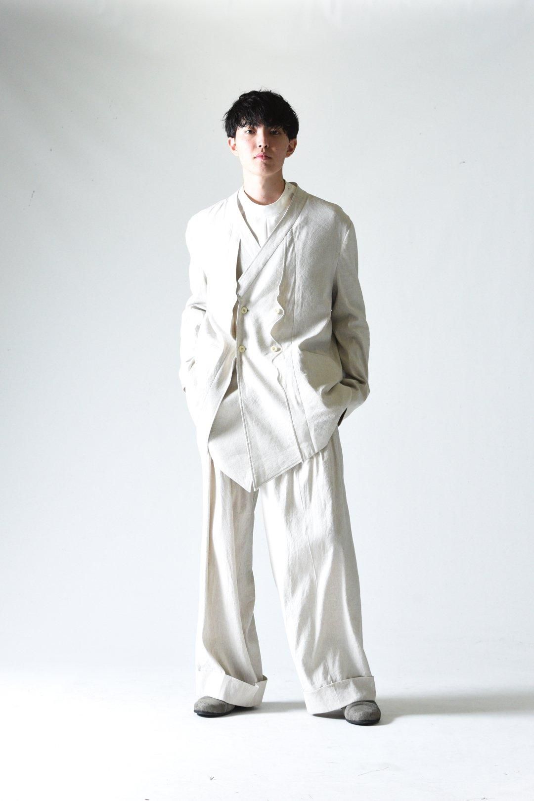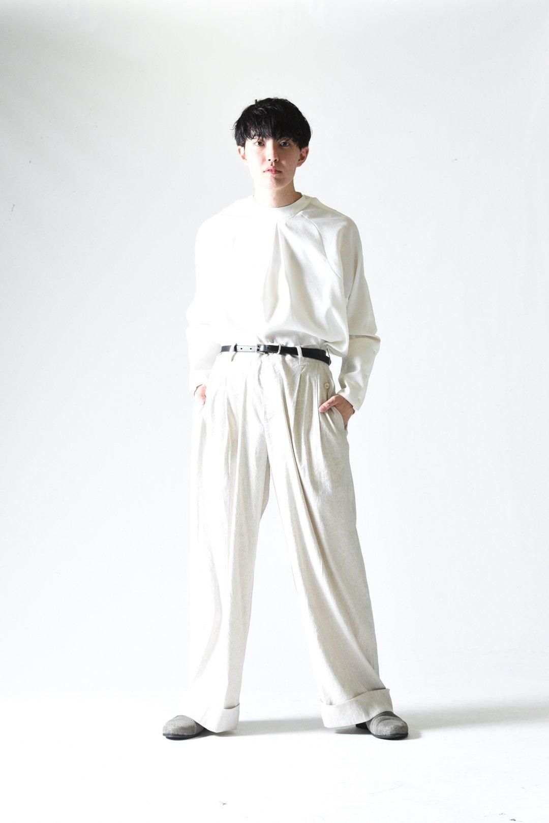 リラックス感のあるダブル仕上げのワイドトラウザーズ。