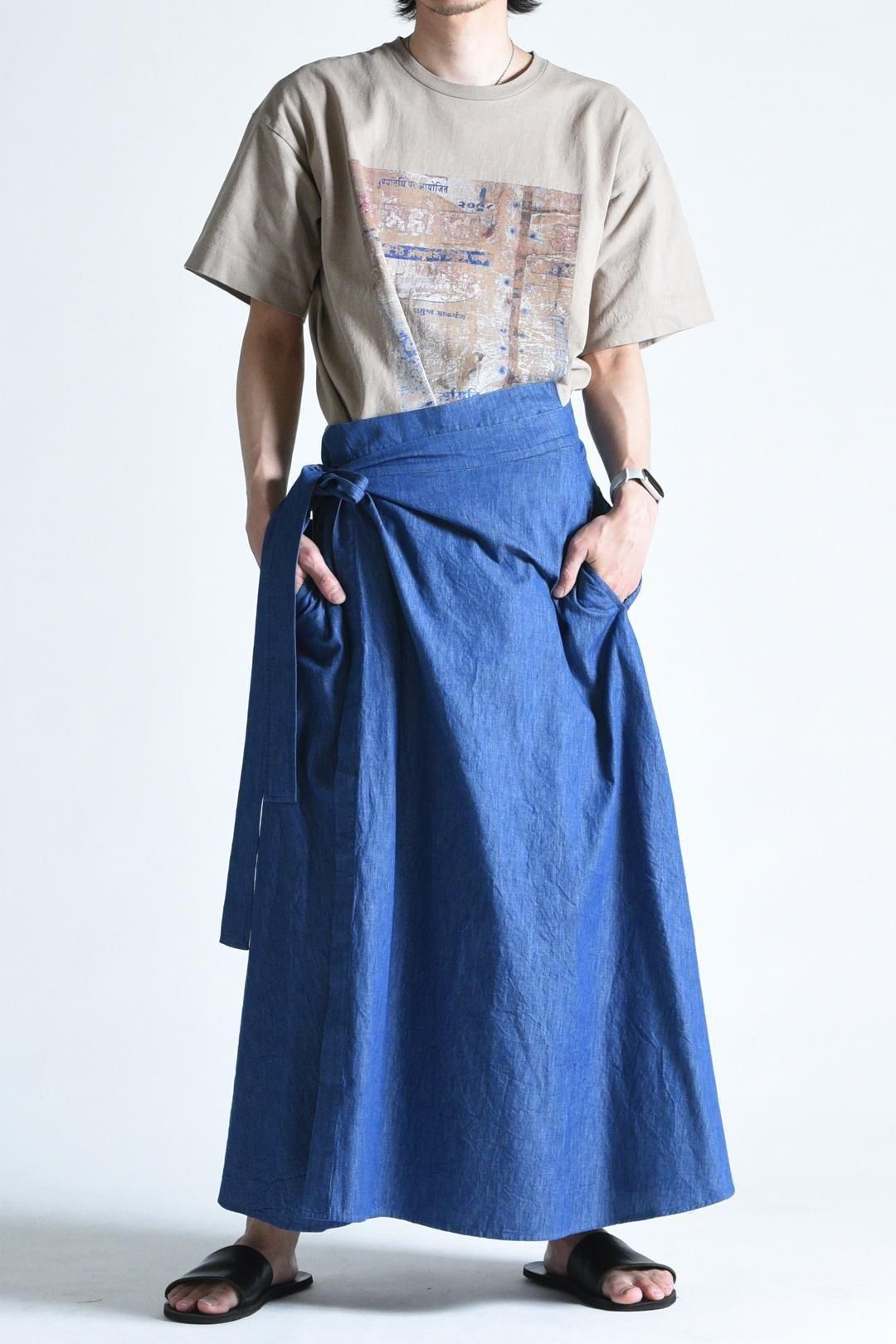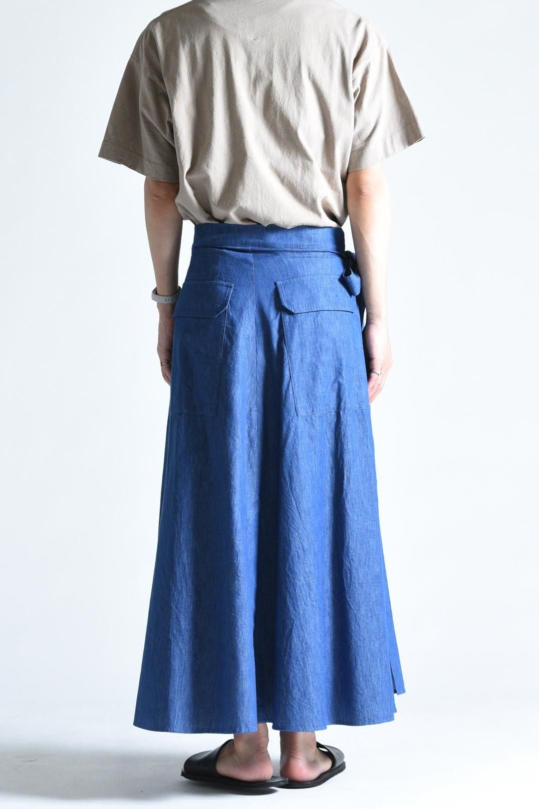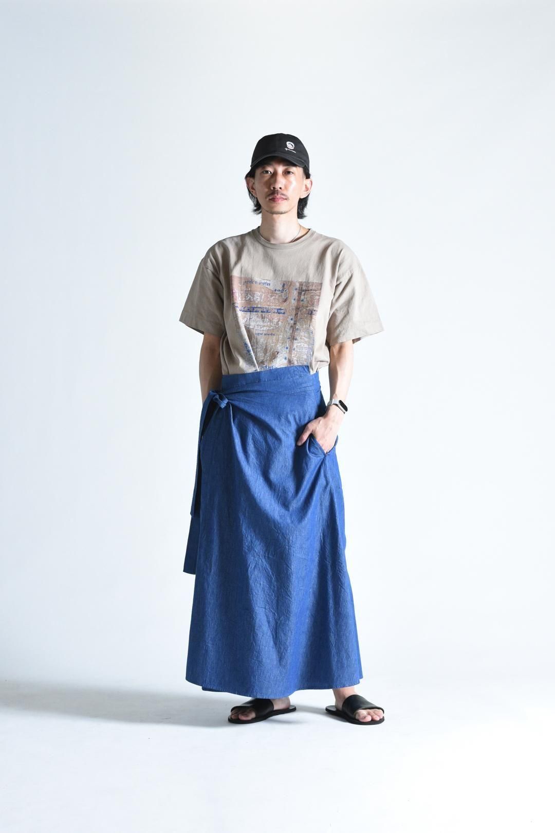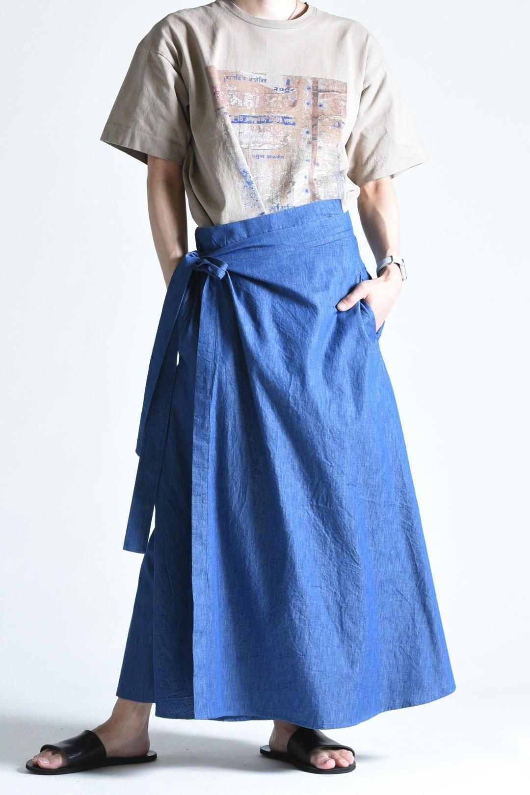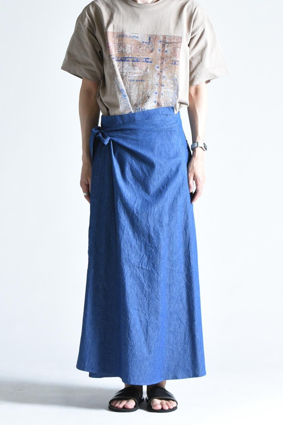 デニムの産地"福山"で織られたライトオンスデニム生地で仕立てたユニセックス巻きスカート。