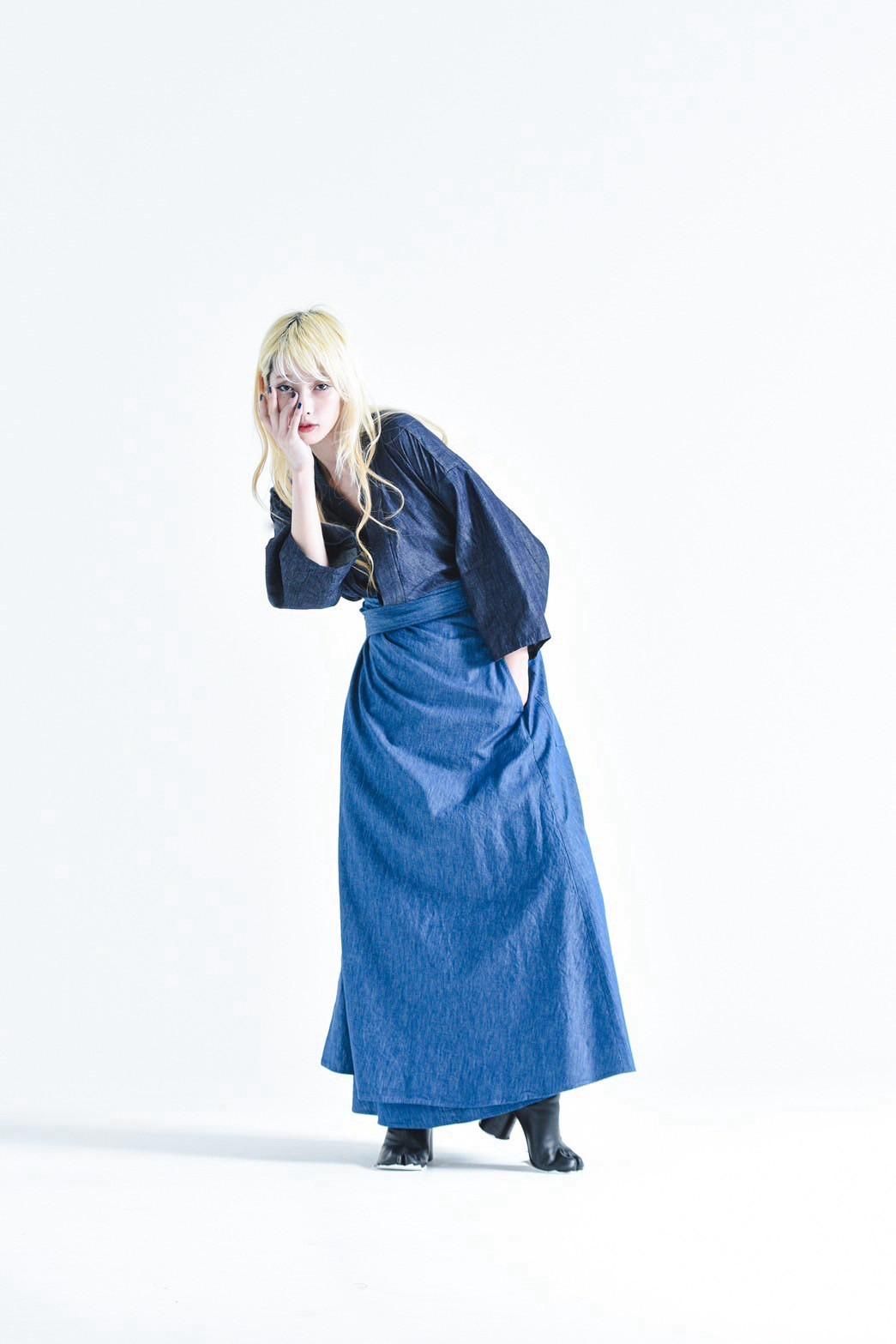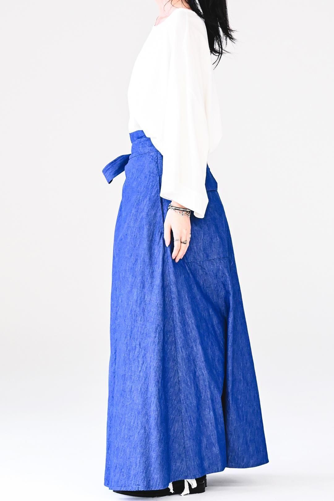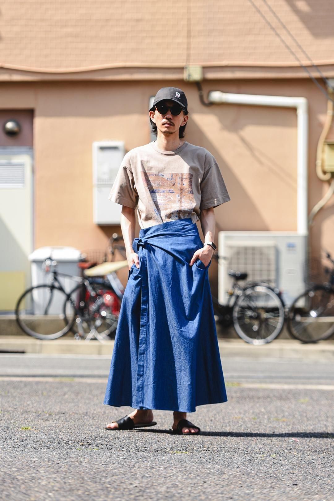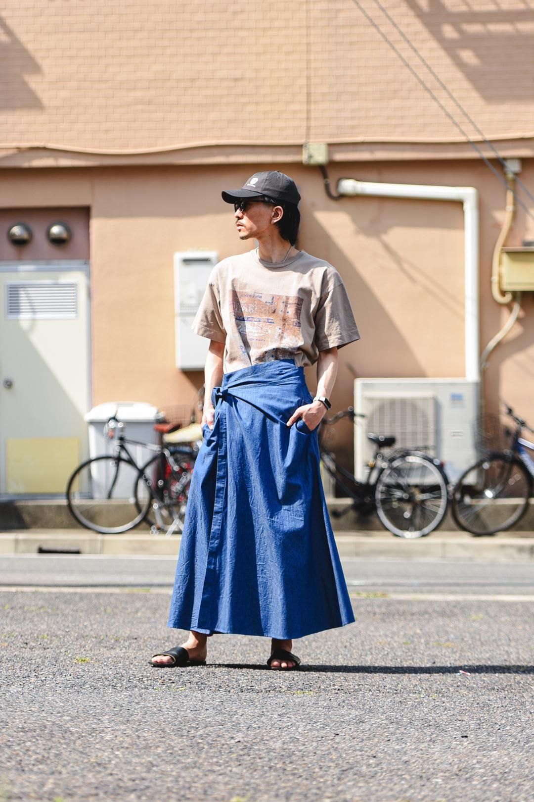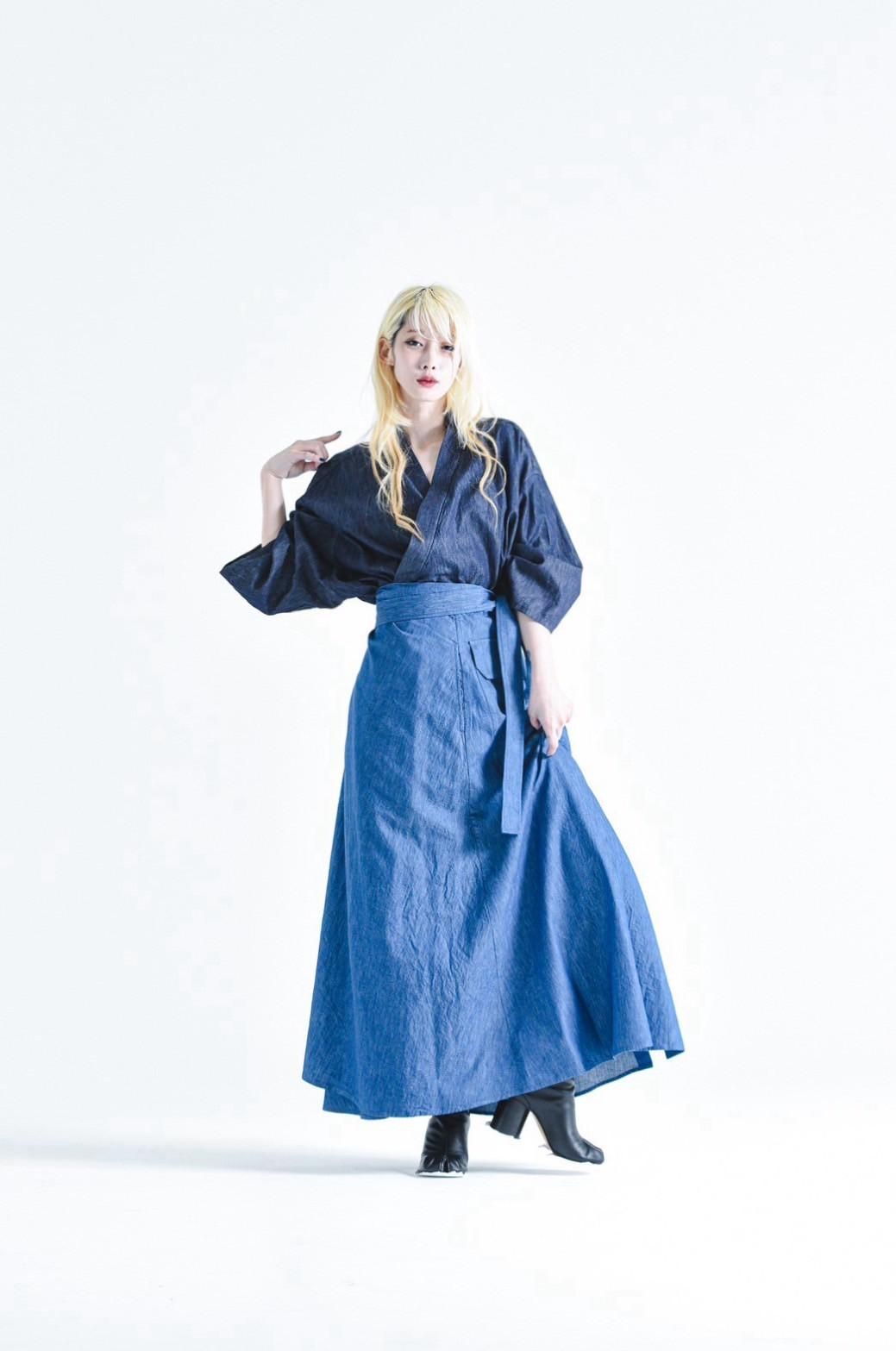 デニムの産地"福山"で織られたライトオンスデニム生地で仕立てたユニセックス巻きスカート。