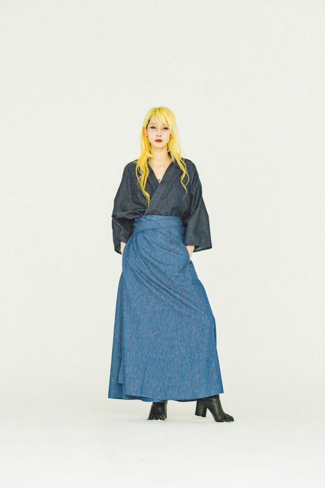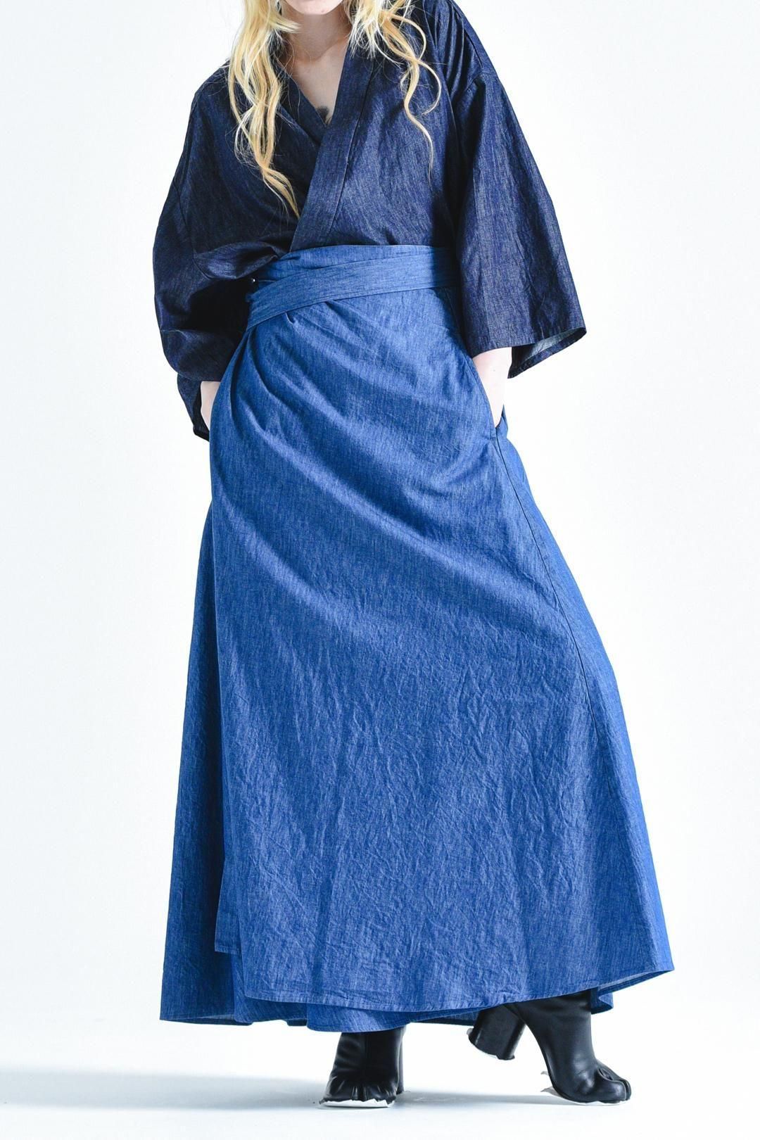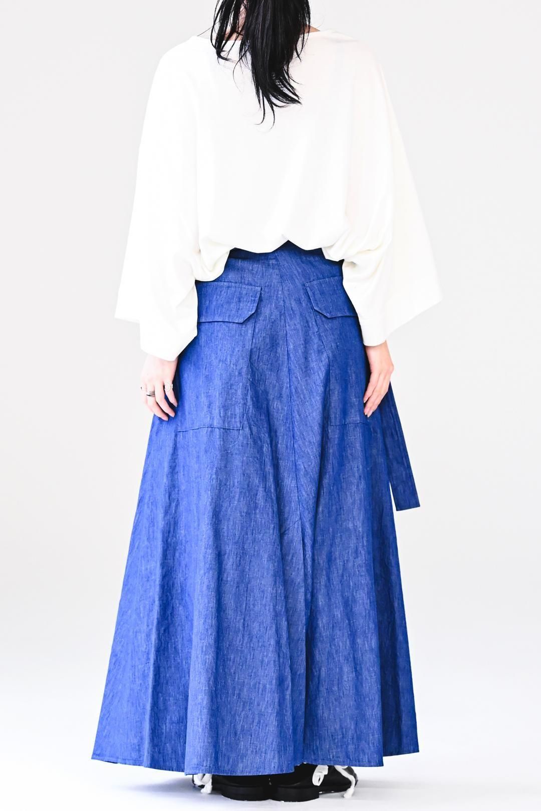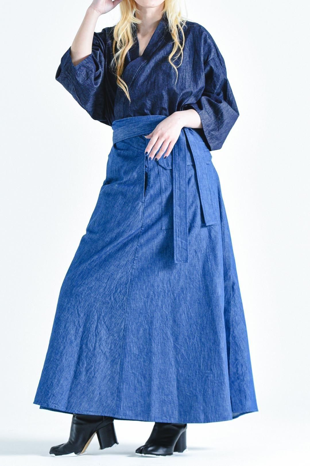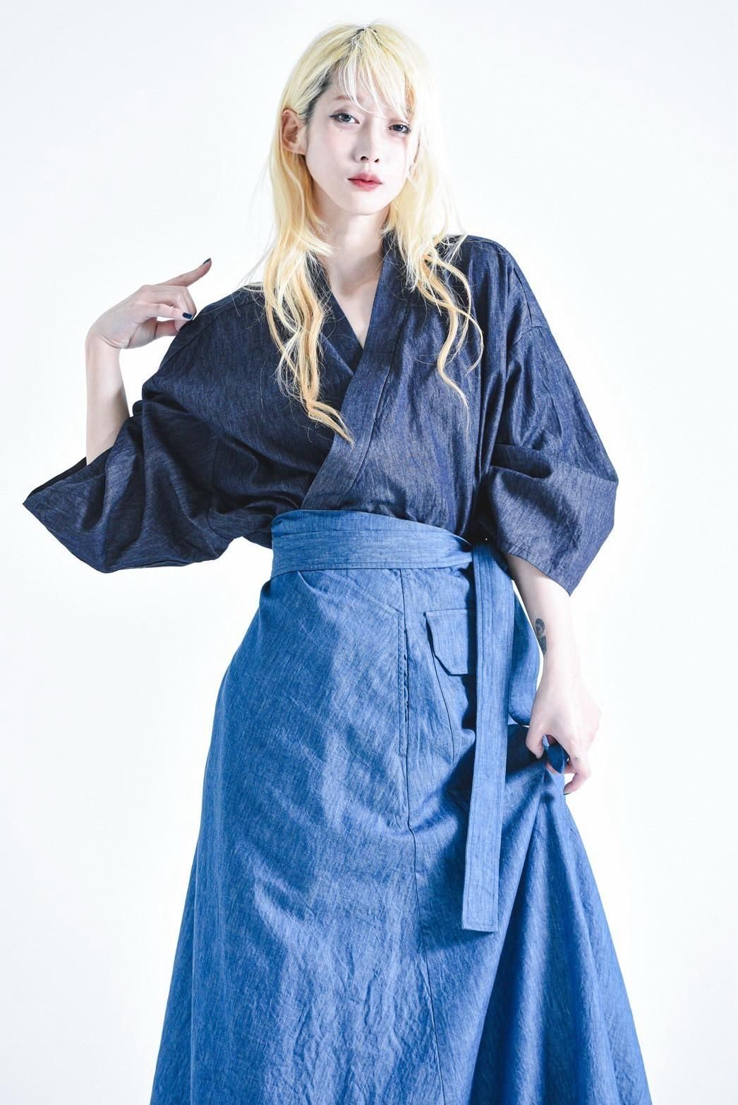 デニムの産地"福山"で織られたライトオンスデニム生地で仕立てたユニセックス巻きスカート。