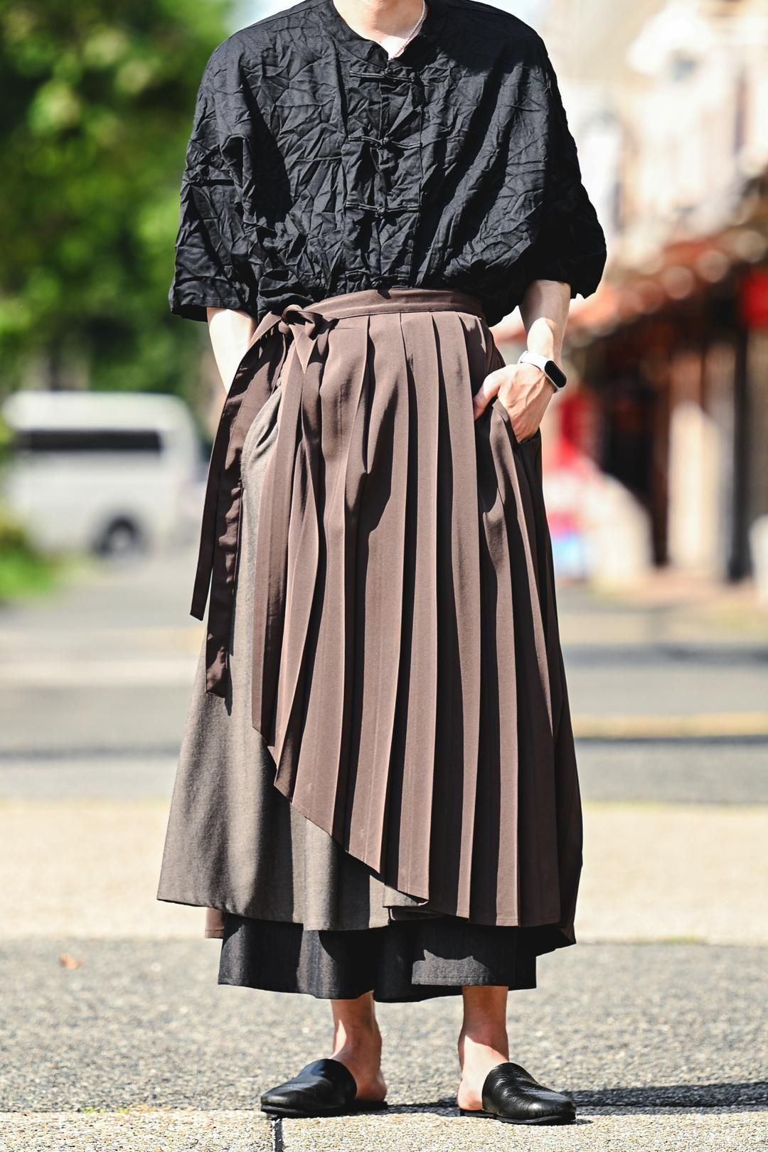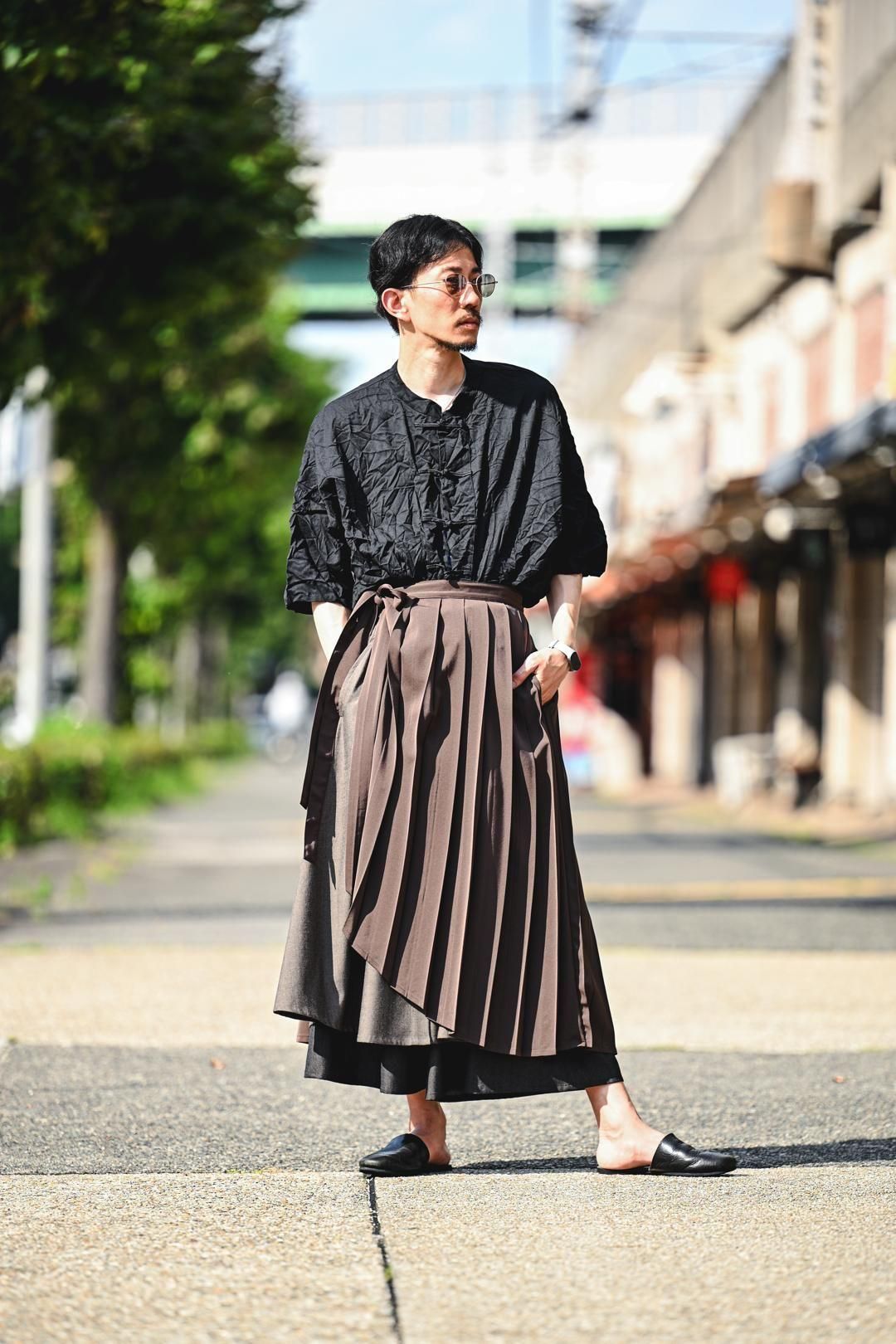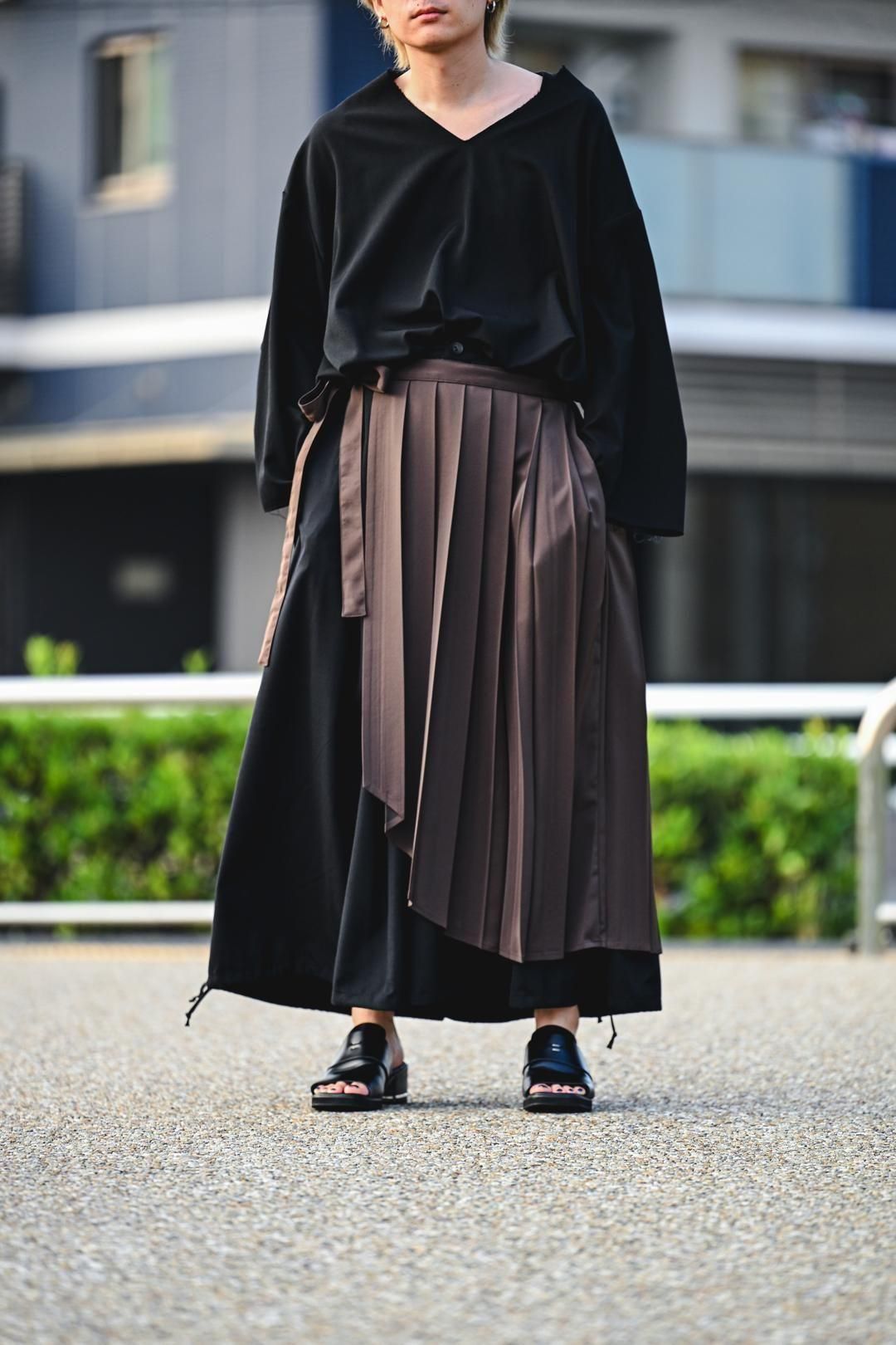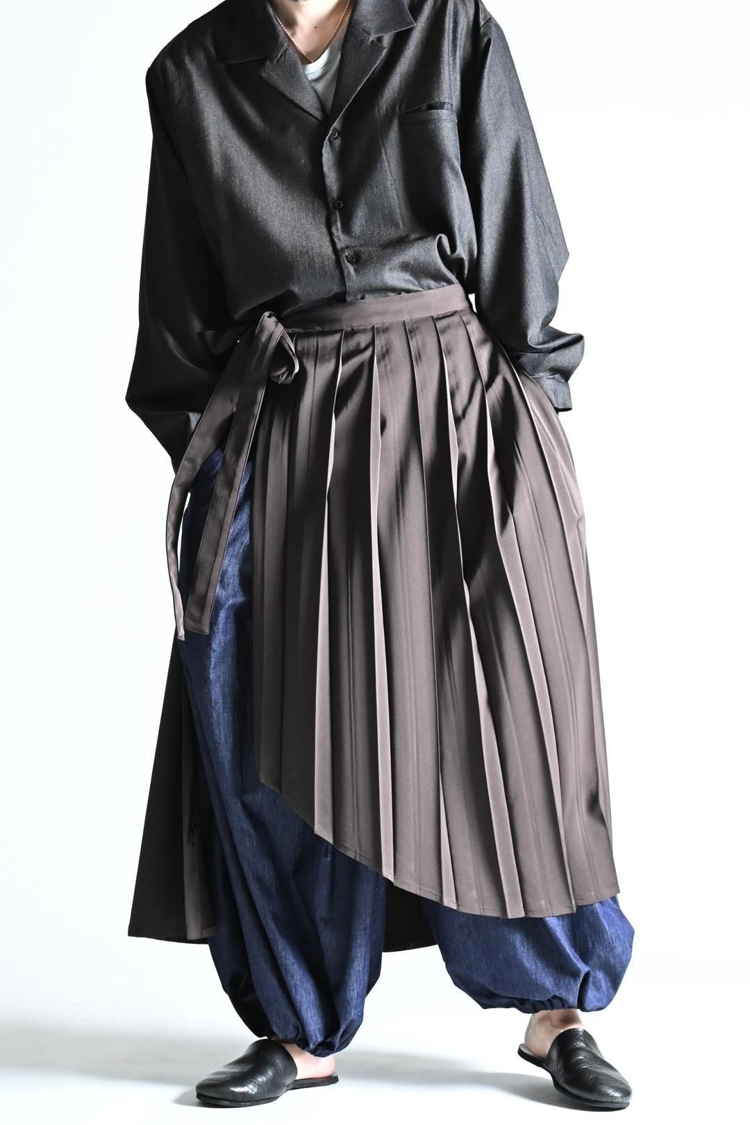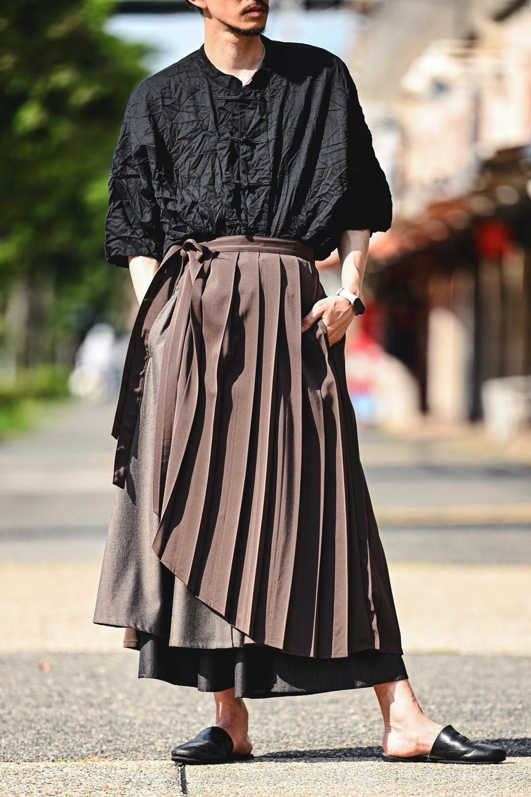 日本の伝統的な衣服である「袴」に見られるヒダの表情をプリーツで表現したラップクロス。