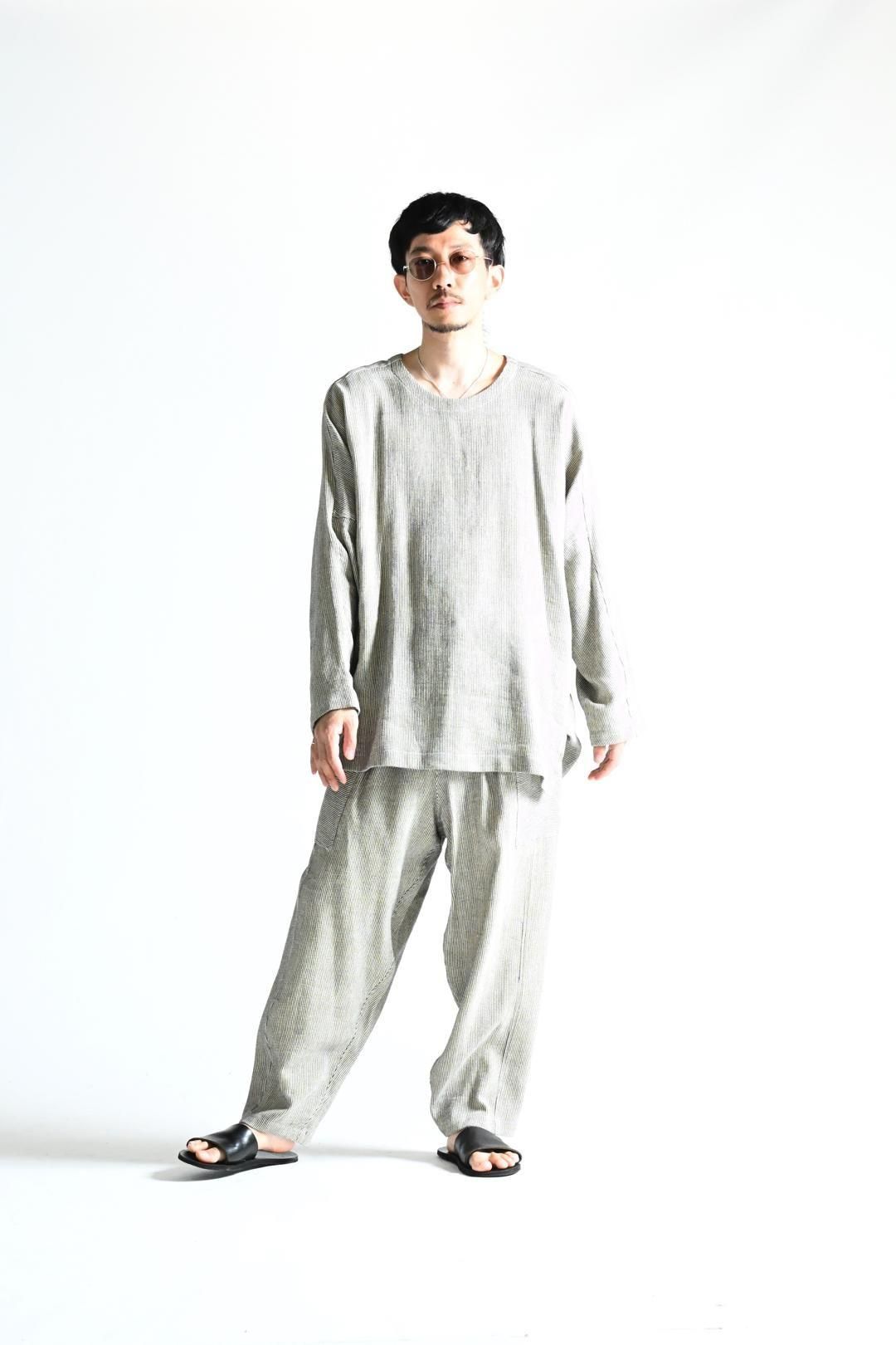 リネンコットンのカディ生地で仕立てたプルオーバーです。