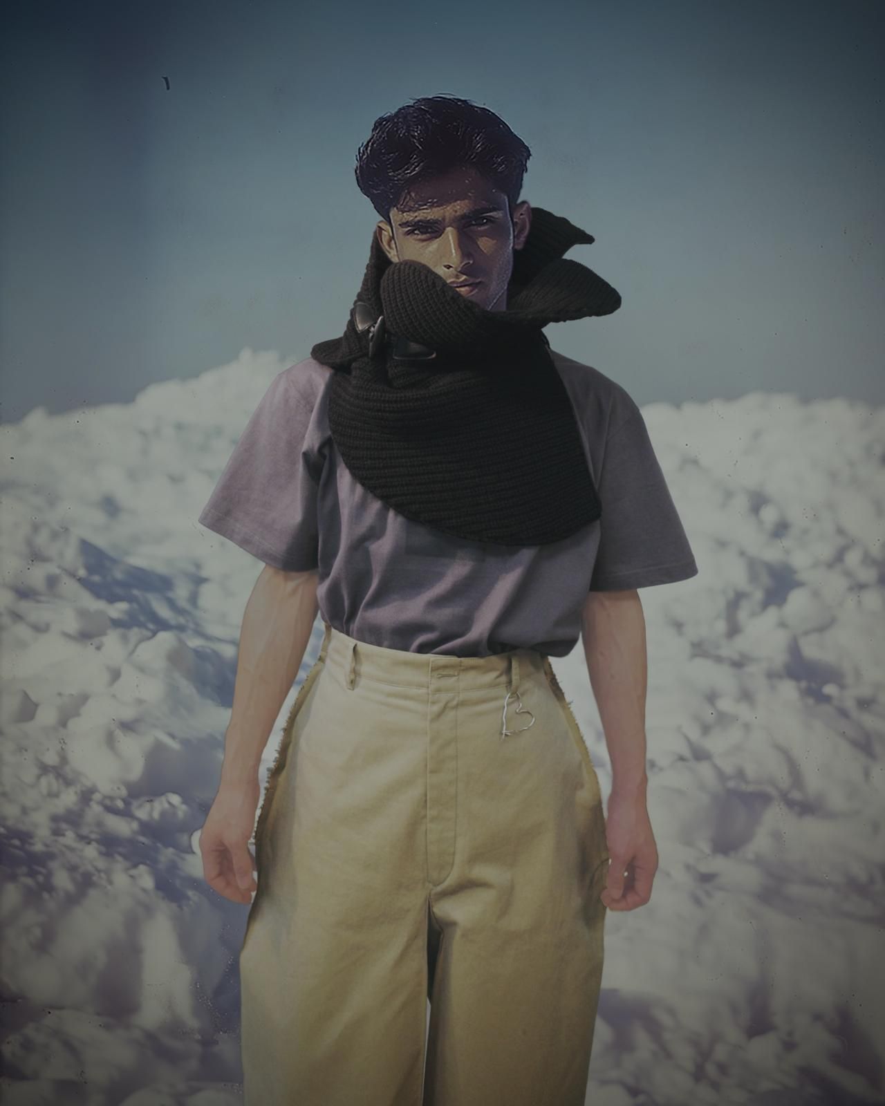 ⾸に巻いて⽴体に起こしていく様にデザインされています。