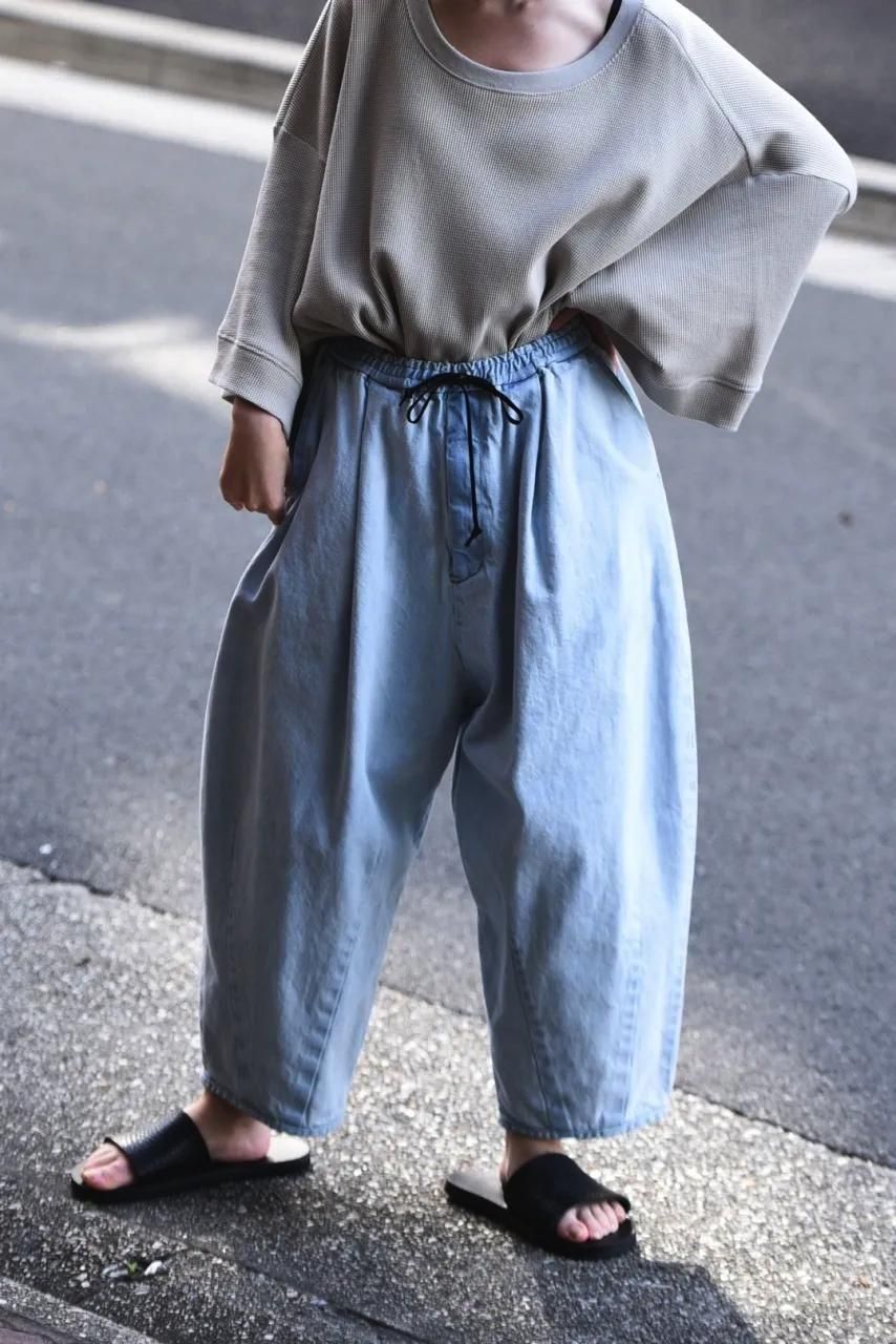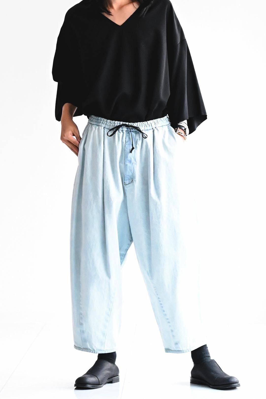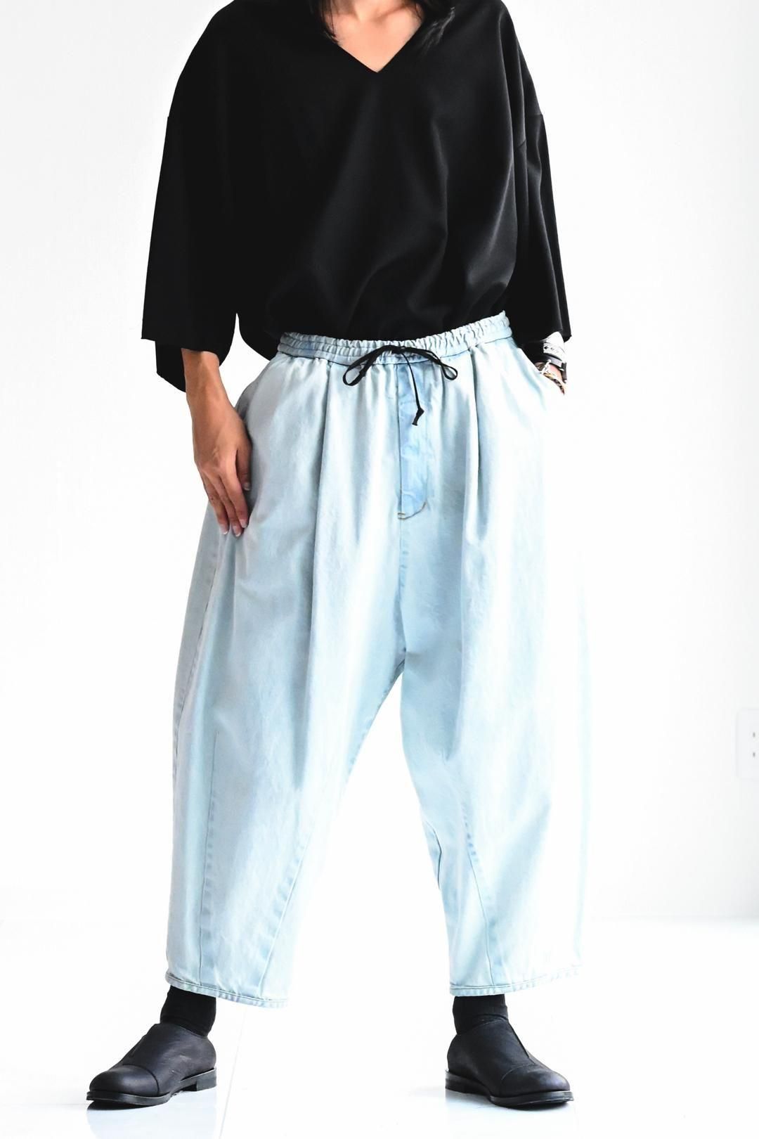 リラックスして履いて頂けるようウエストゴム+紐のイージー仕様で制作されています。