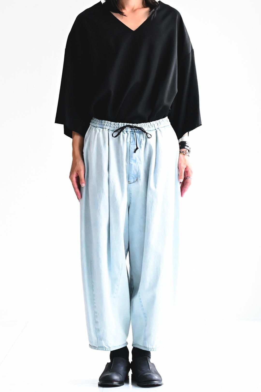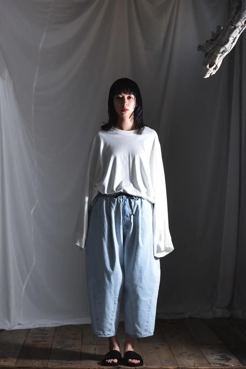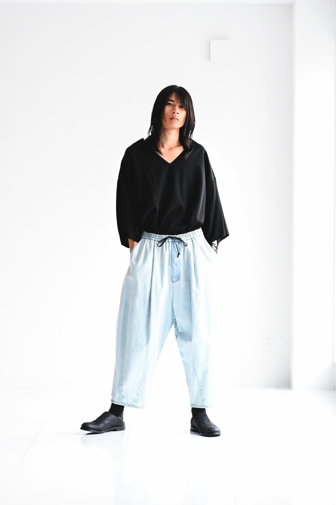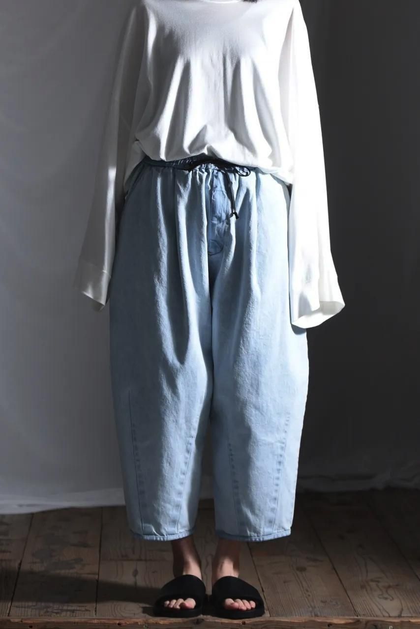 リラックスして履いて頂けるようウエストゴム+紐のイージー仕様で制作されています。