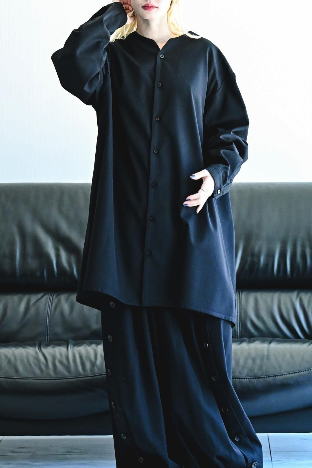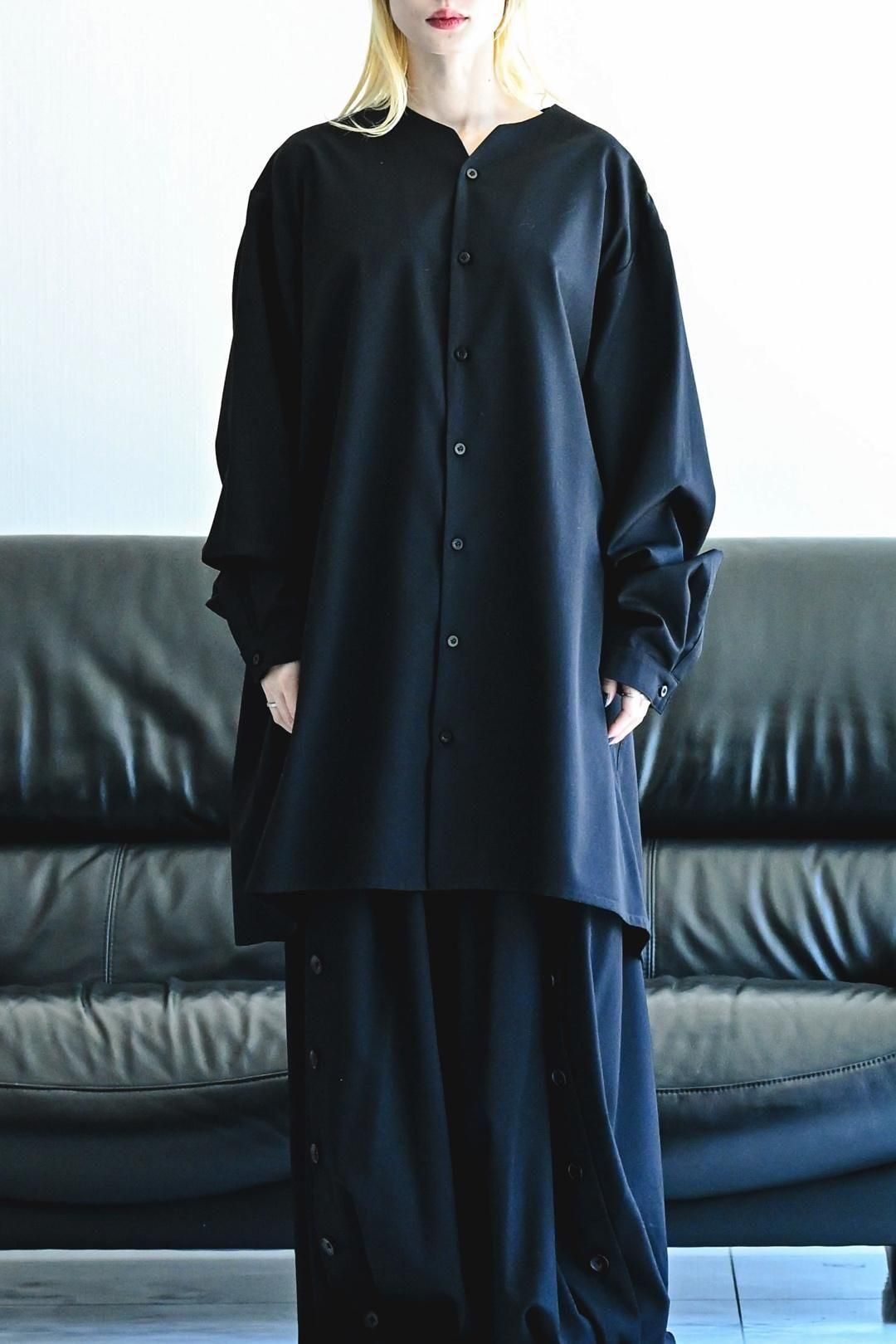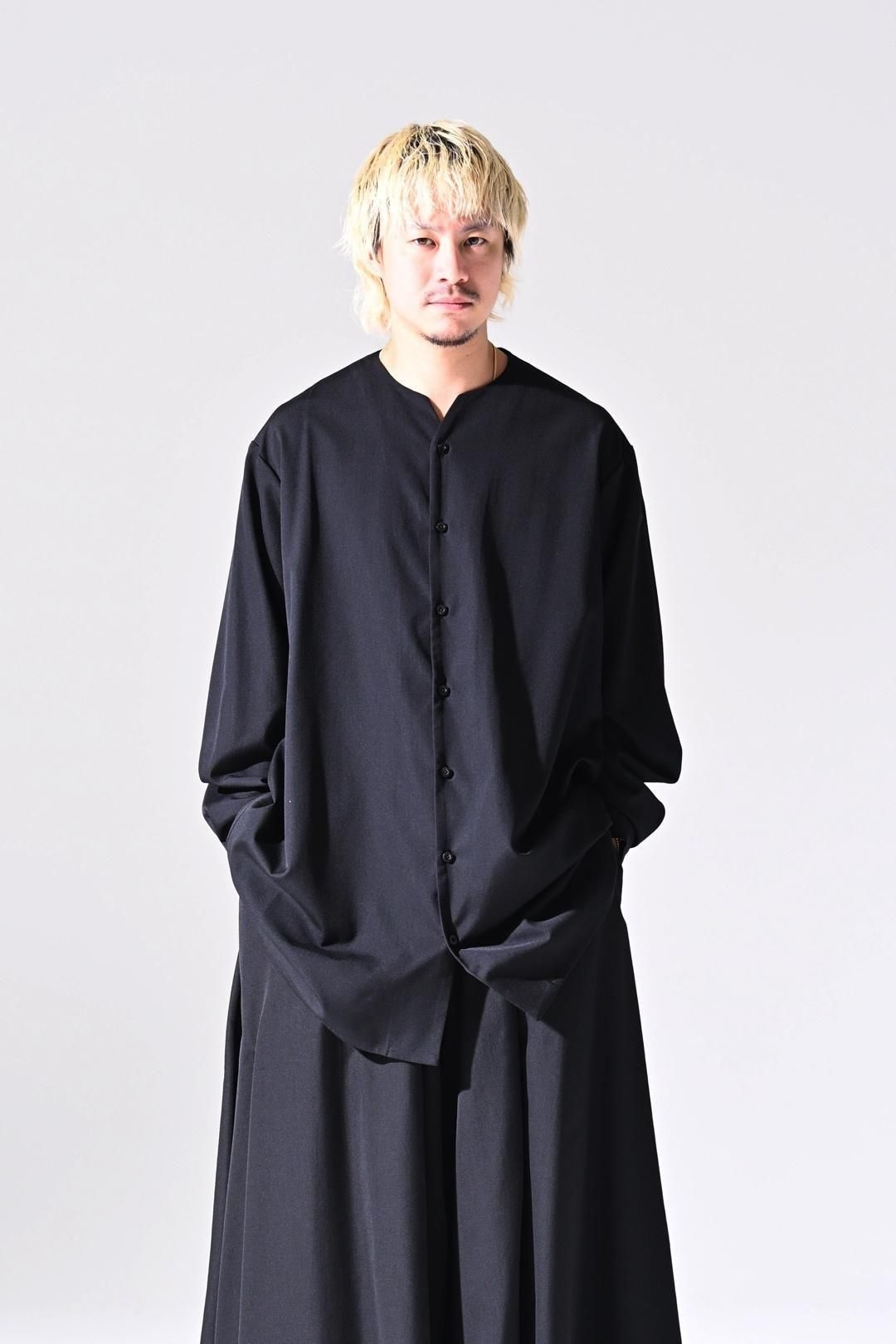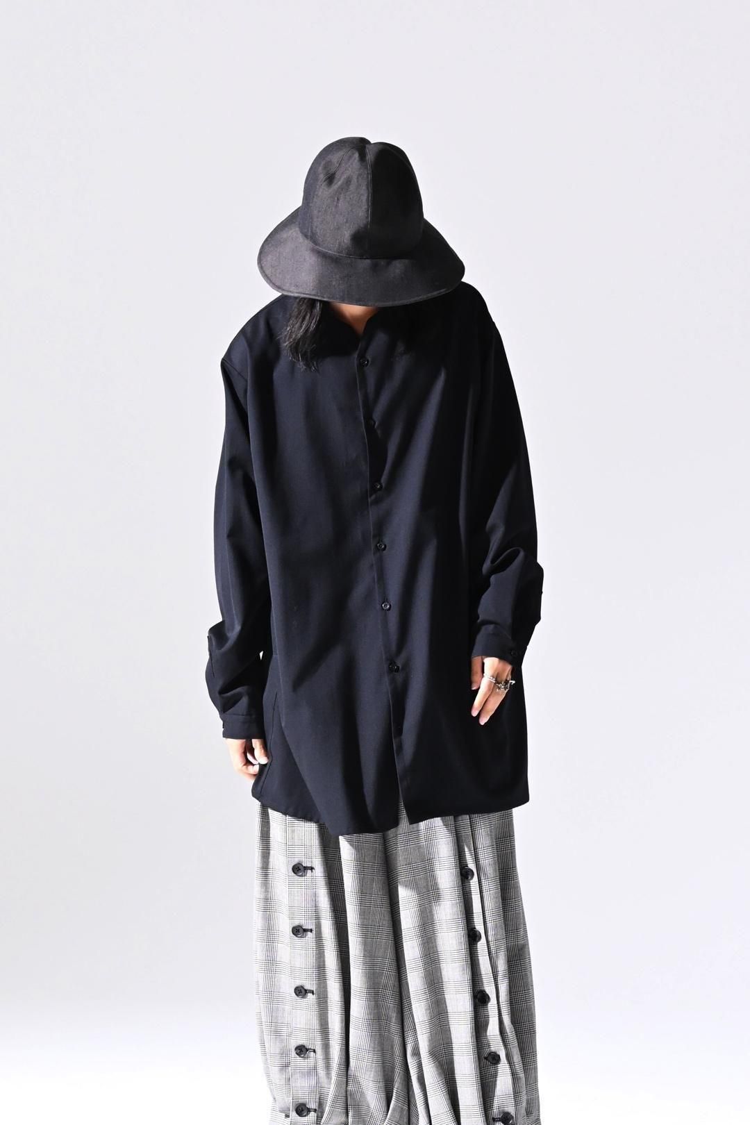 BISHOOLがオリジナルで生産した拘りのウールギャバジンを使用したオーバーサイズのラペルシャツ。