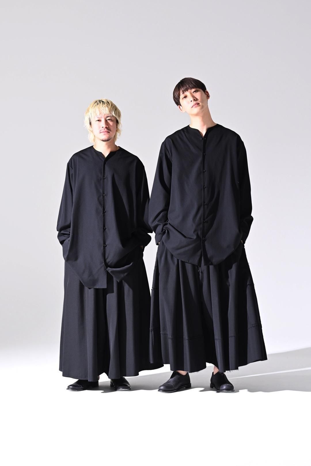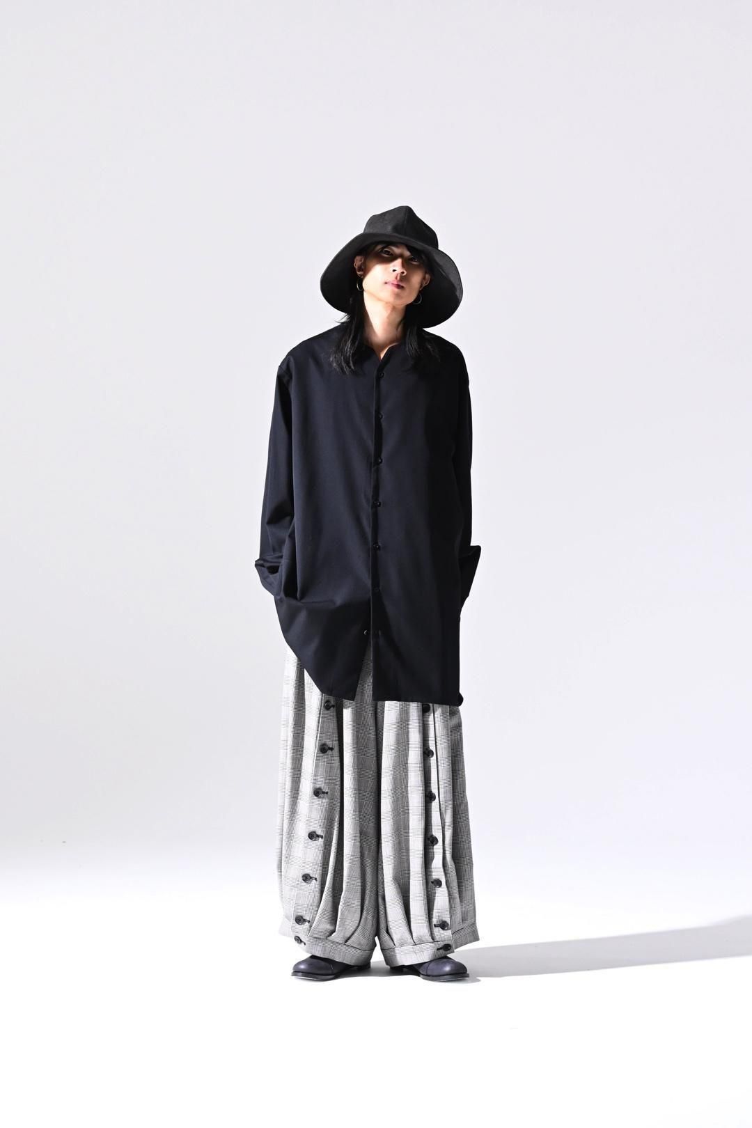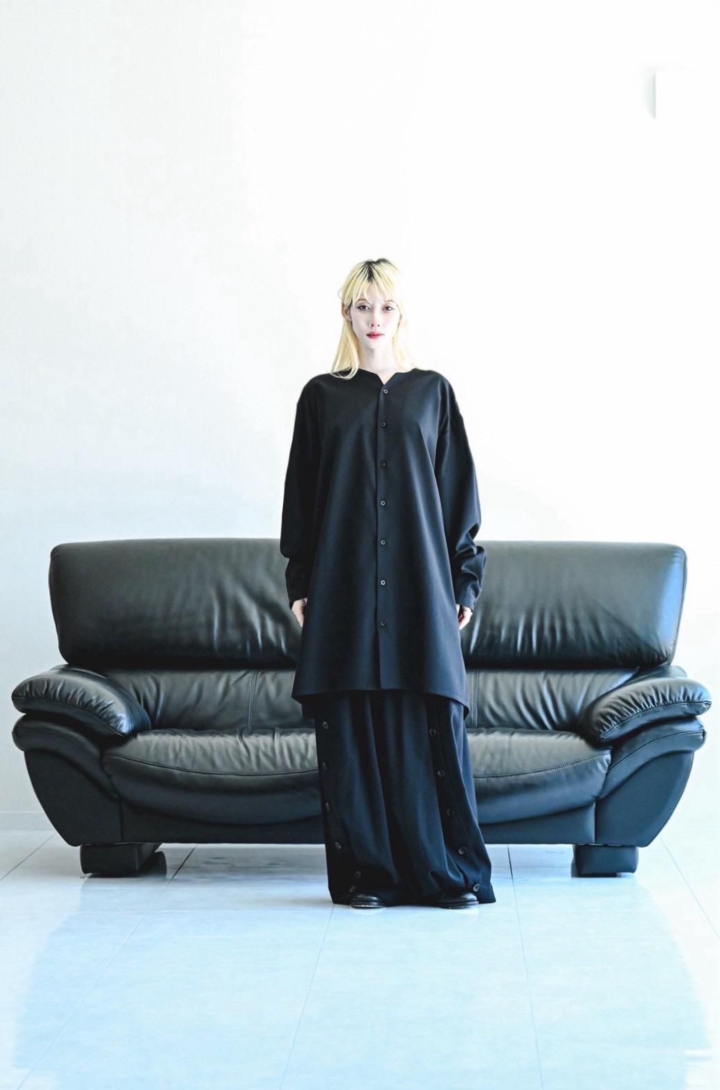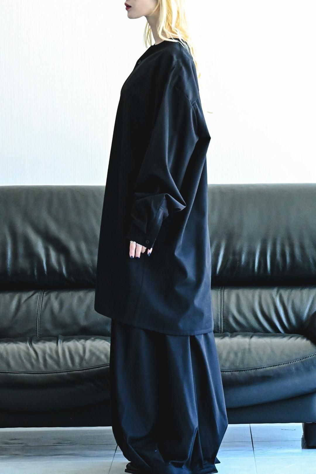 BISHOOLがオリジナルで生産した拘りのウールギャバジンを使用したオーバーサイズのラペルシャツ。