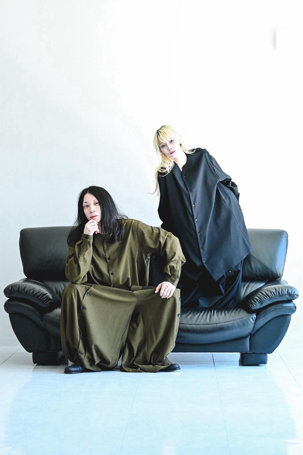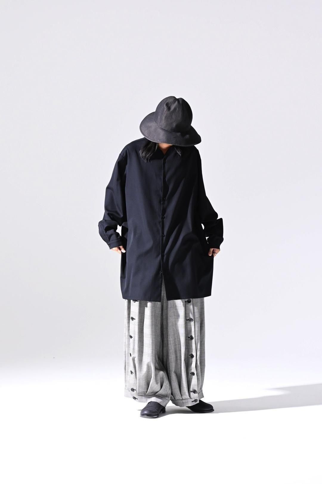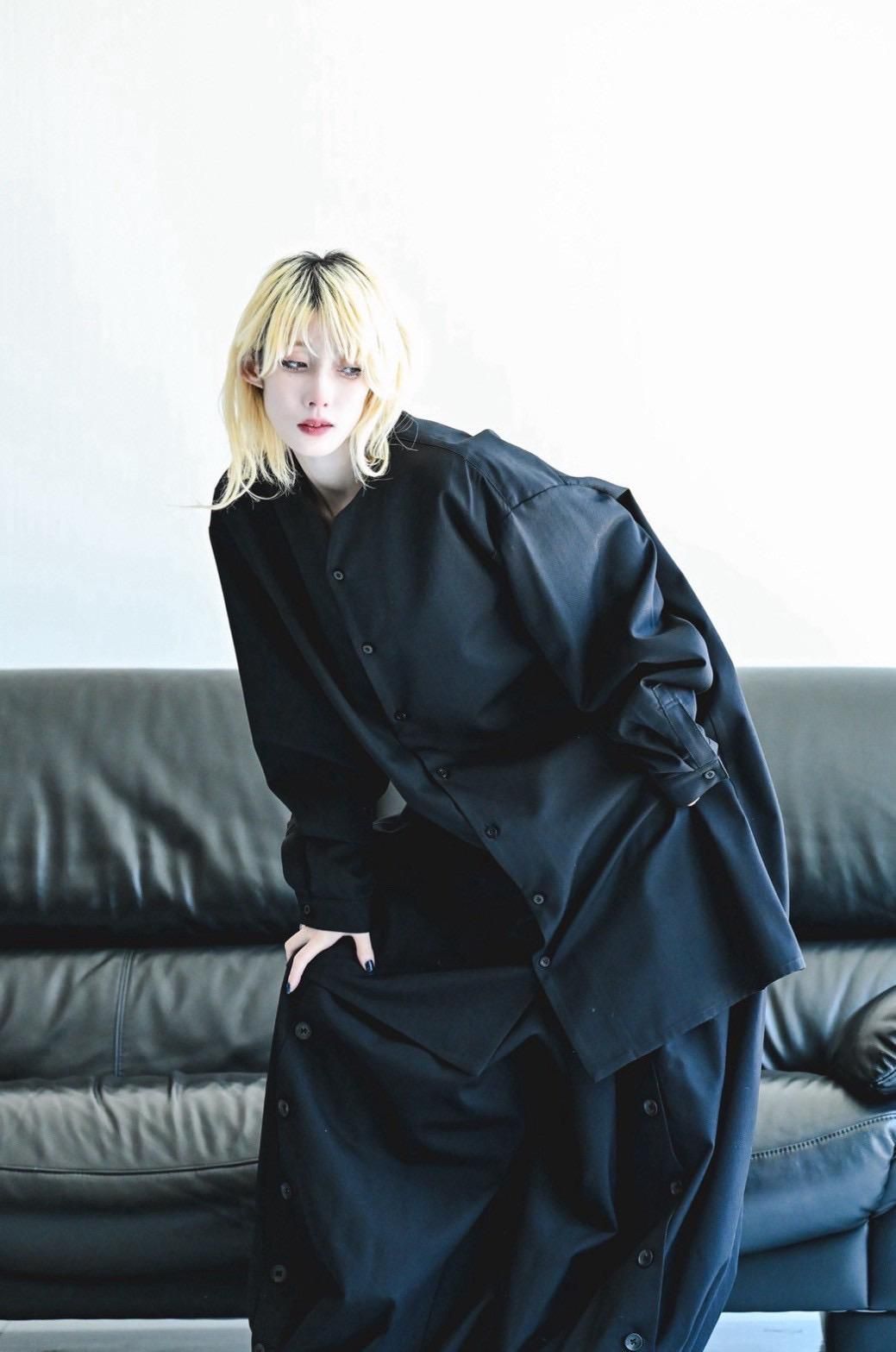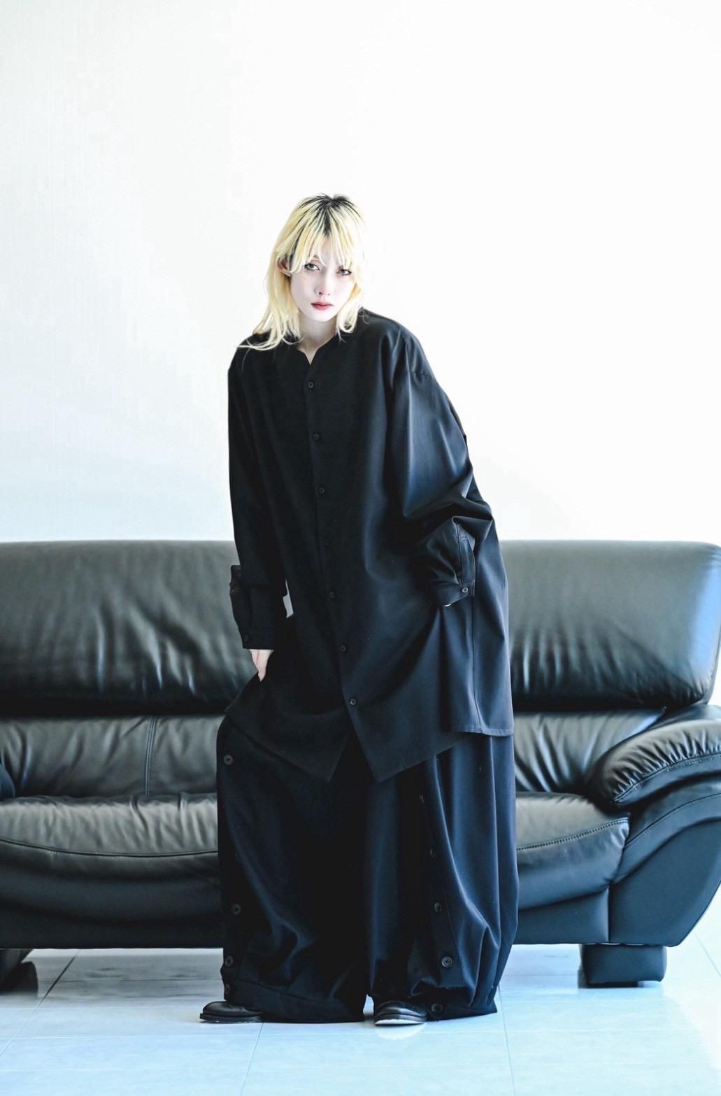 BISHOOLがオリジナルで生産した拘りのウールギャバジンを使用したオーバーサイズのラペルシャツ。