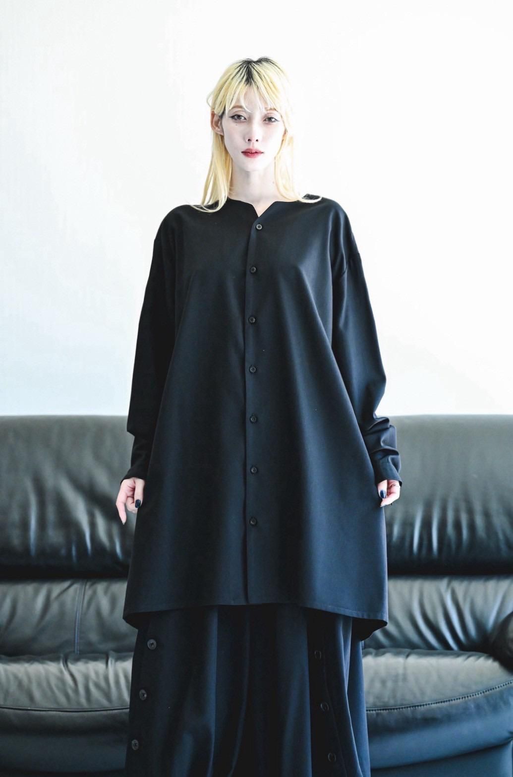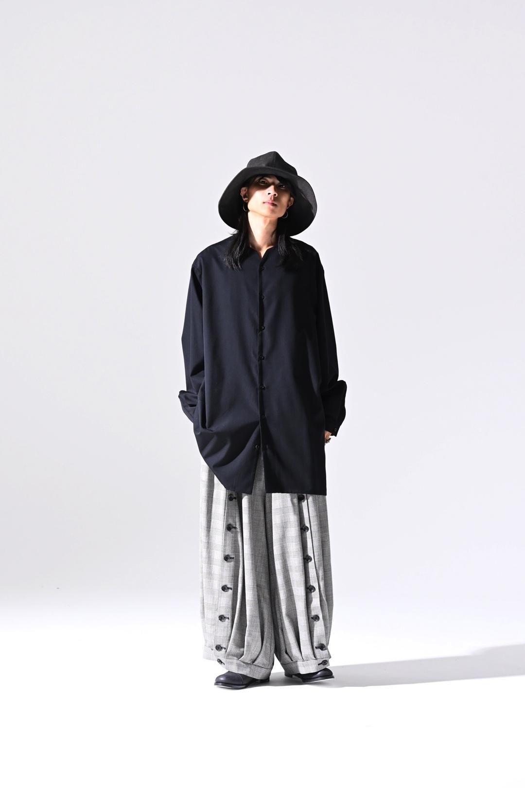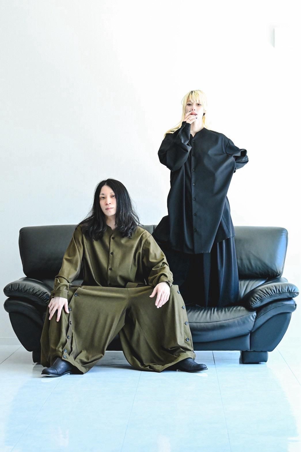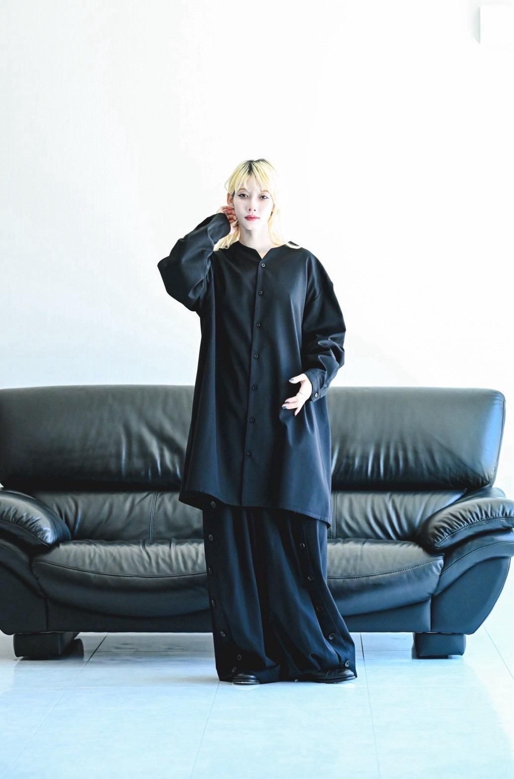 BISHOOLがオリジナルで生産した拘りのウールギャバジンを使用したオーバーサイズのラペルシャツ。