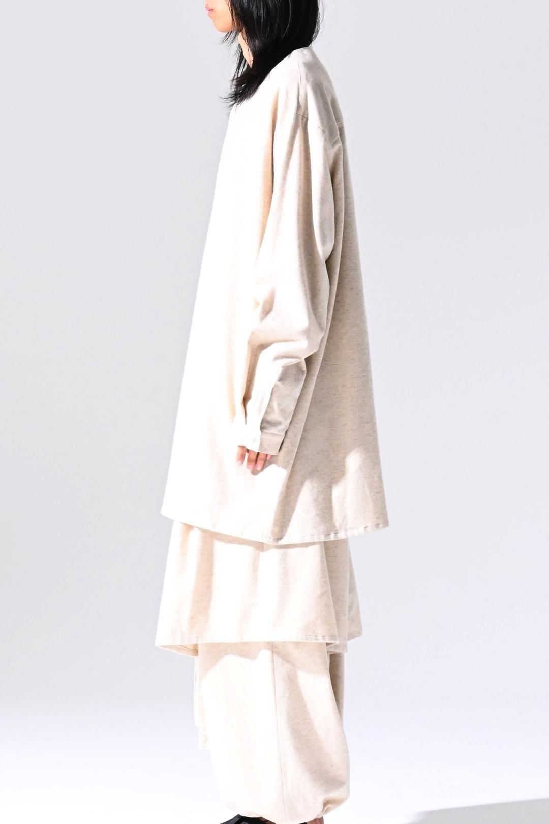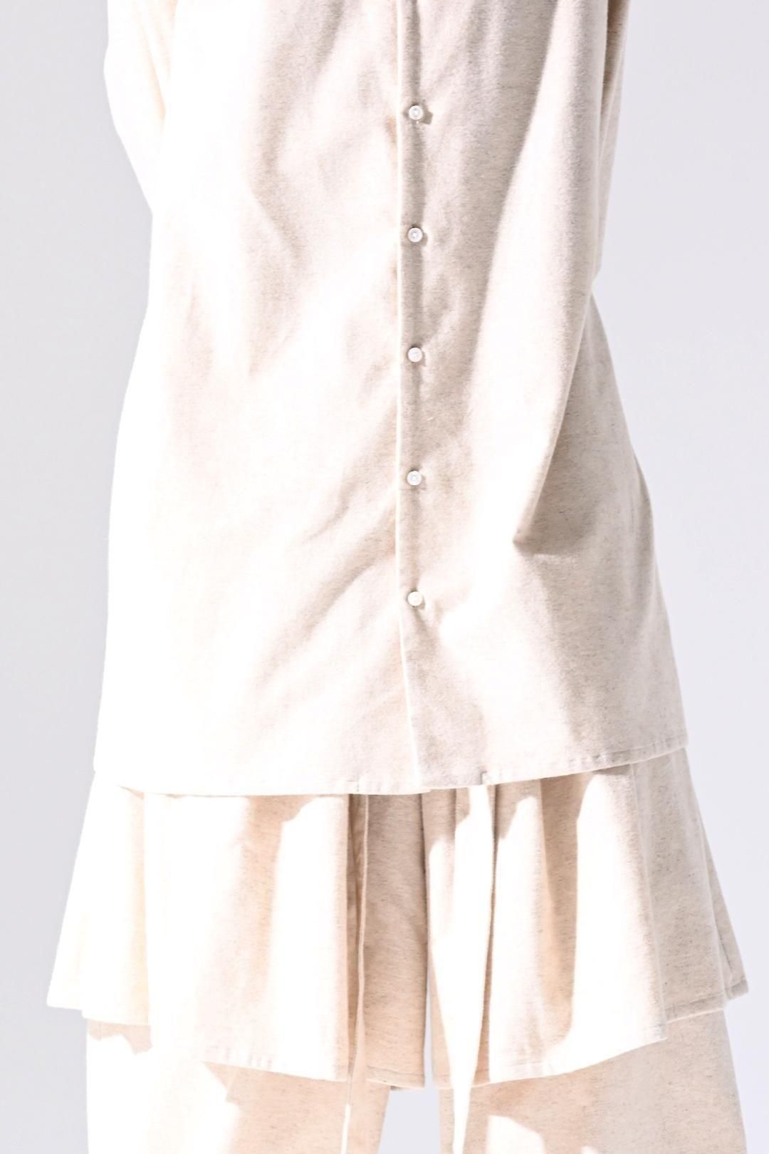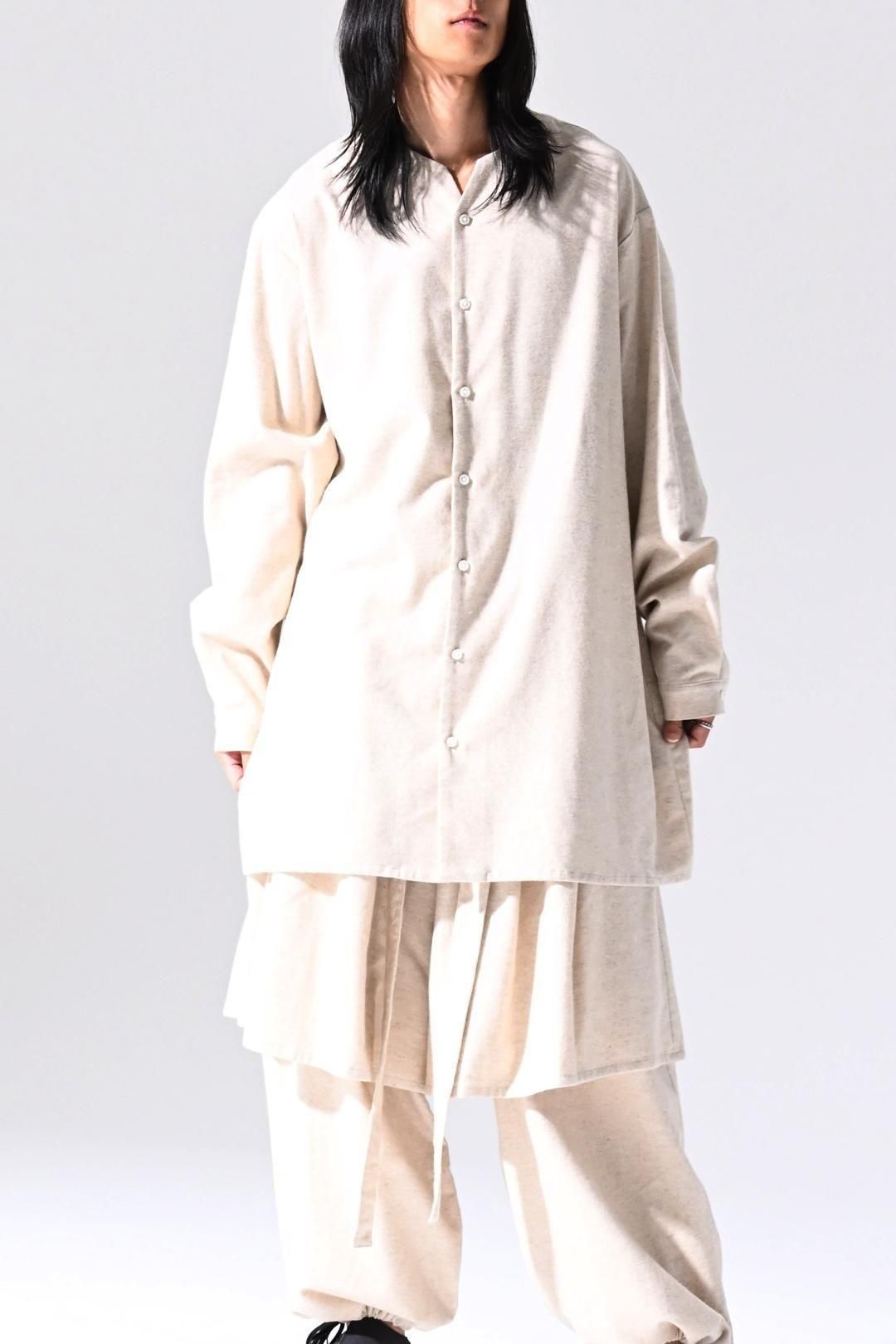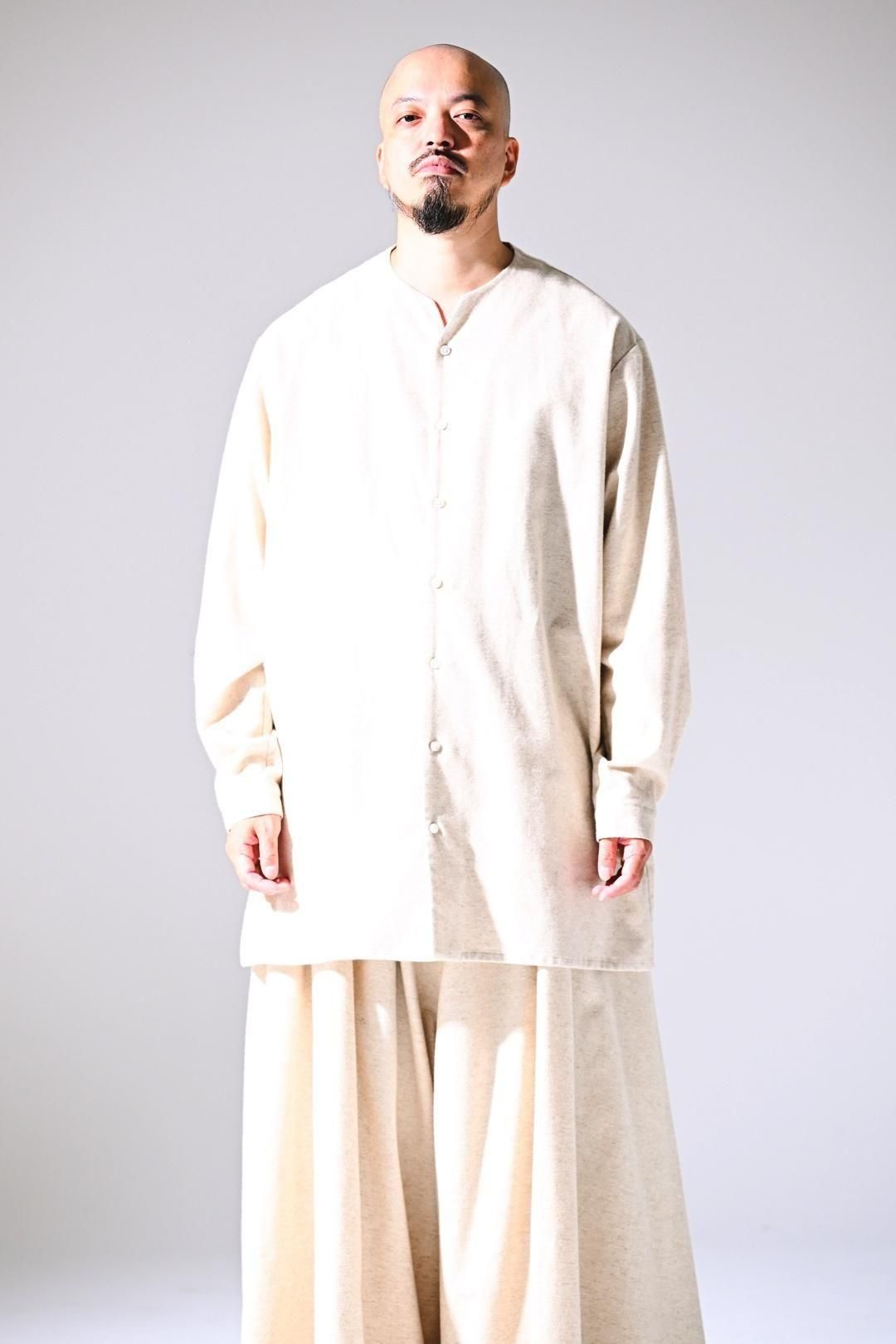 高品質なオーガニックコットンリネンフランネル生地を使用したオーバーサイズのラペルシャツ。