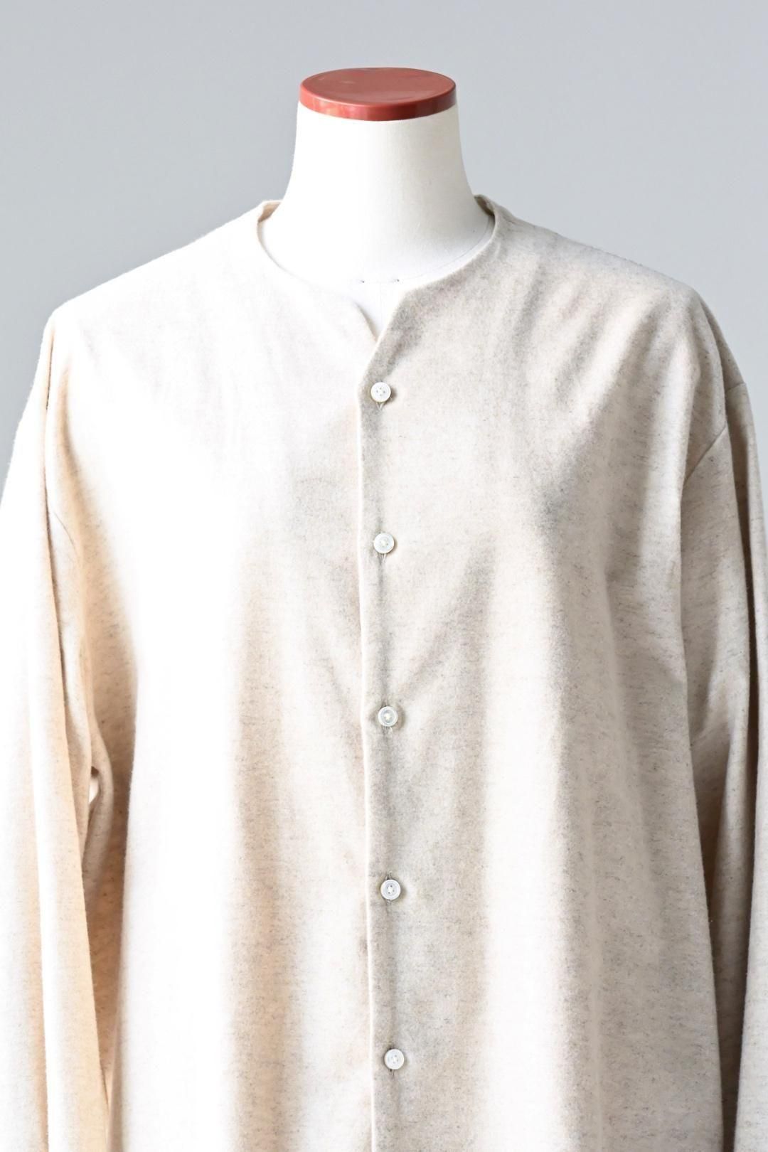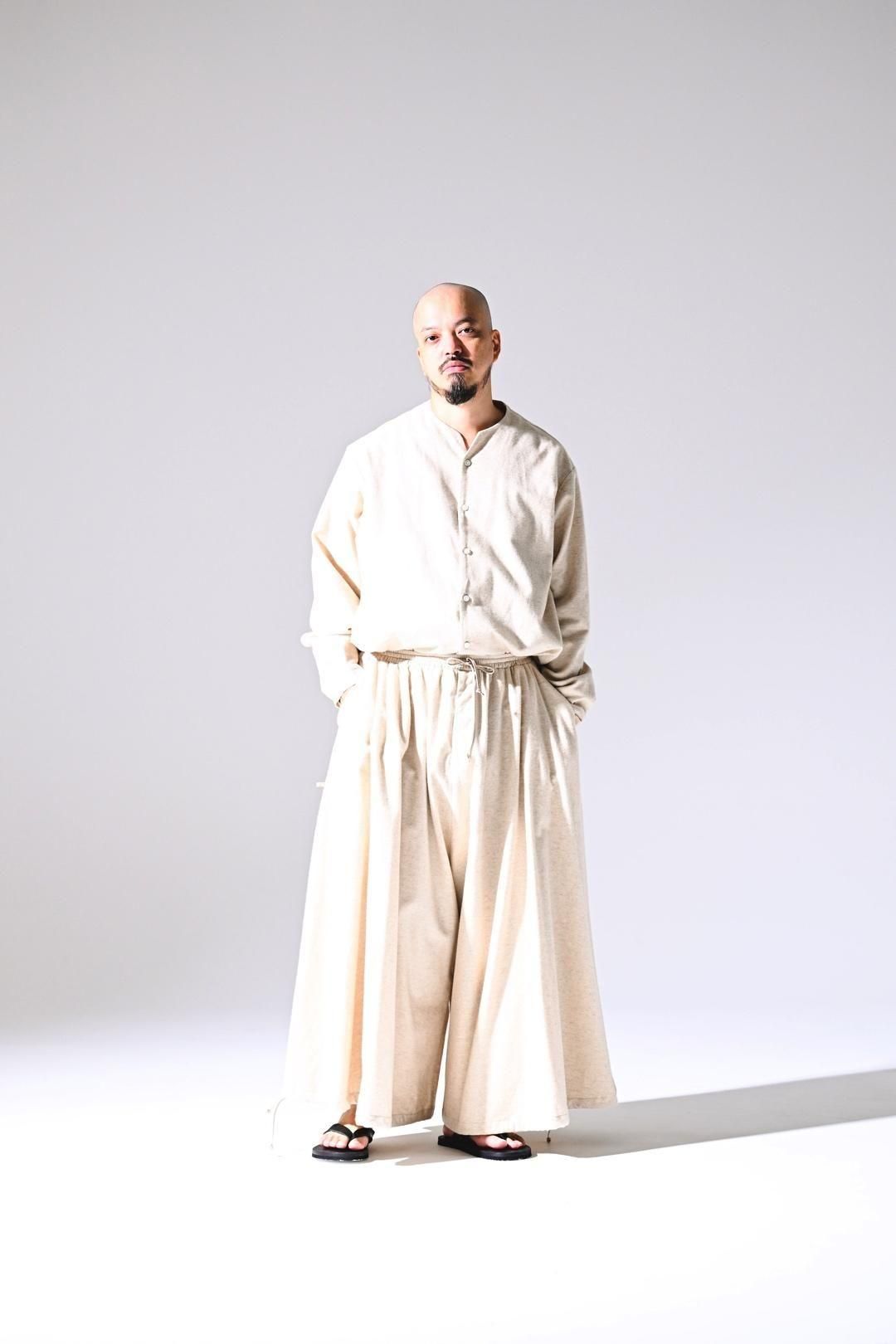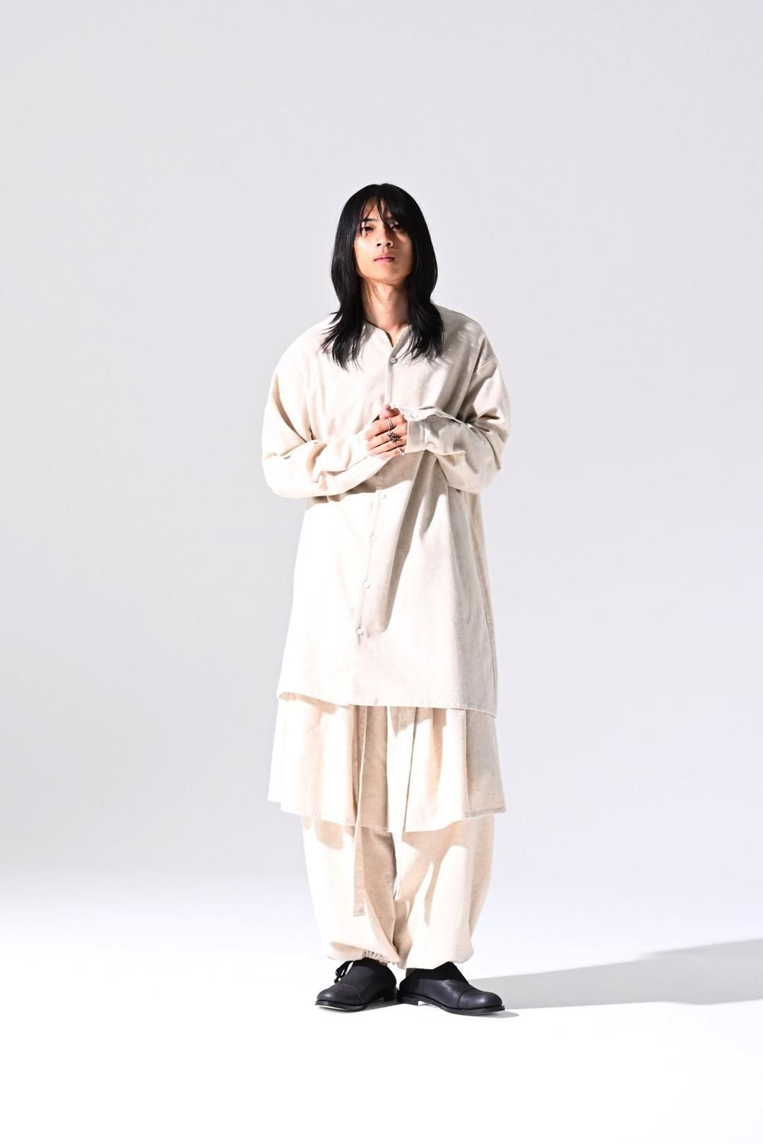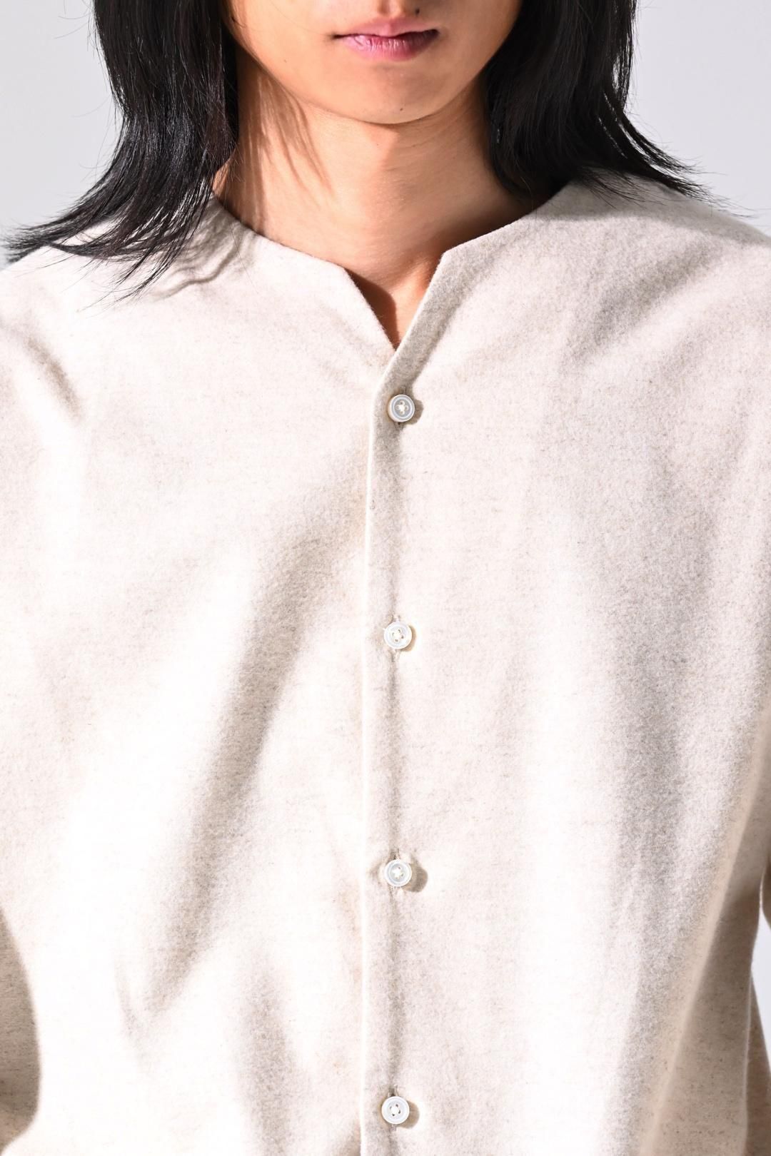 高品質なオーガニックコットンリネンフランネル生地を使用したオーバーサイズのラペルシャツ。