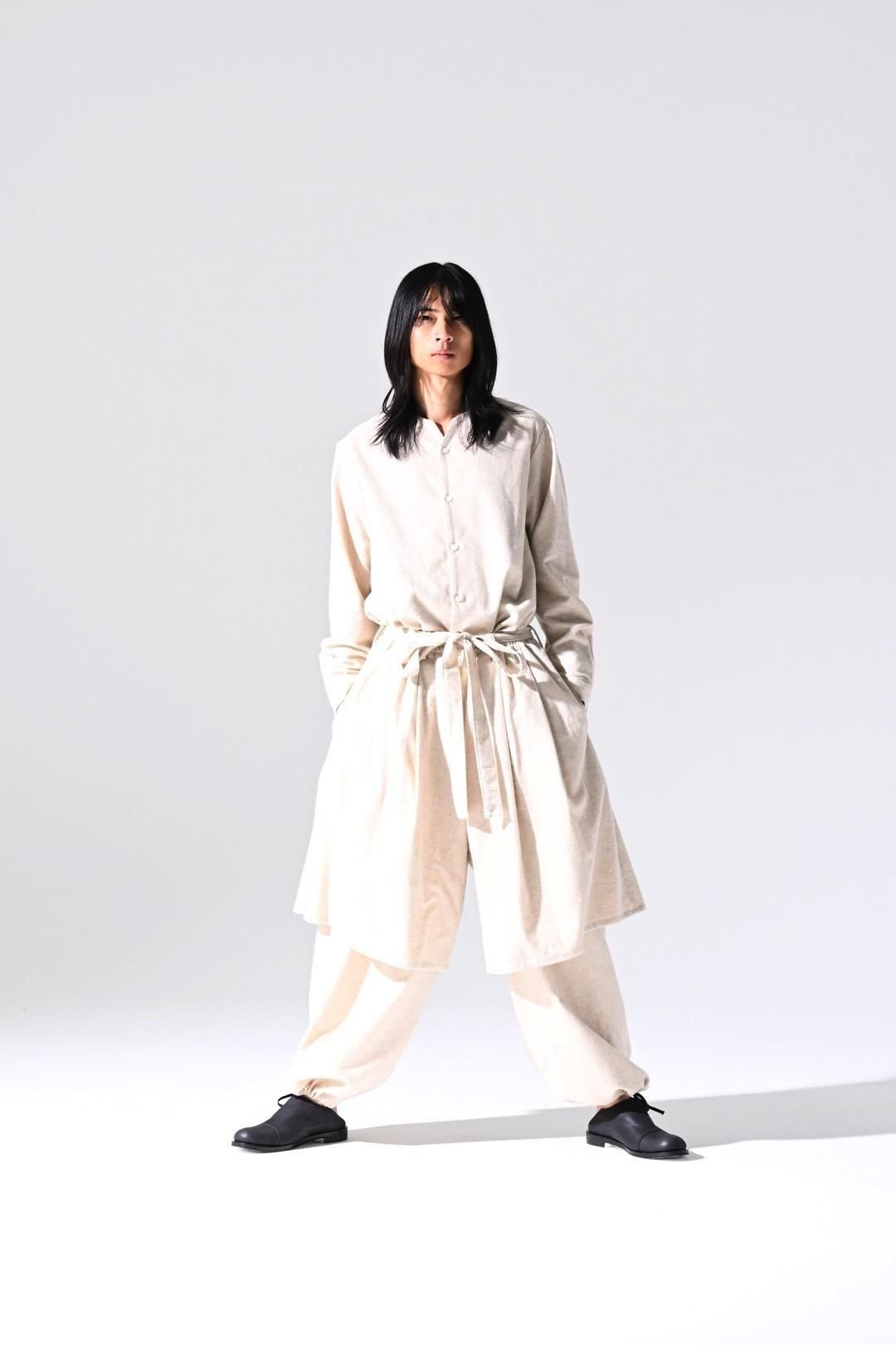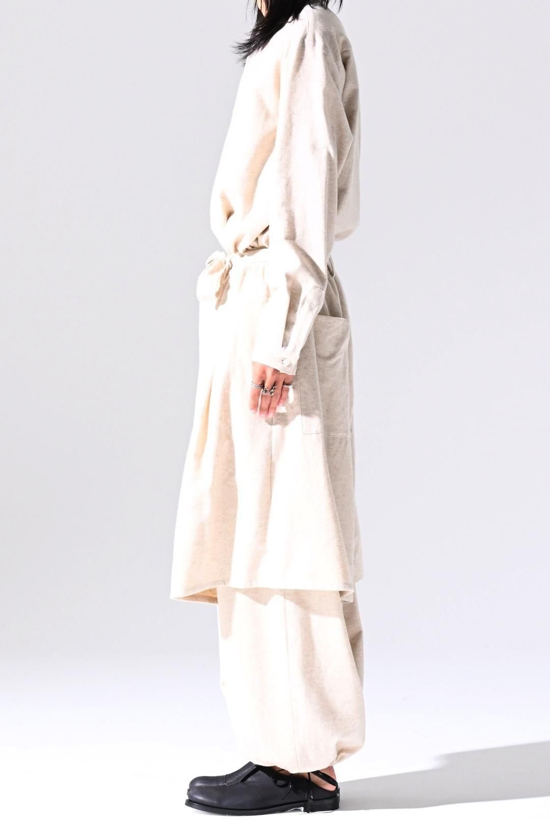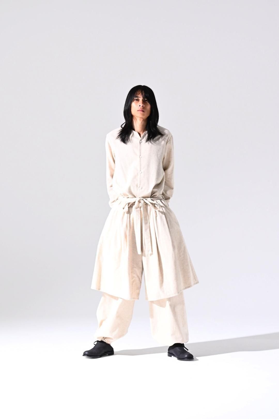 裾には紐を通しており、バルーンパンツとしてのスタイルもお楽しみ頂けます。