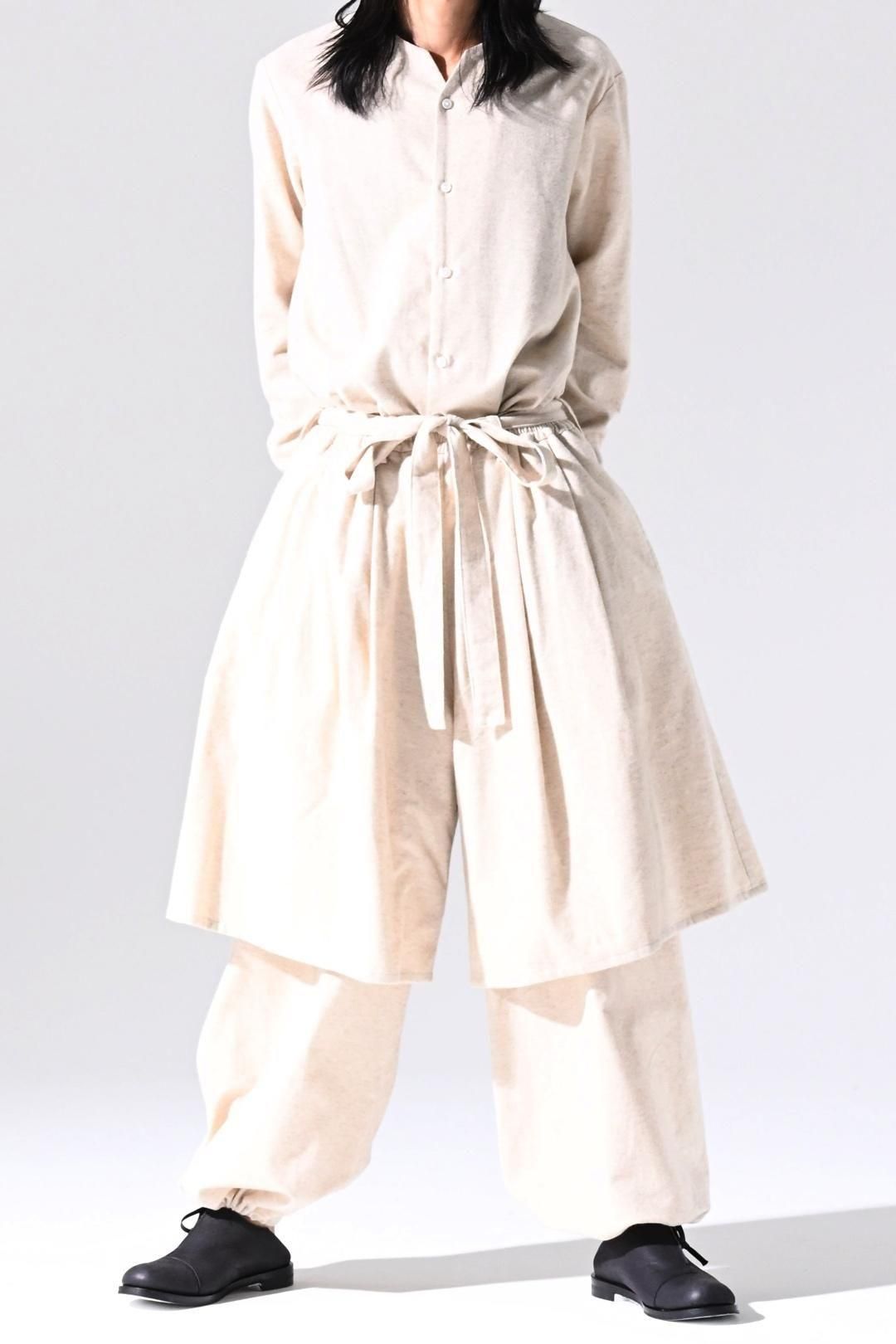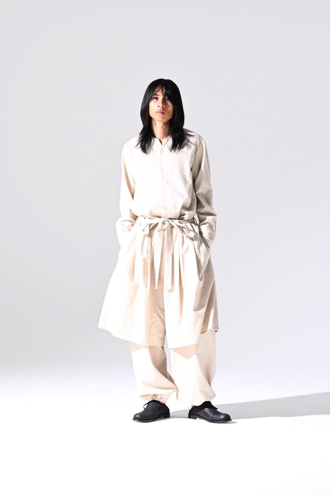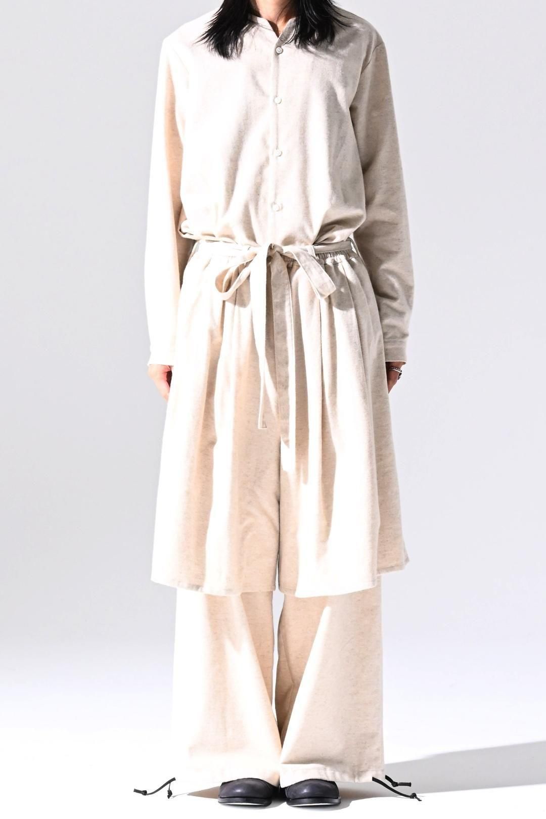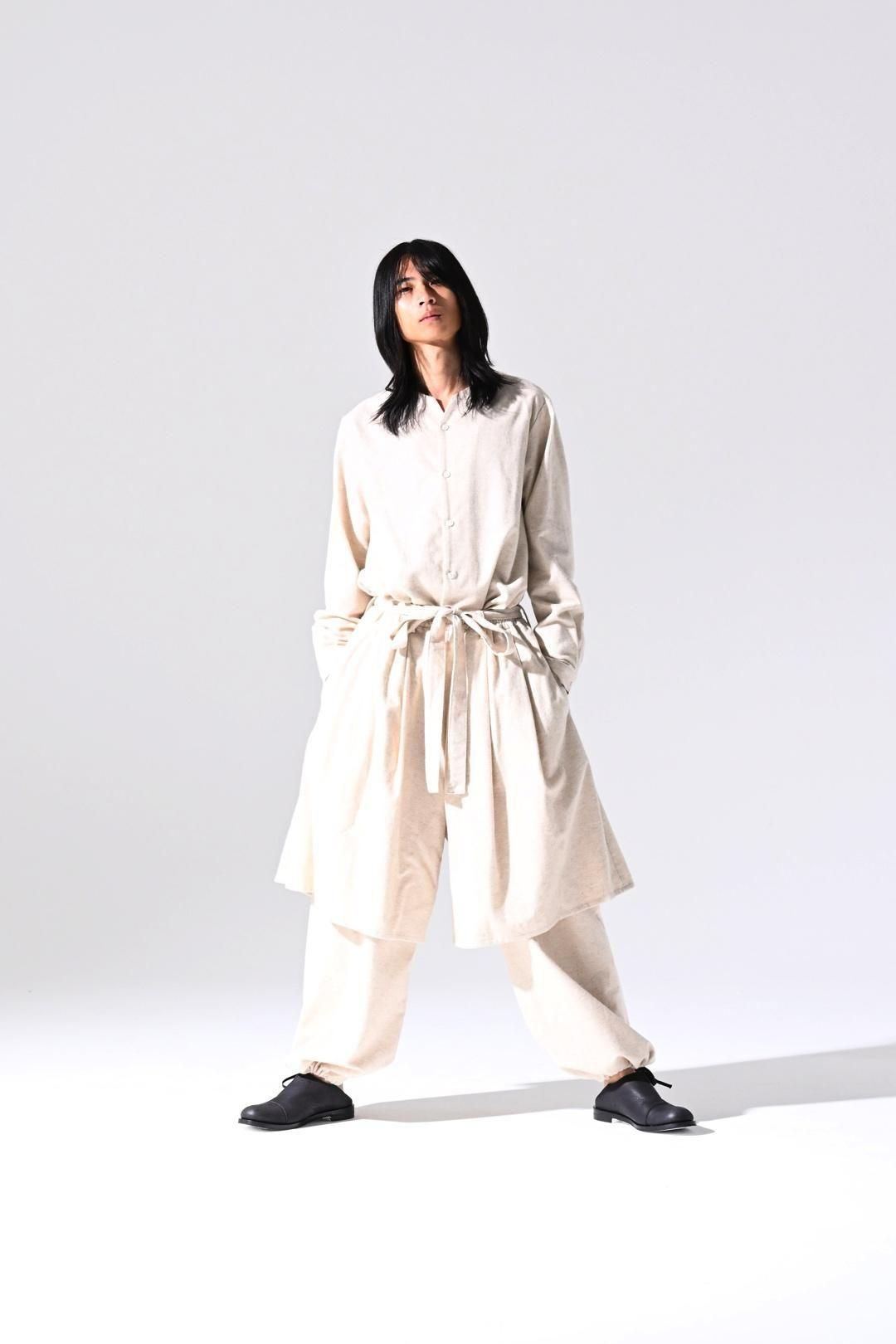 裾には紐を通しており、バルーンパンツとしてのスタイルもお楽しみ頂けます。
