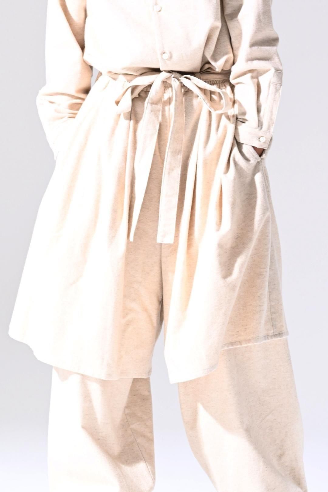 ハーフパンツ×フルレングスパンツのレイヤードスタイルを一本で完結させたダブルレイヤードパンツです。