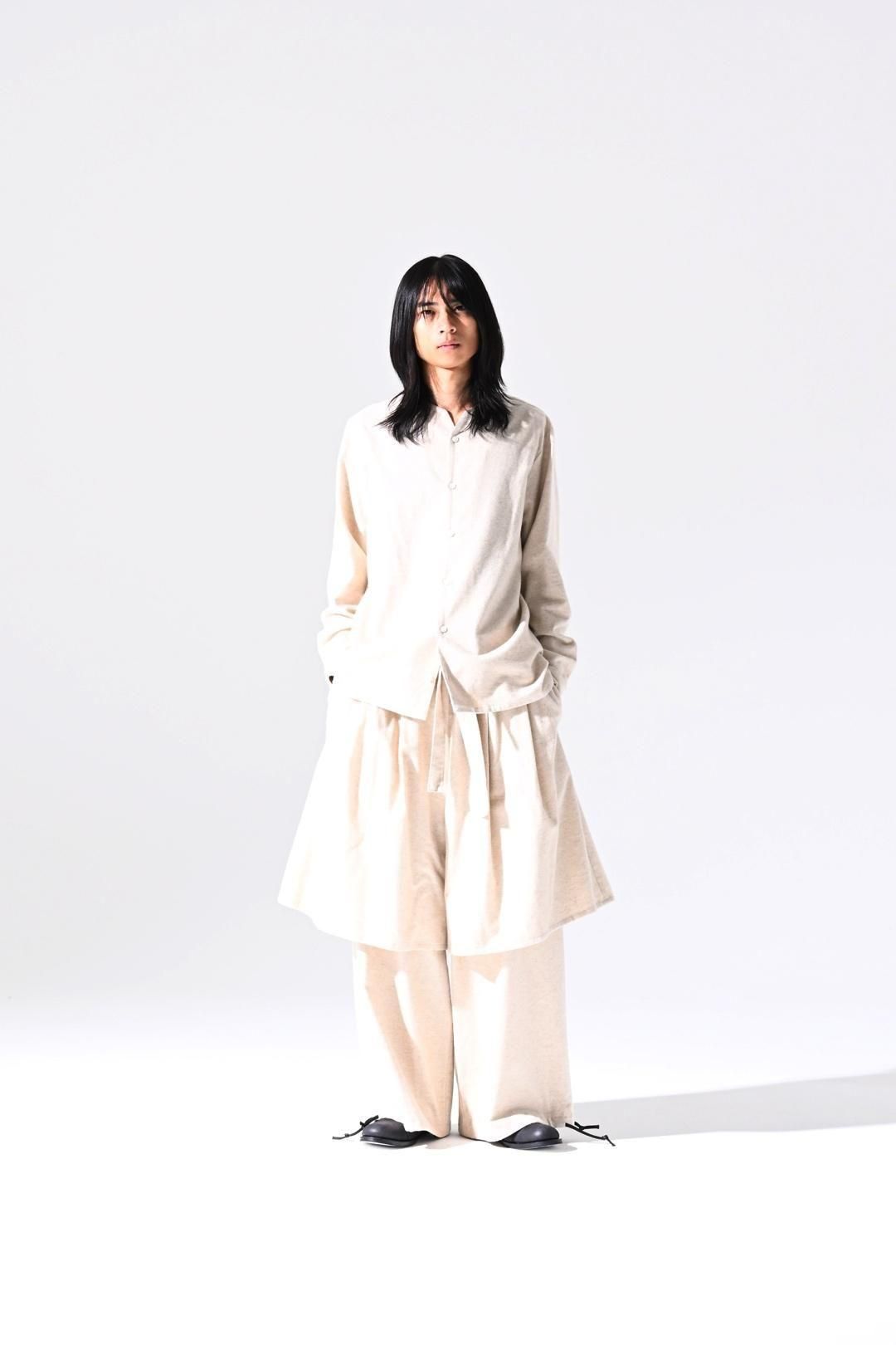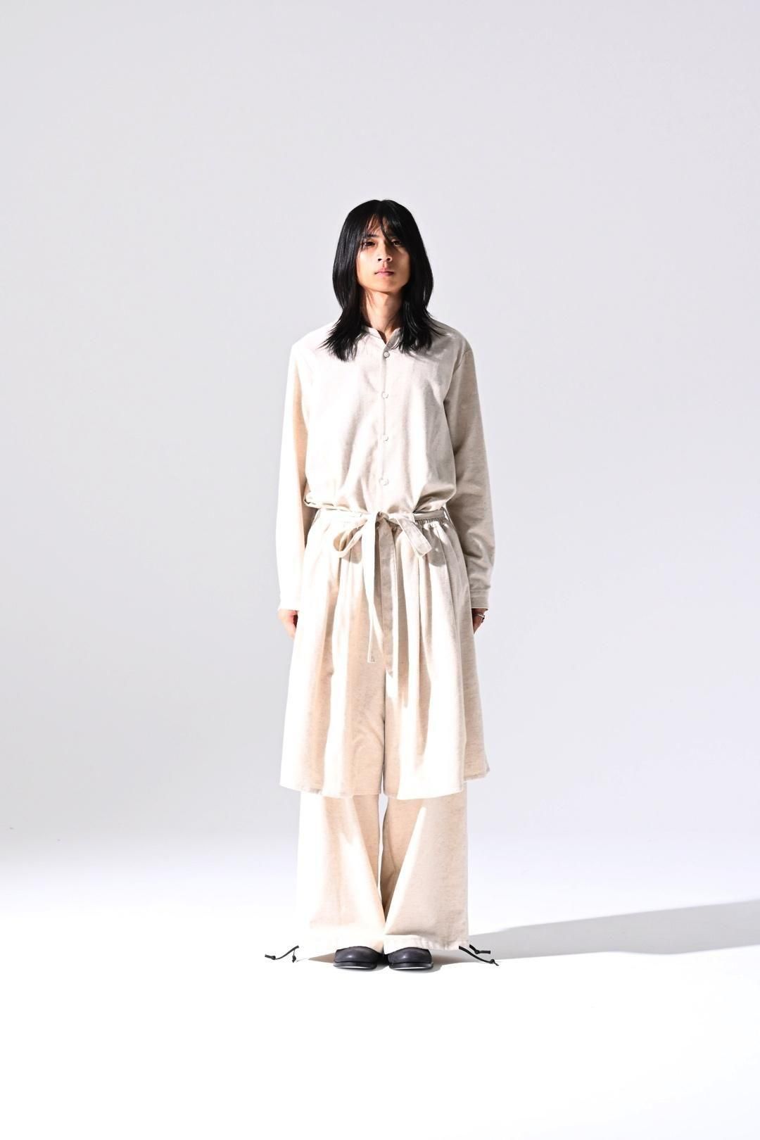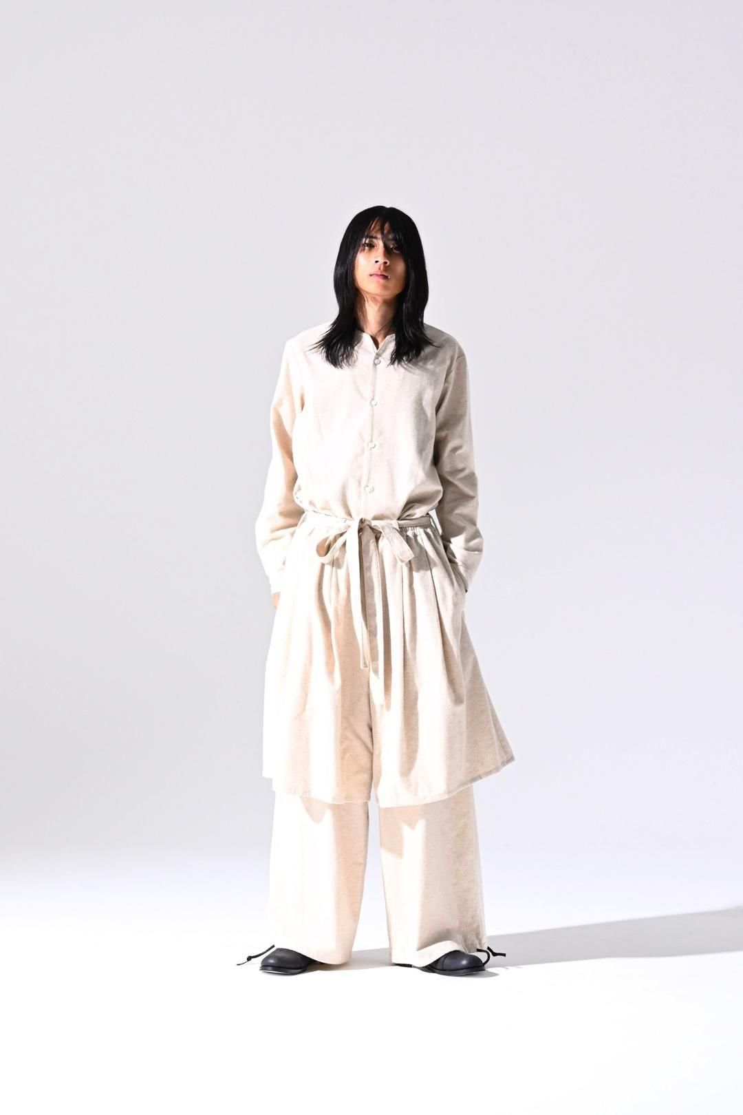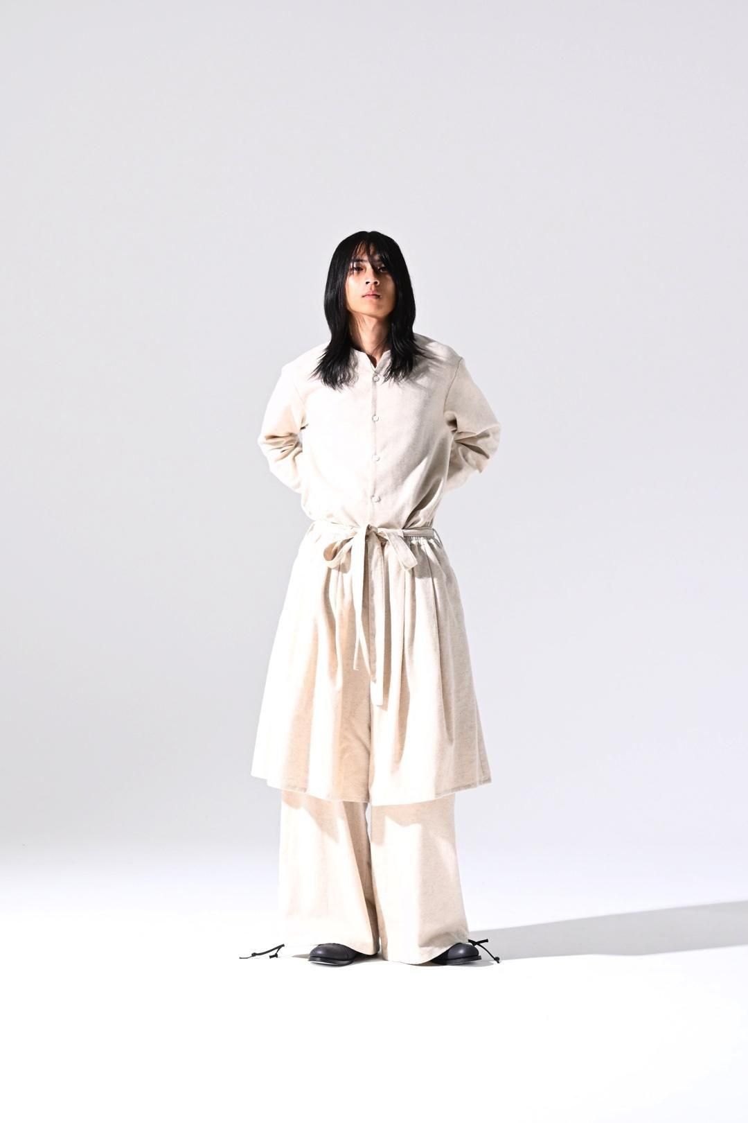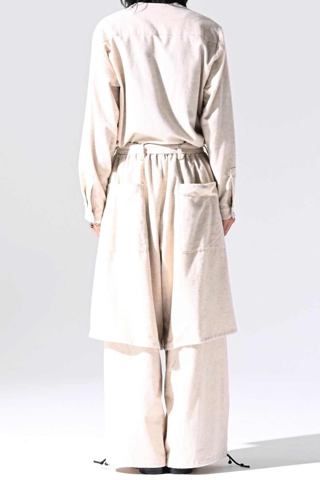更に生地を重ねることでよりワイドなシルエットを表現しています。