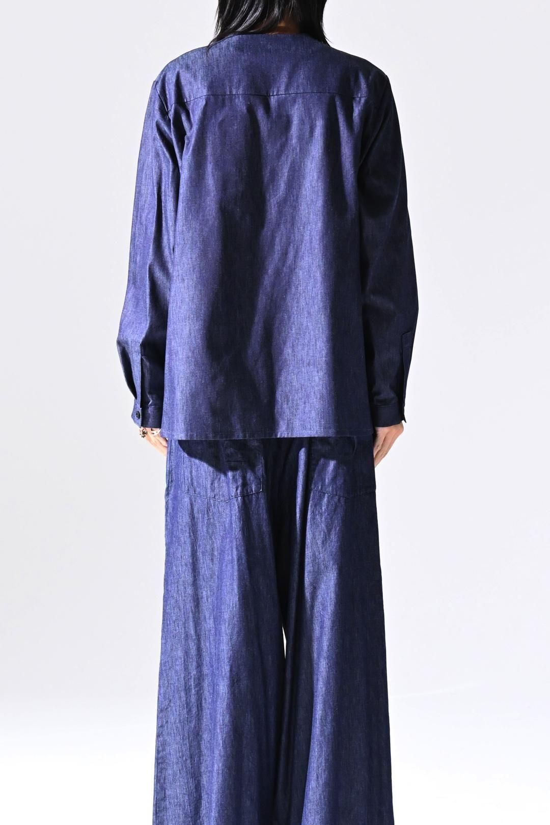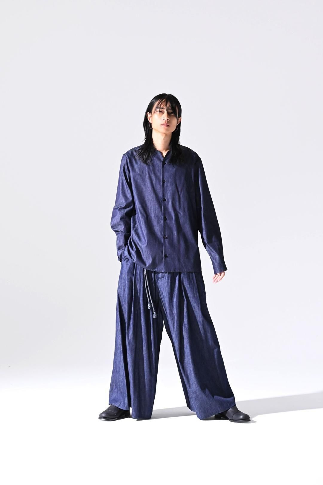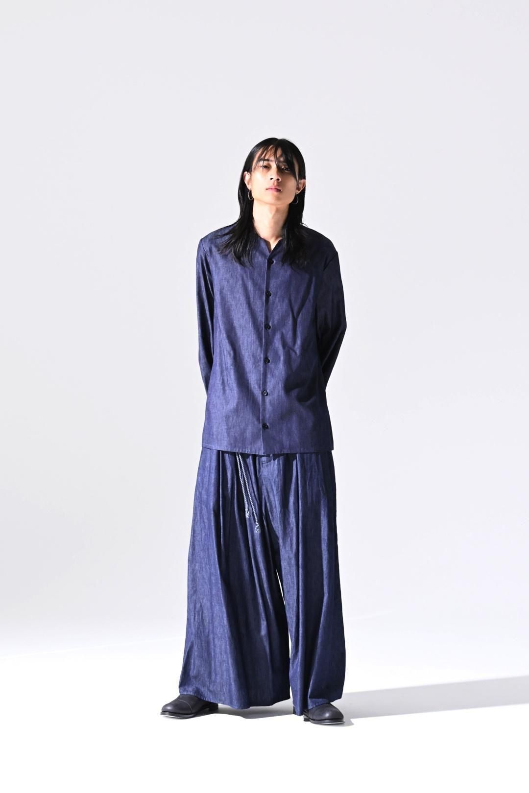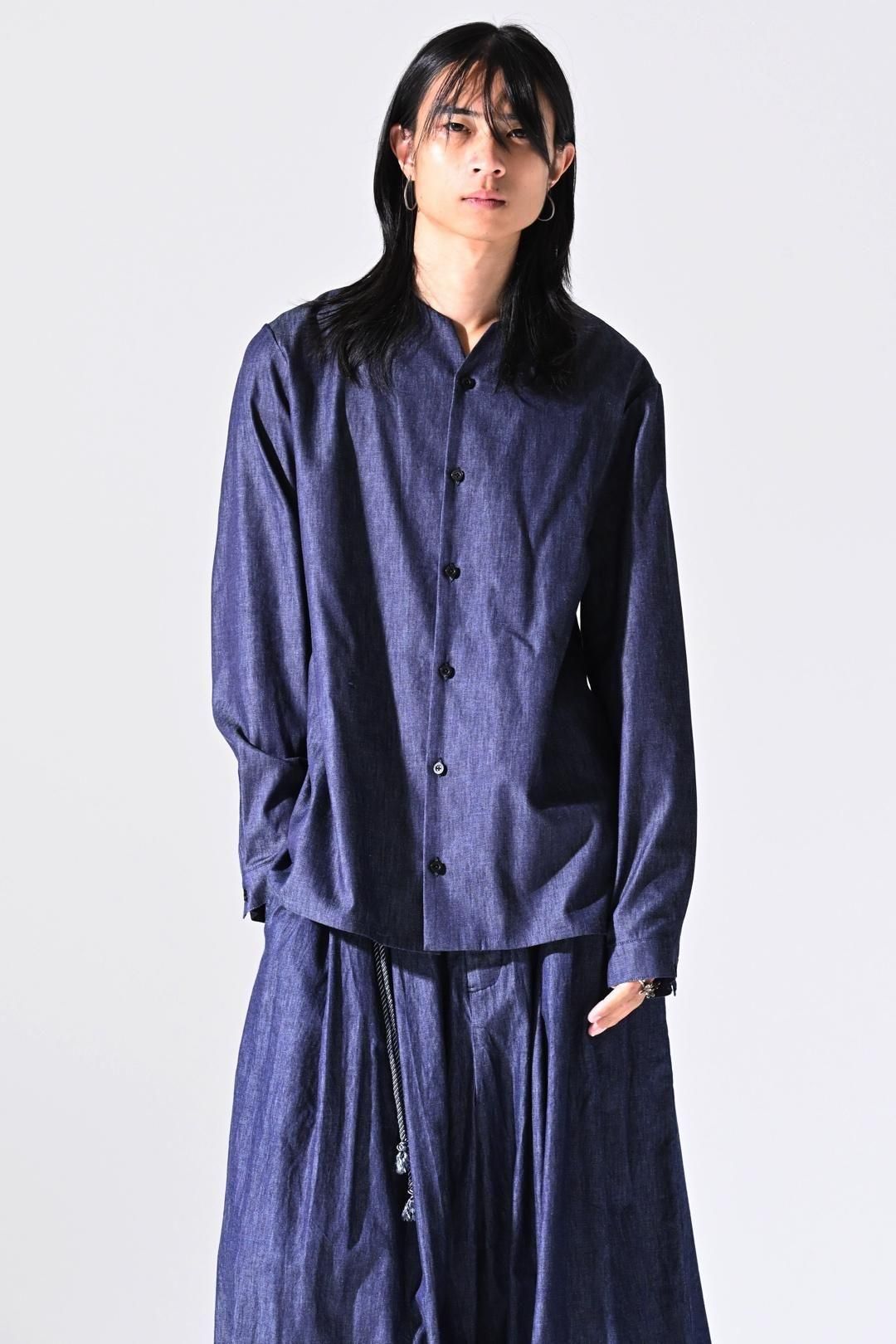 デニムの産地"福山"で織られたライトオンスデニム生地を使用したラペルシャツ。