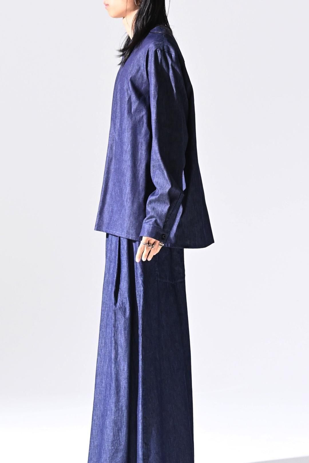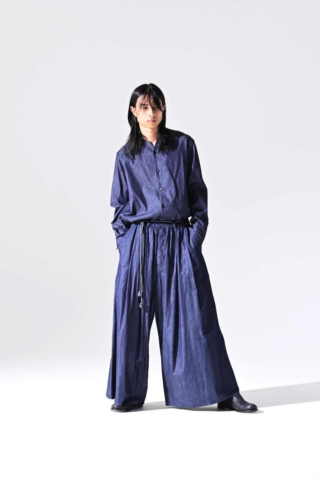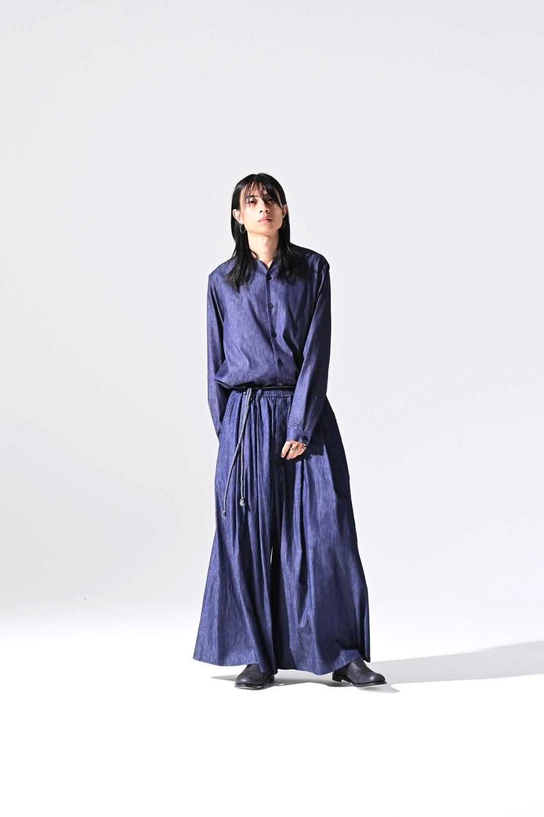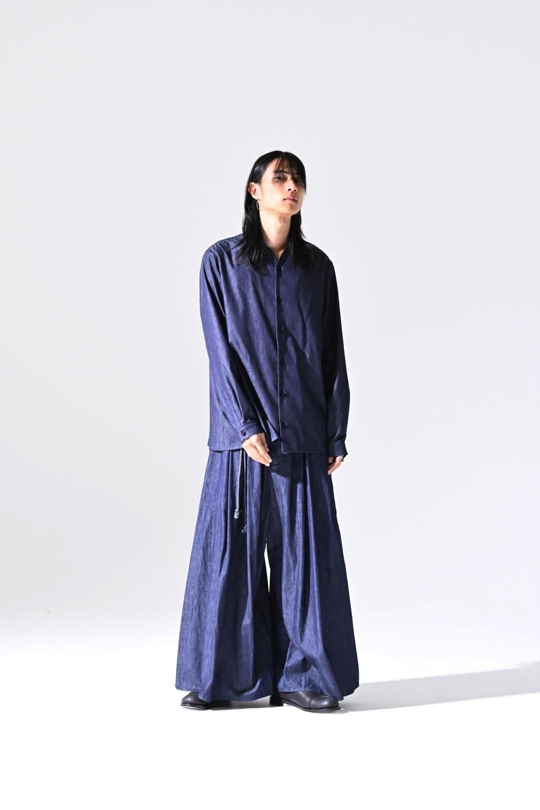 デニムの産地"福山"で織られたライトオンスデニム生地を使用したラペルシャツ。