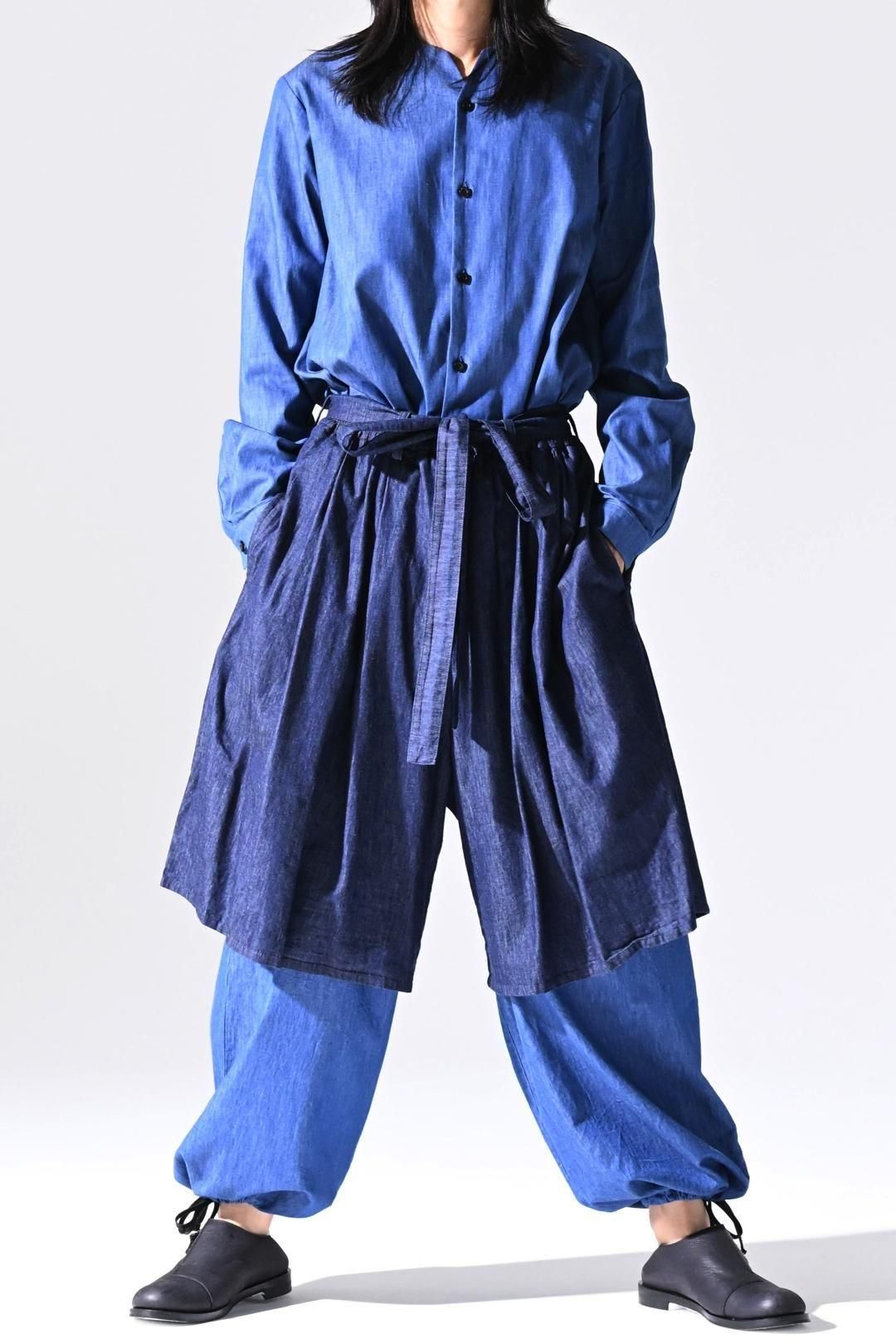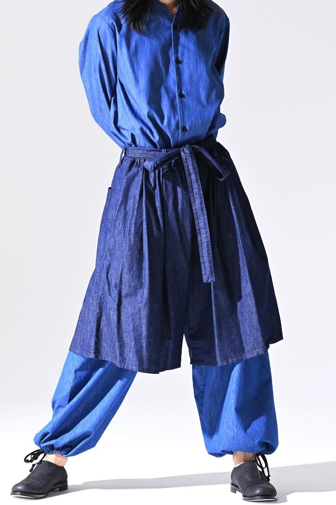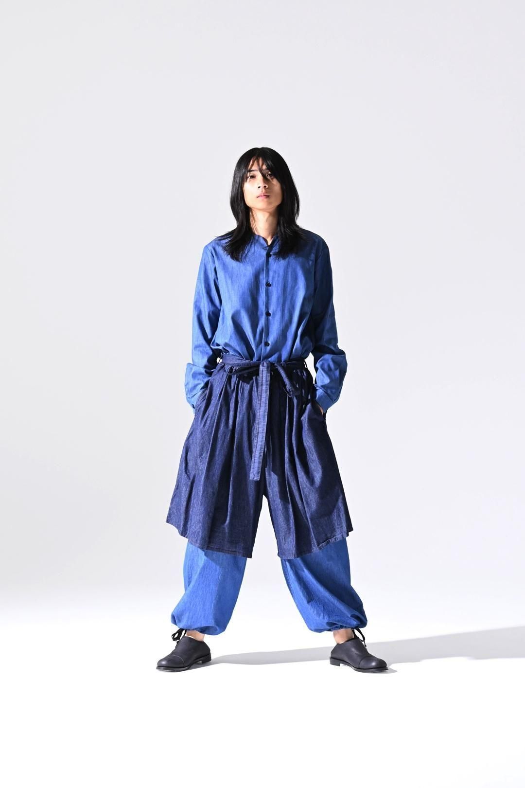 裾には紐を通しており、バルーンパンツとしてのスタイルもお楽しみ頂けます。