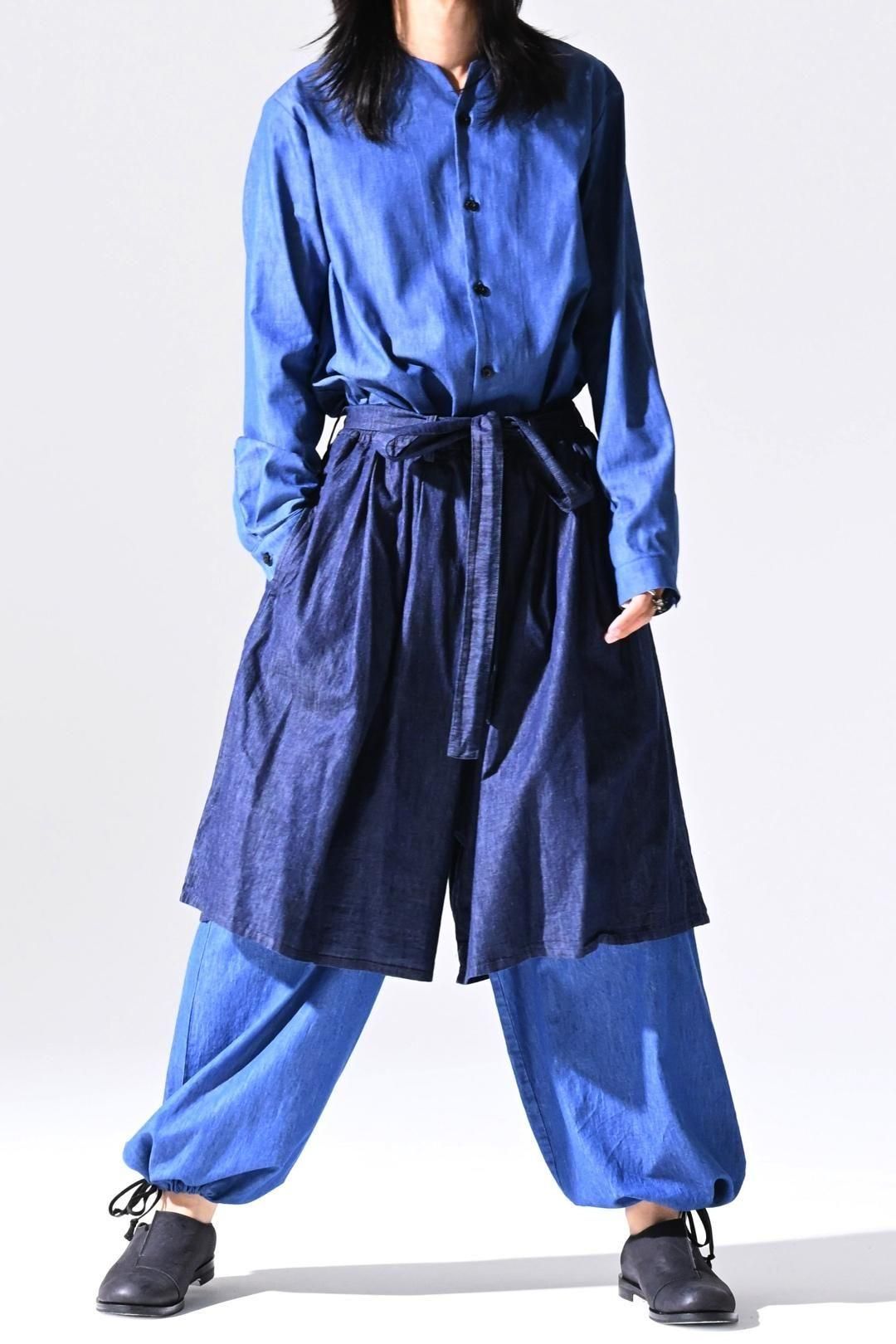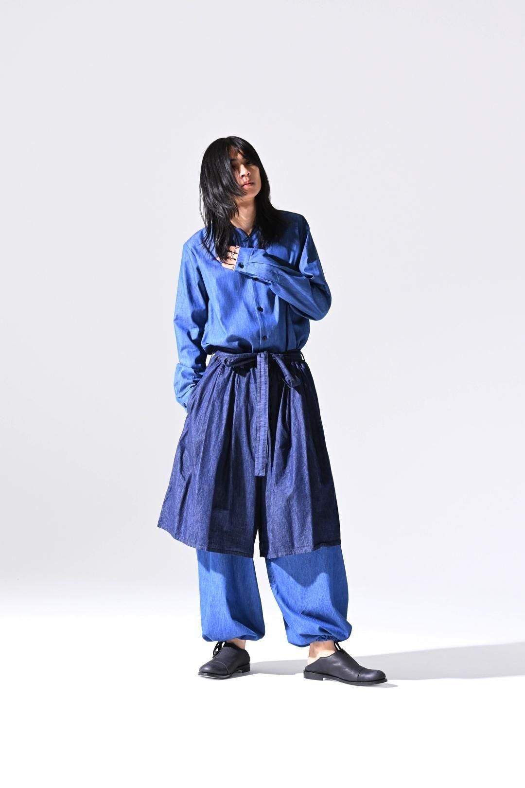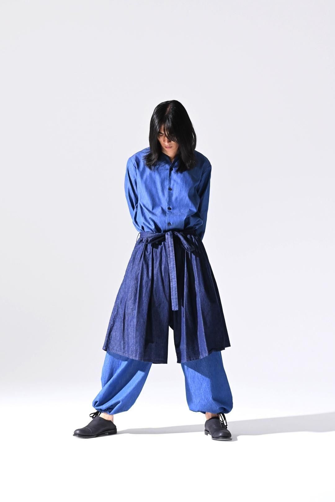 裾には紐を通しており、バルーンパンツとしてのスタイルもお楽しみ頂けます。