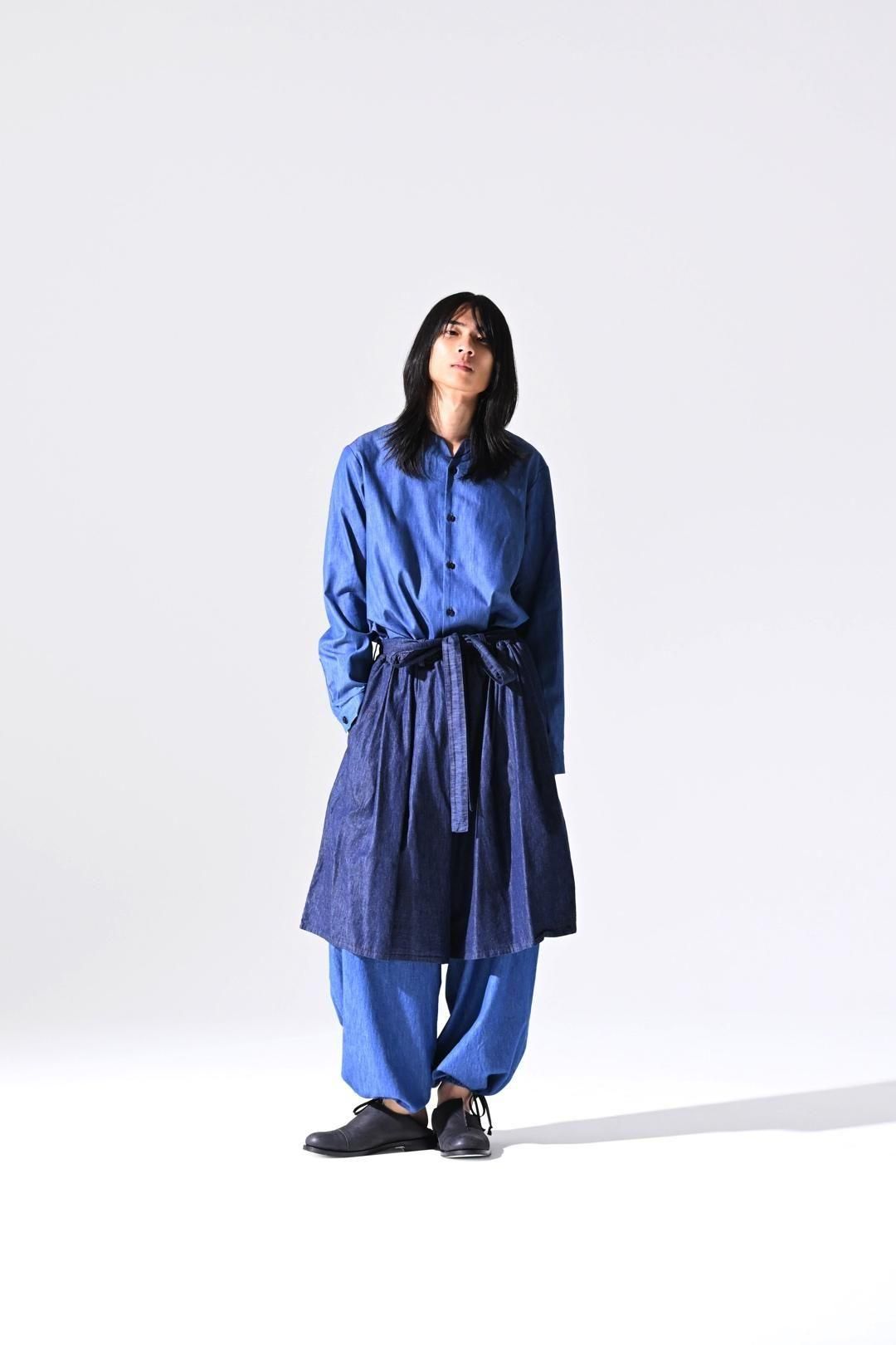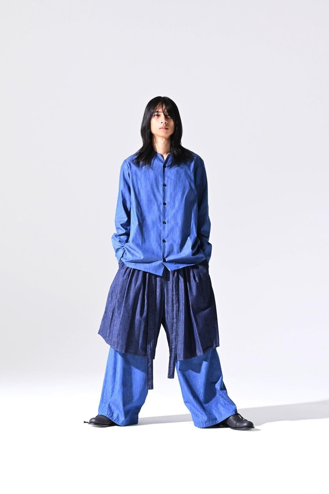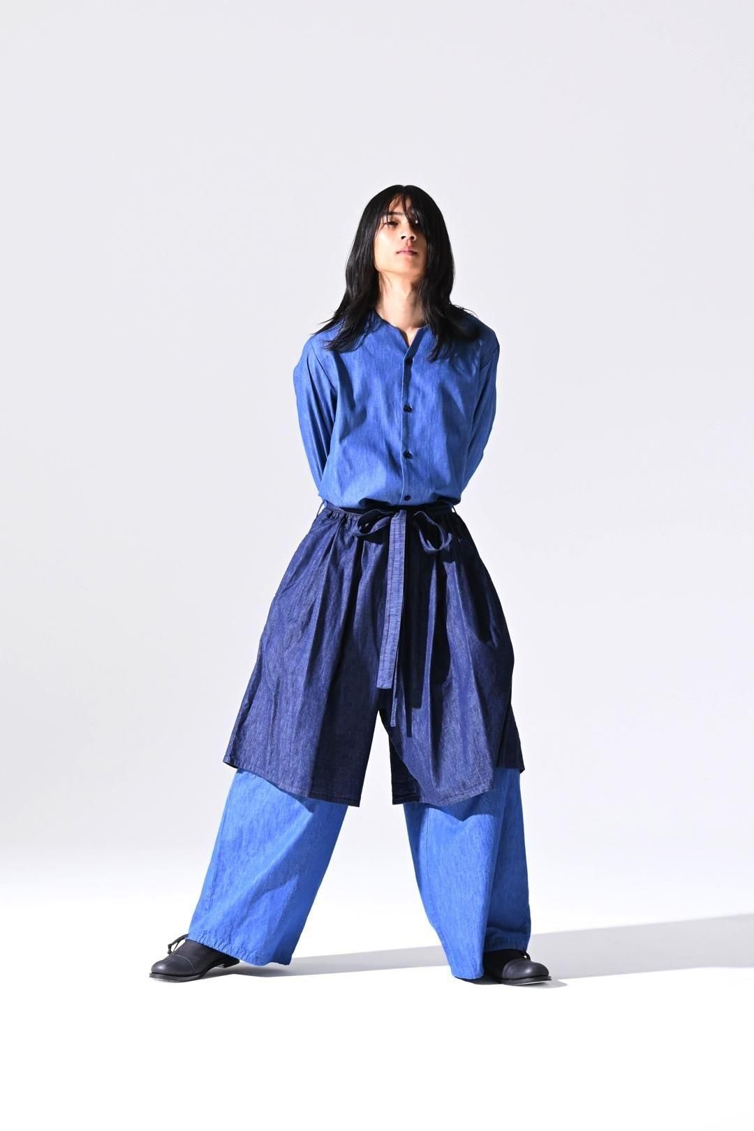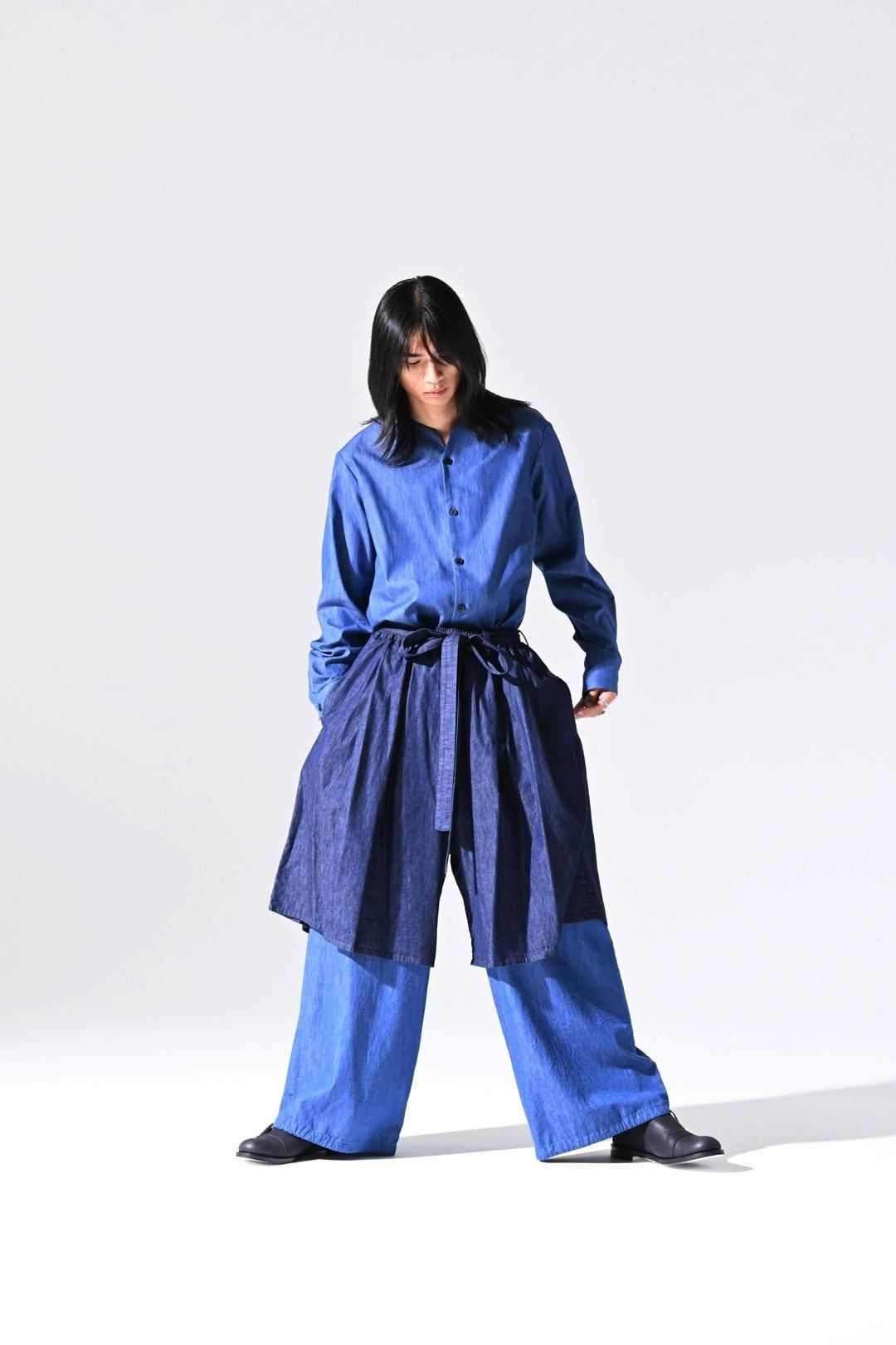 更に生地を重ねることでよりワイドなシルエットを表現しています。