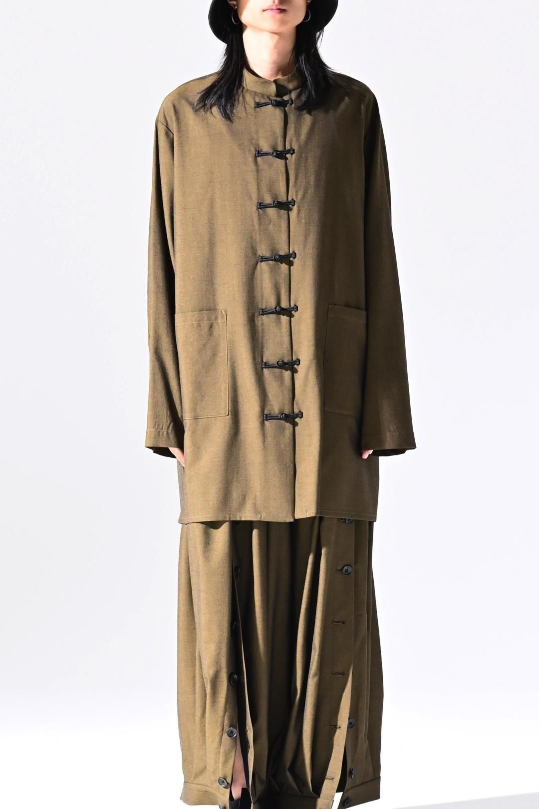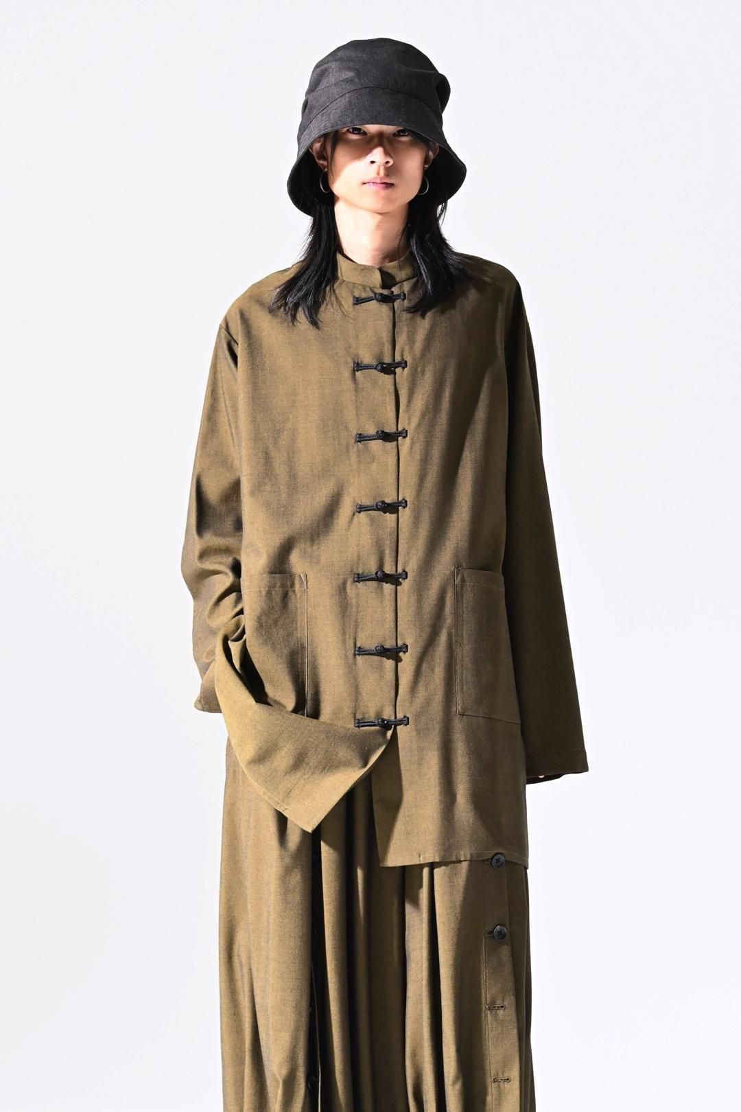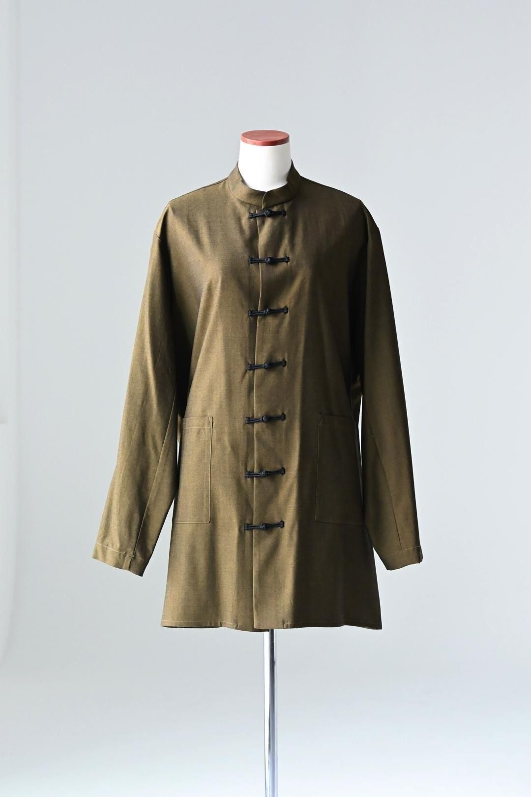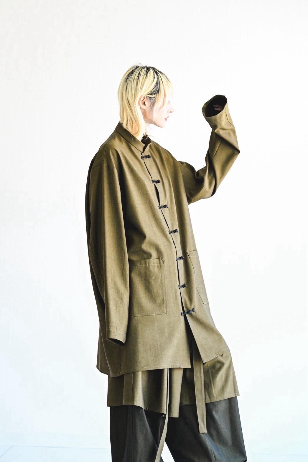 高級毛織物の産地"尾州"で生産された良質なウールギャバジンを使用したチャイナシャツ。