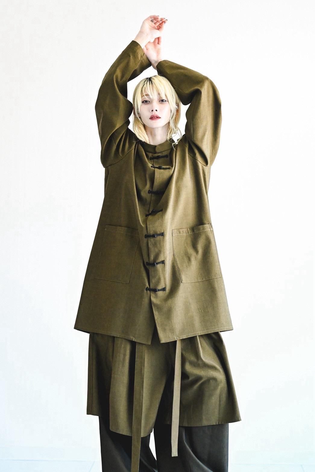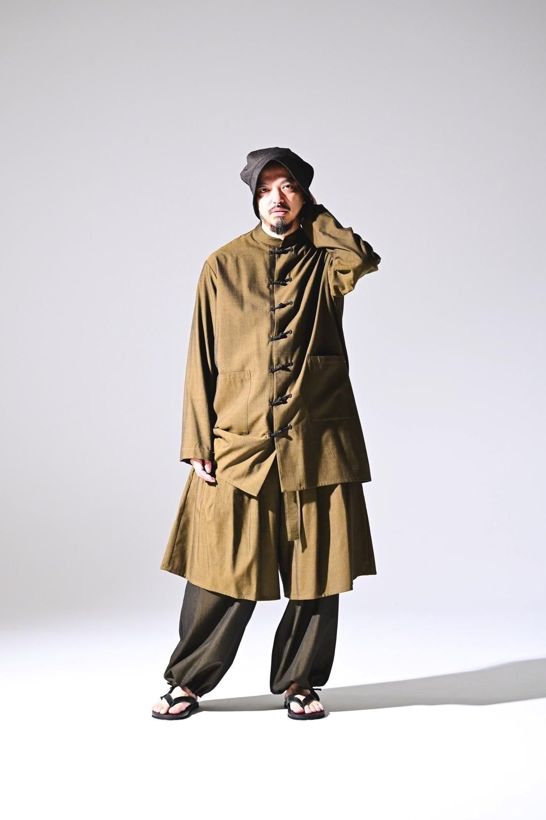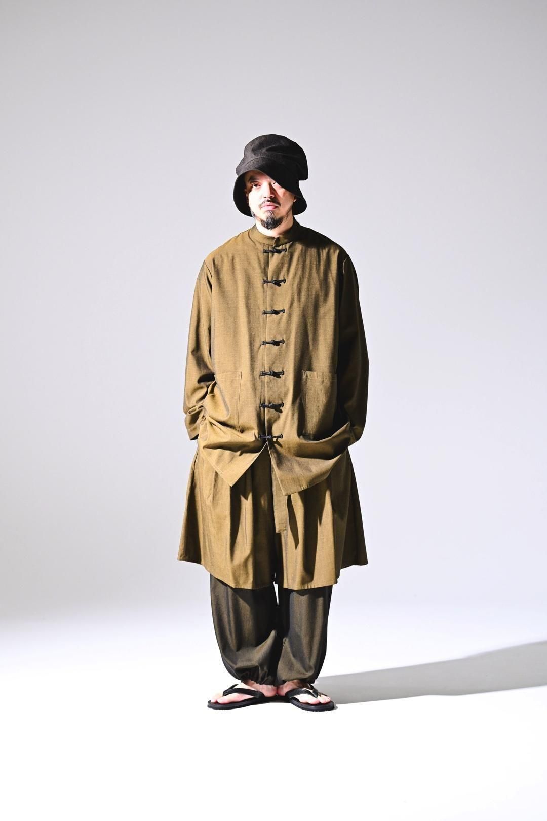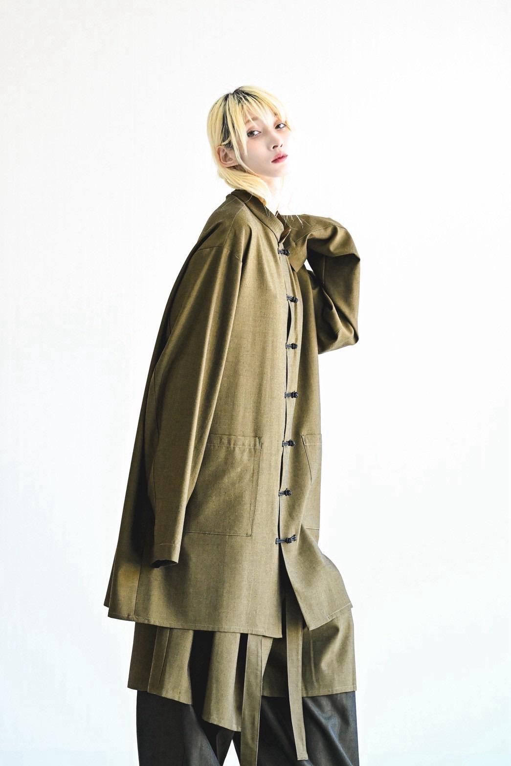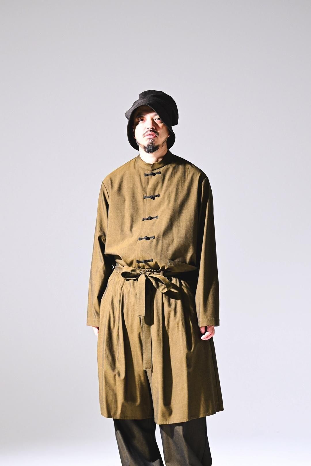 高級毛織物の産地"尾州"で生産された良質なウールギャバジンを使用したチャイナシャツ。