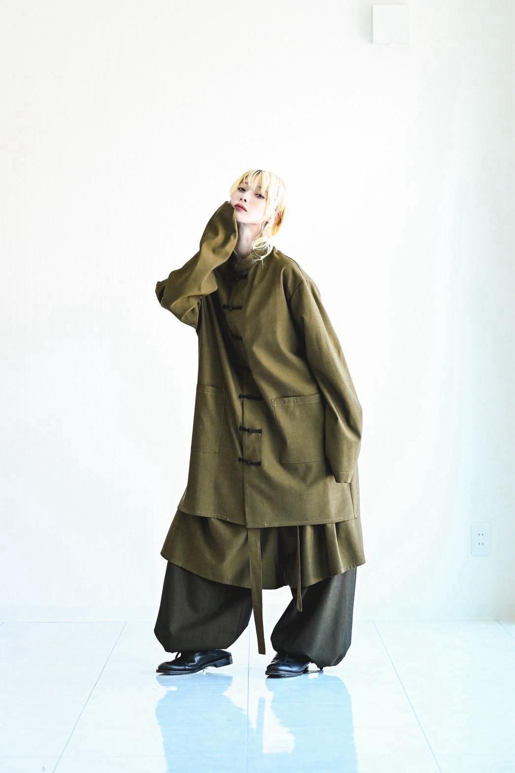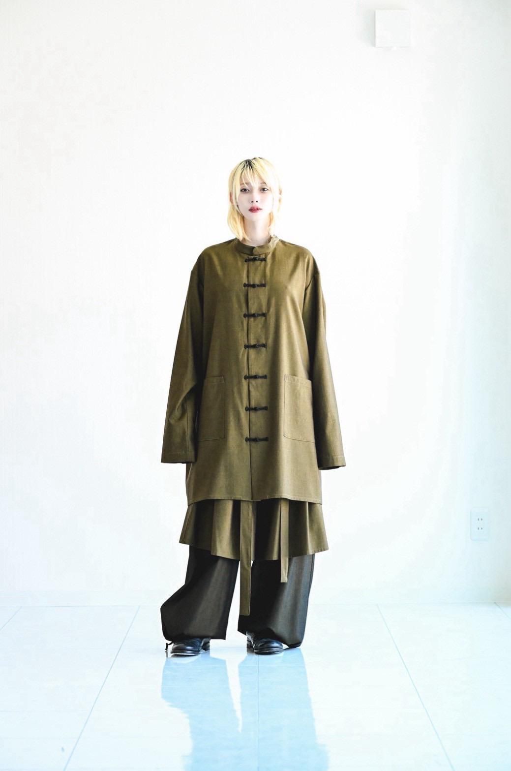 着丈を長く設定し、両サイドにポケットを施すことでアウター感覚で羽織って頂けるようデザインされています。