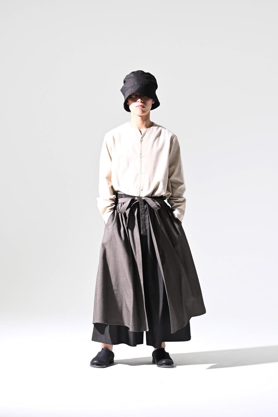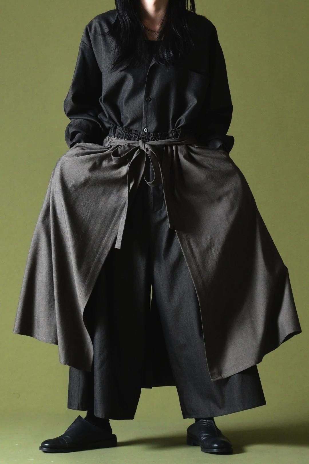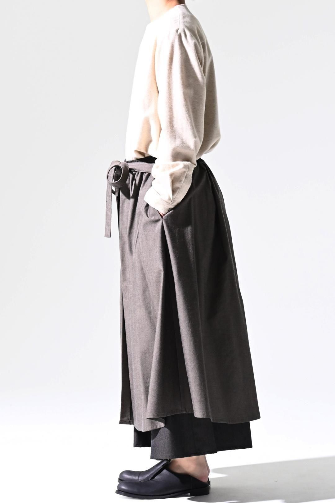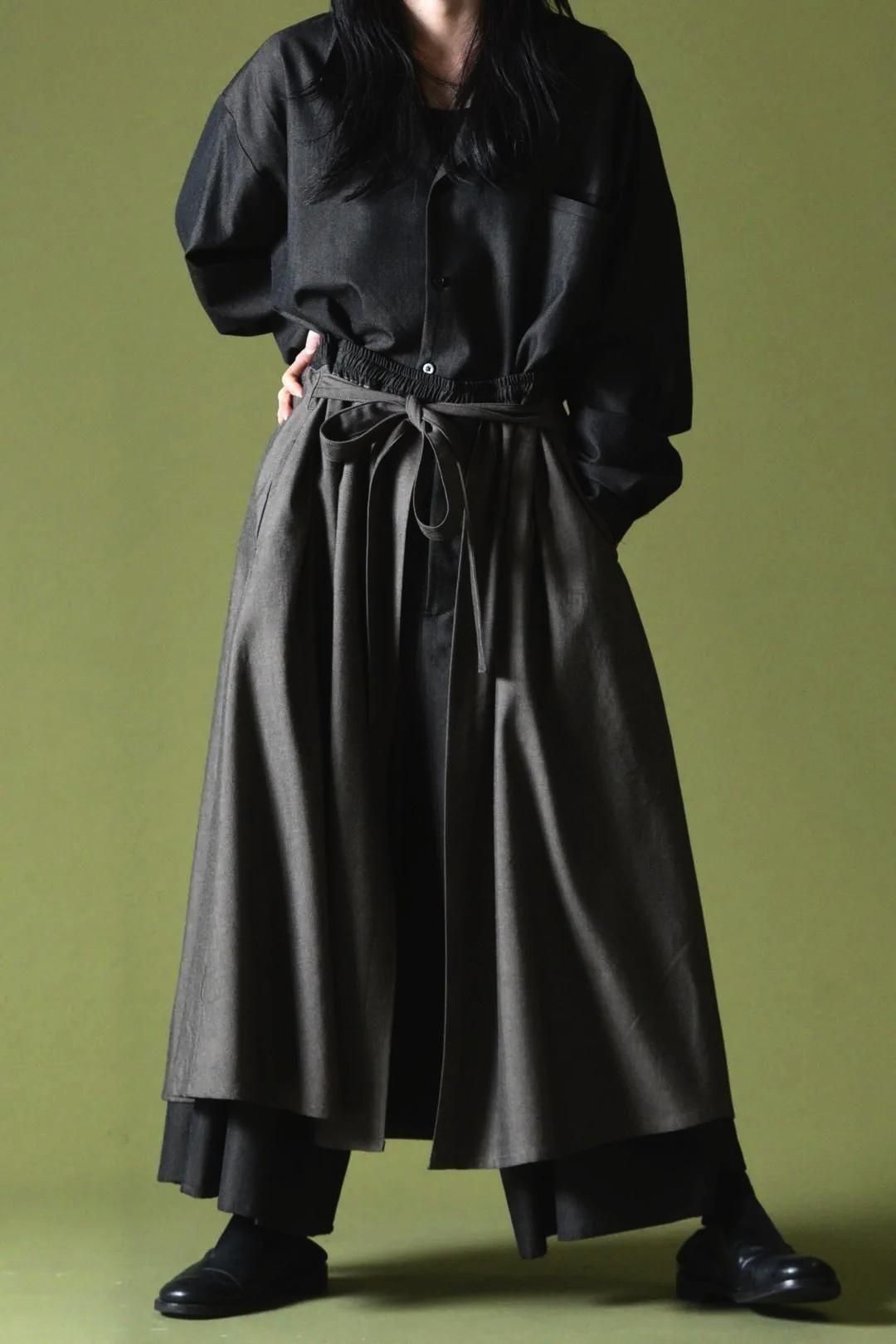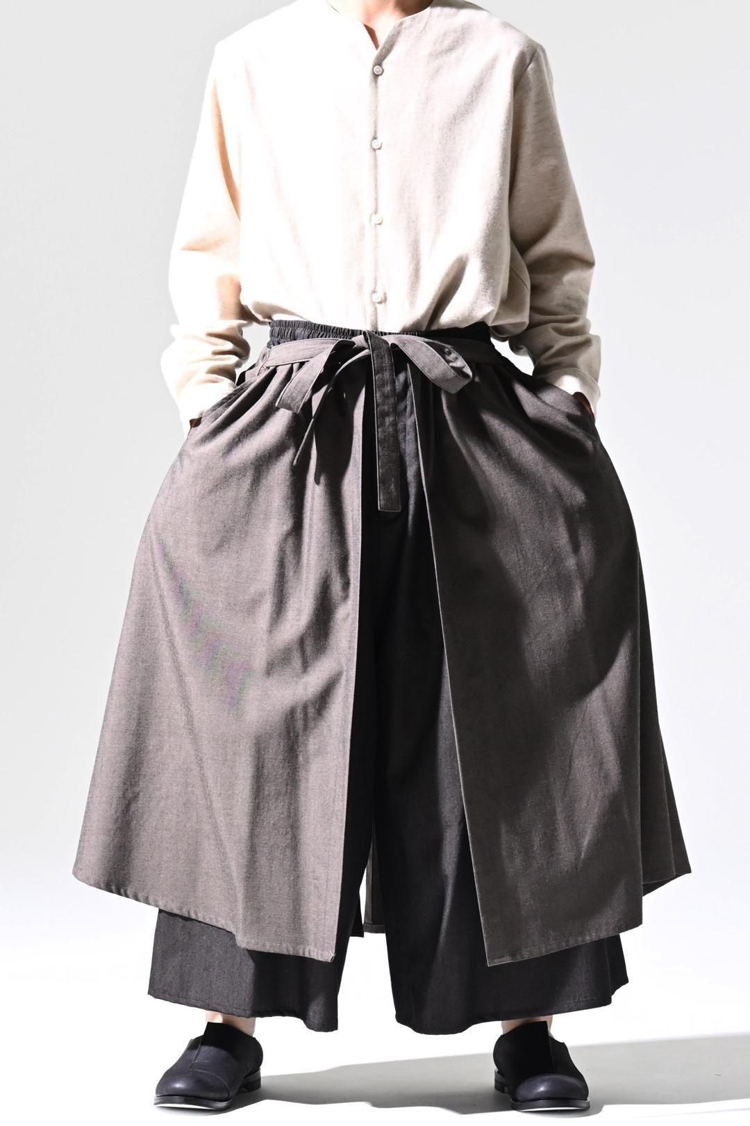 2枚の布を重ねて生地の美しい動きとボリューム感を表現したレイヤード「袴」パンツ。