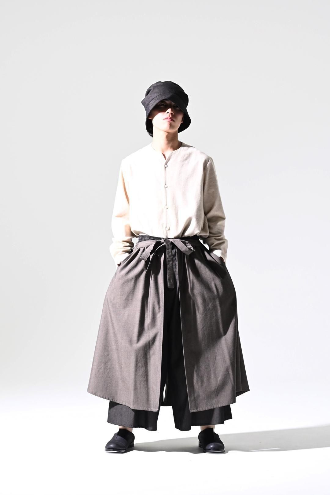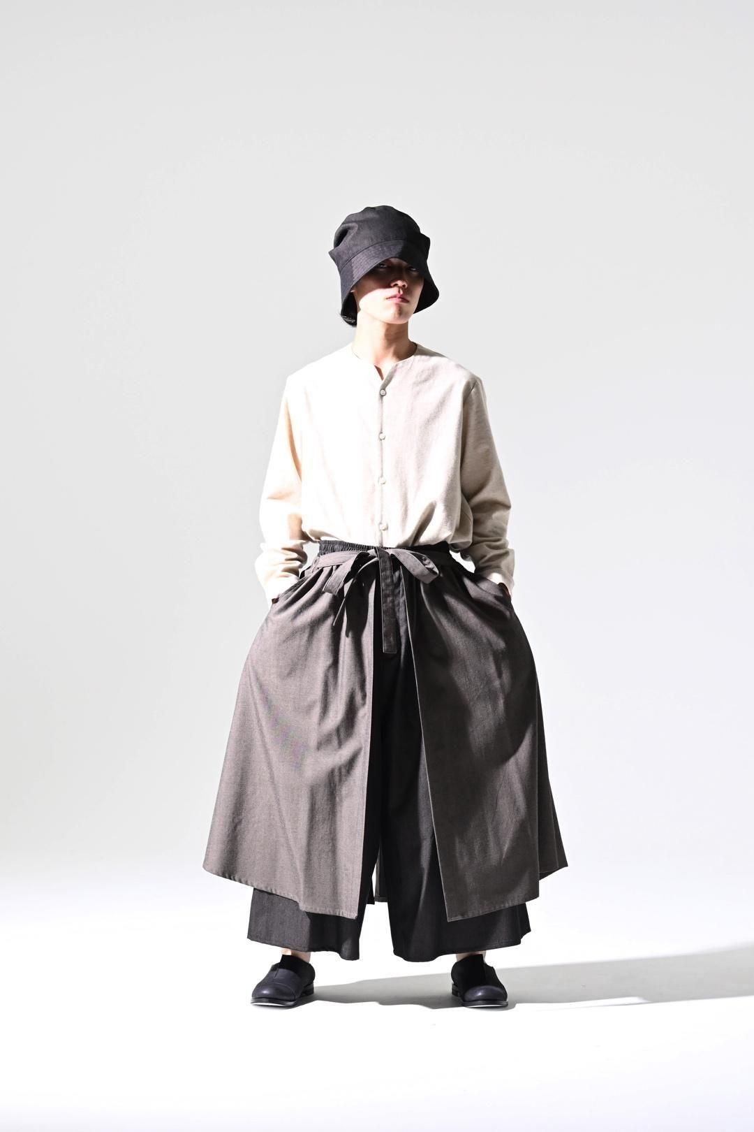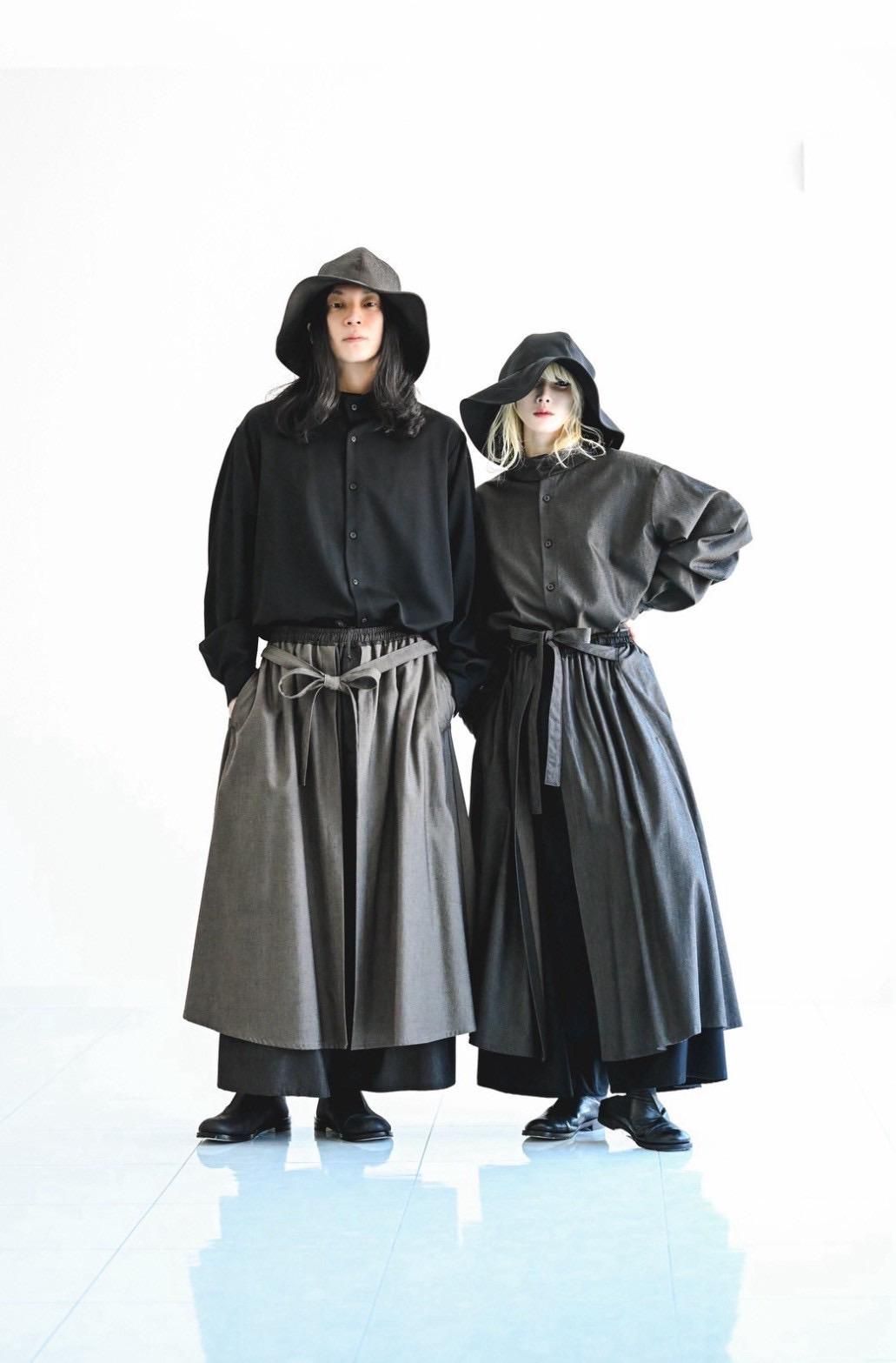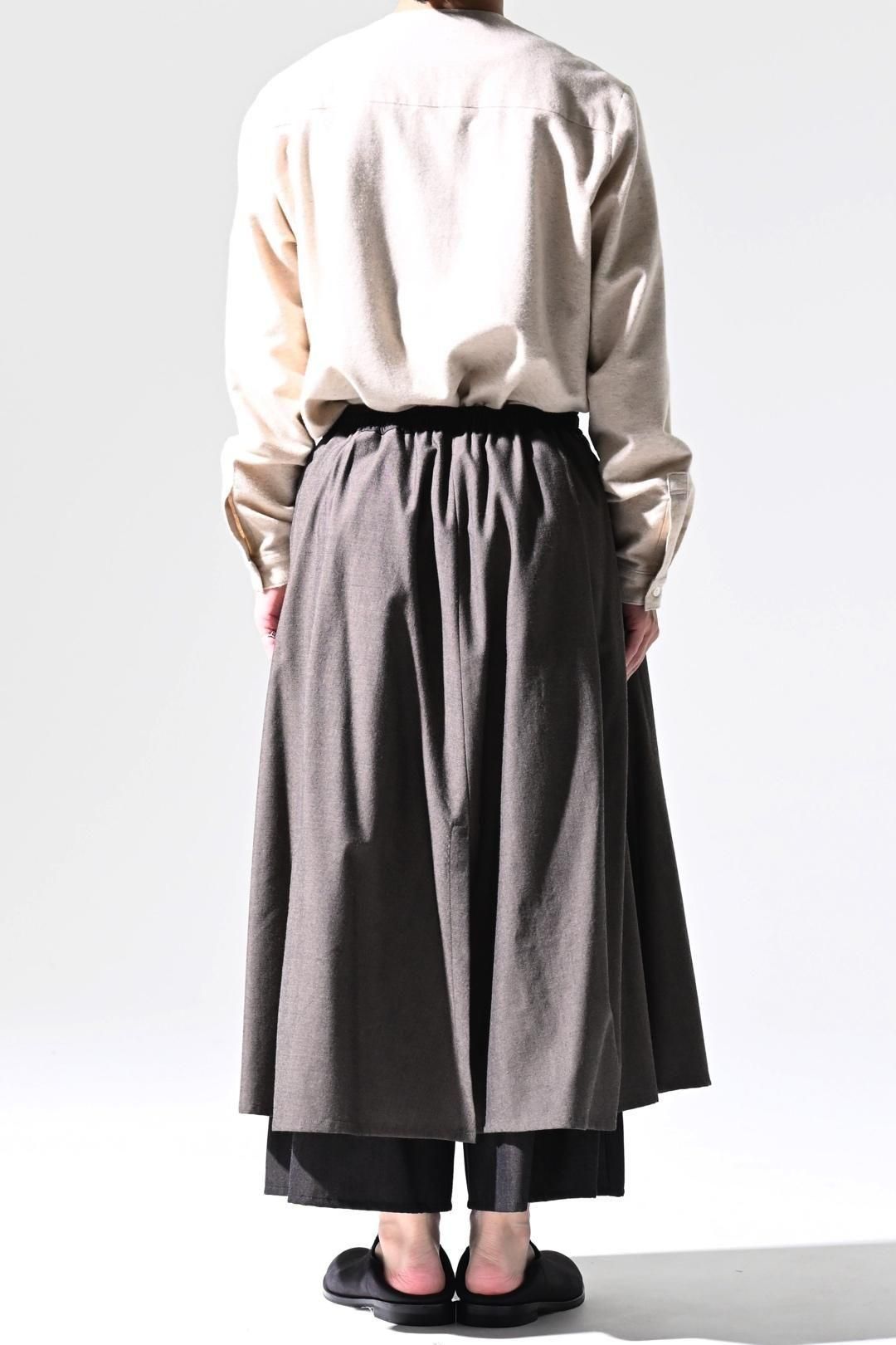 2枚の布を重ねて生地の美しい動きとボリューム感を表現したレイヤード「袴」パンツ。