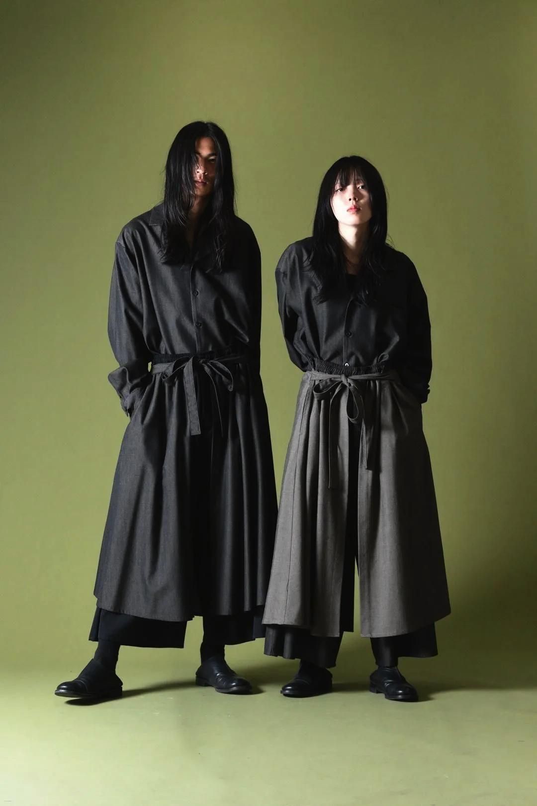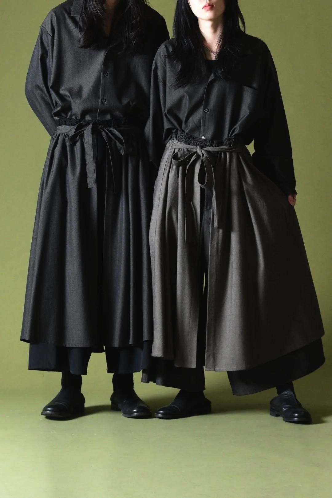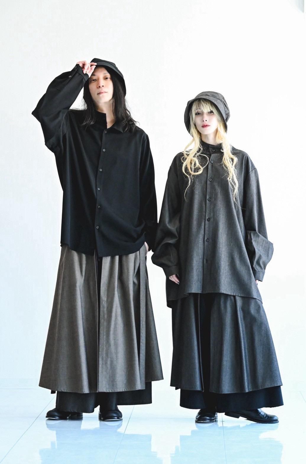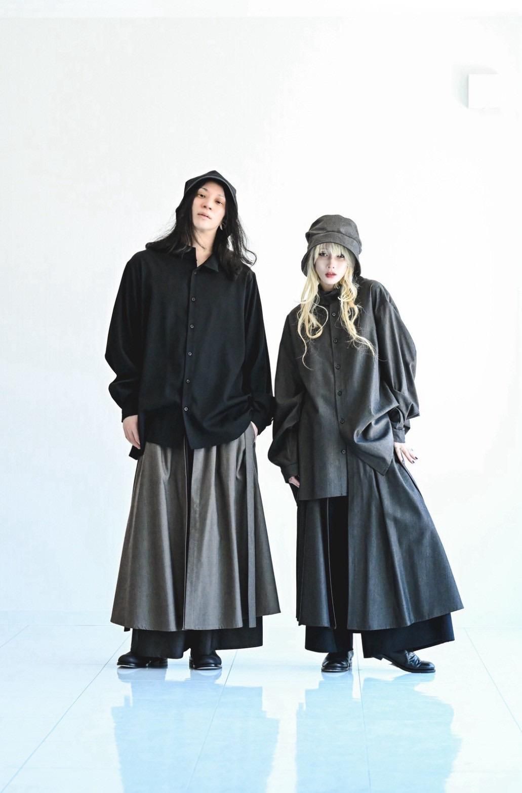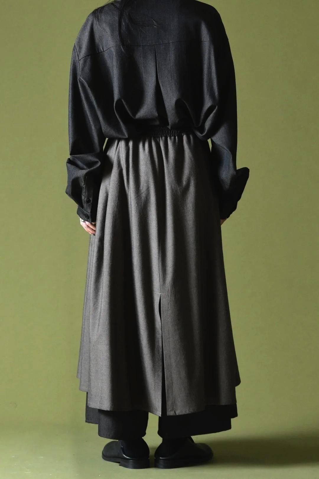2枚の布を重ねて生地の美しい動きとボリューム感を表現したレイヤード「袴」パンツ。