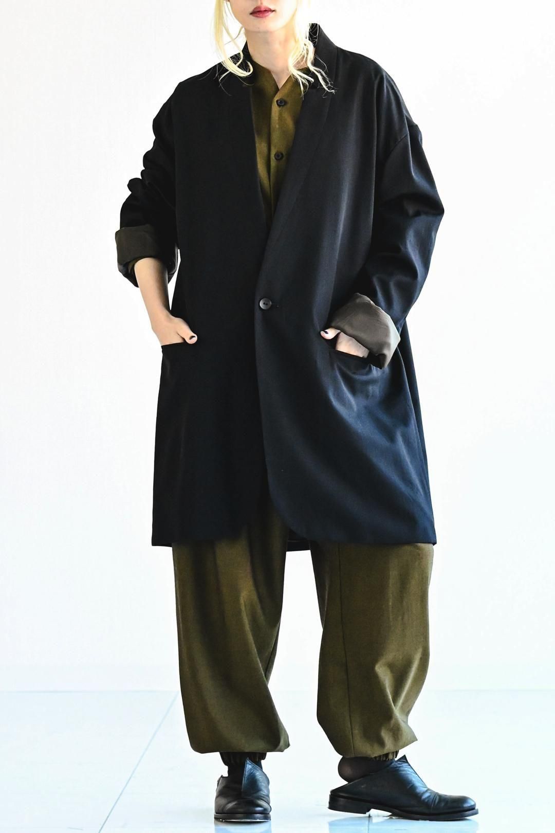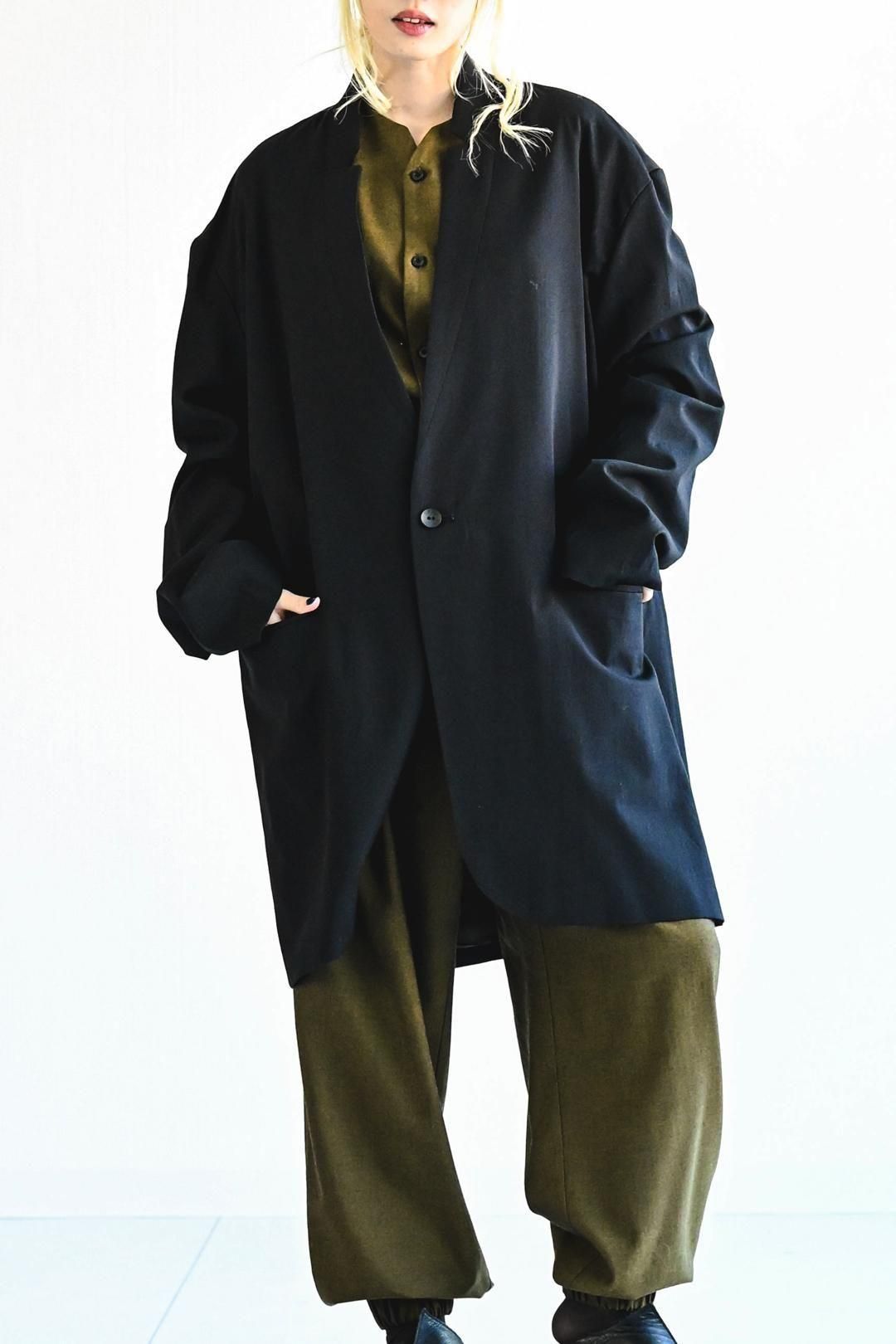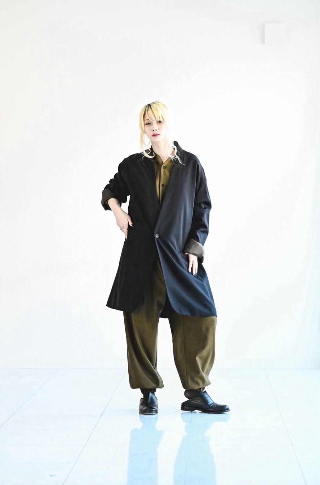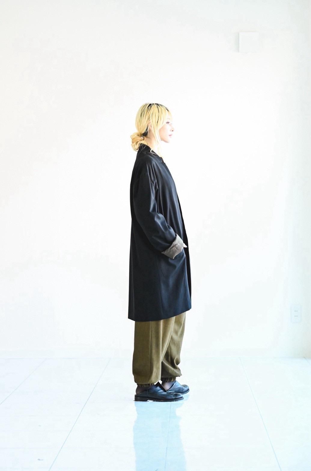 BISHOOLが高級毛織物の産地"尾州"で生産した拘りのウールギャバジンを使用したロングジャケット。