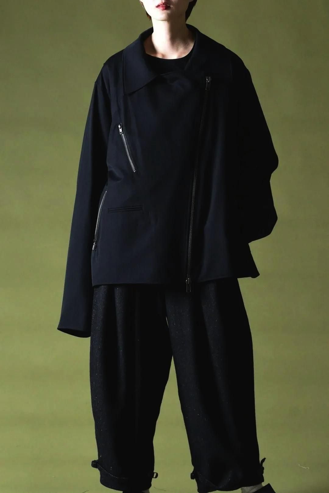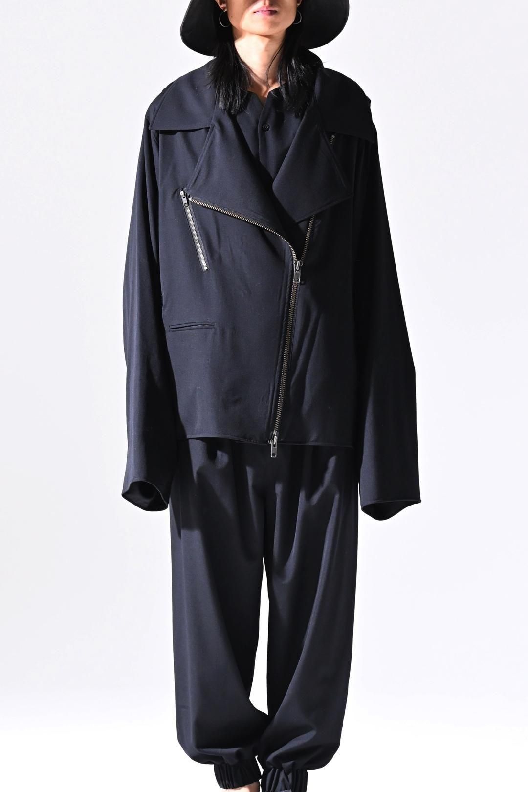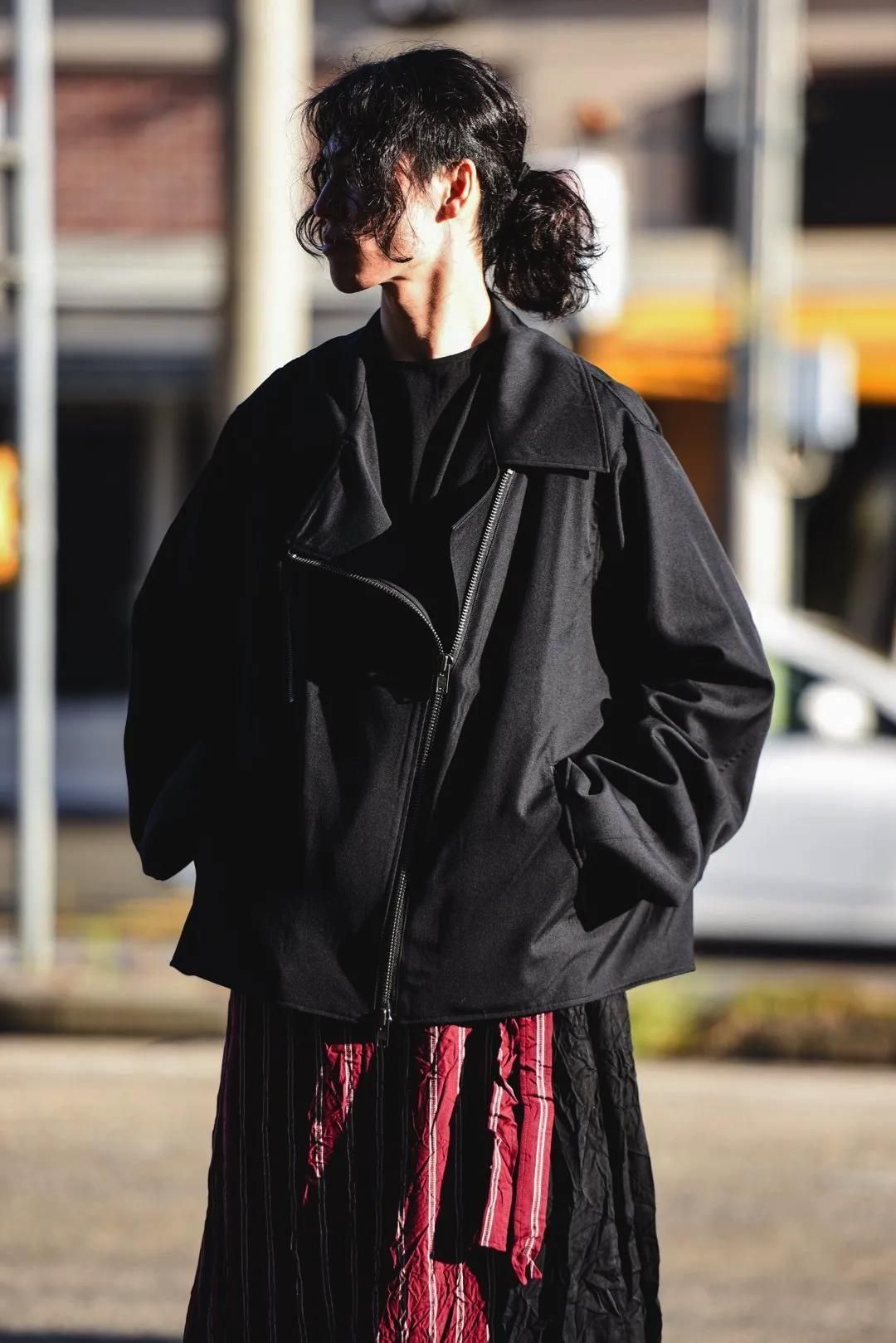 高級毛織物の産地"尾州"産のウールギャバジンを使用したライダーズジャケット。