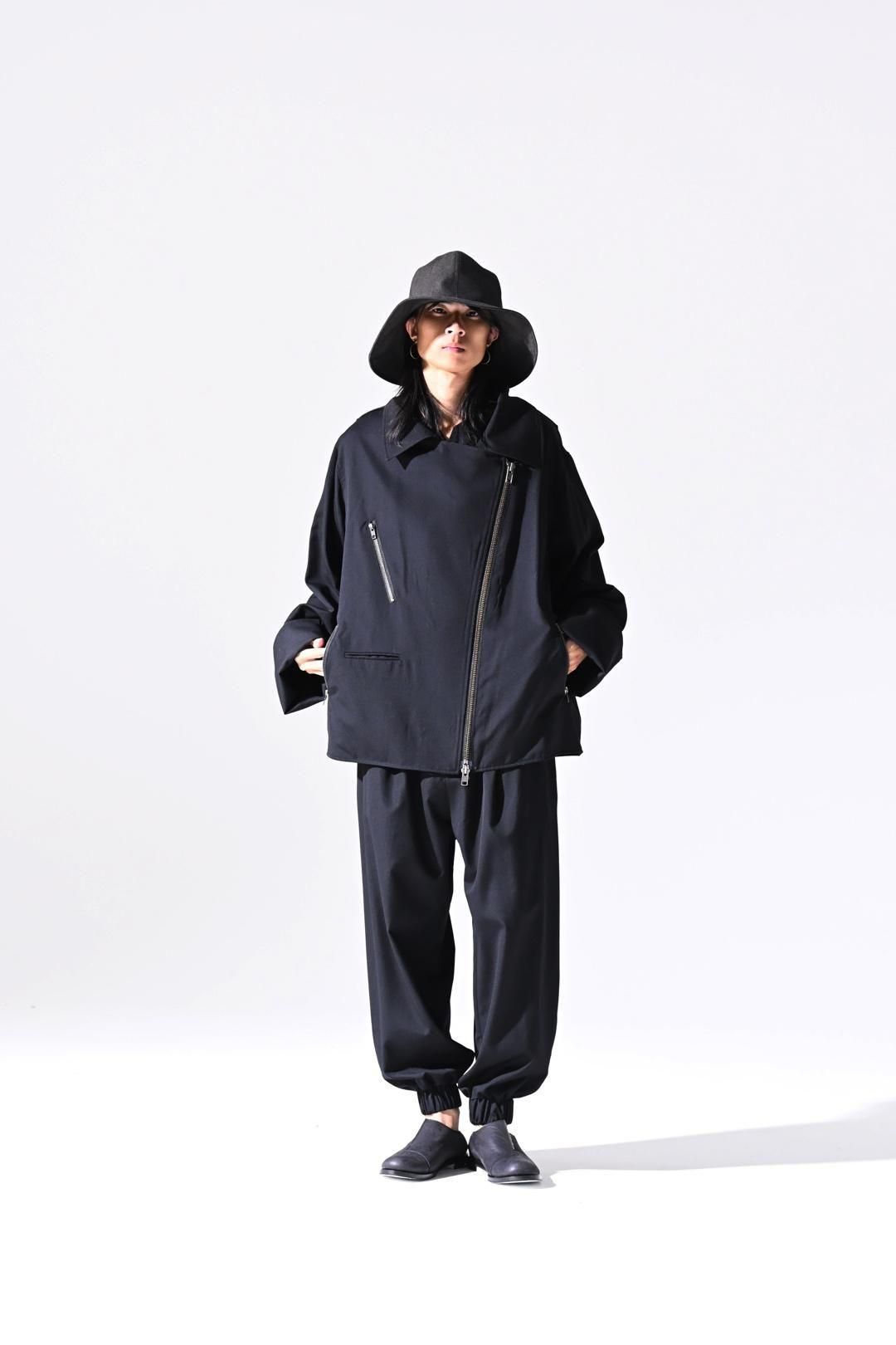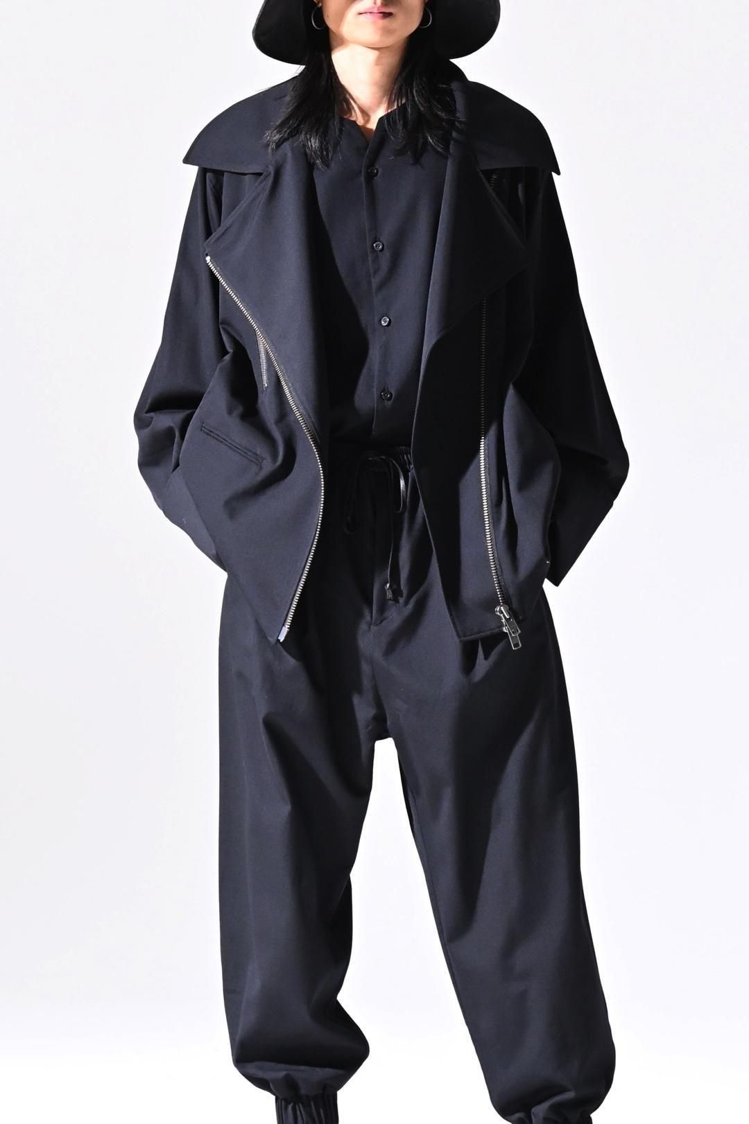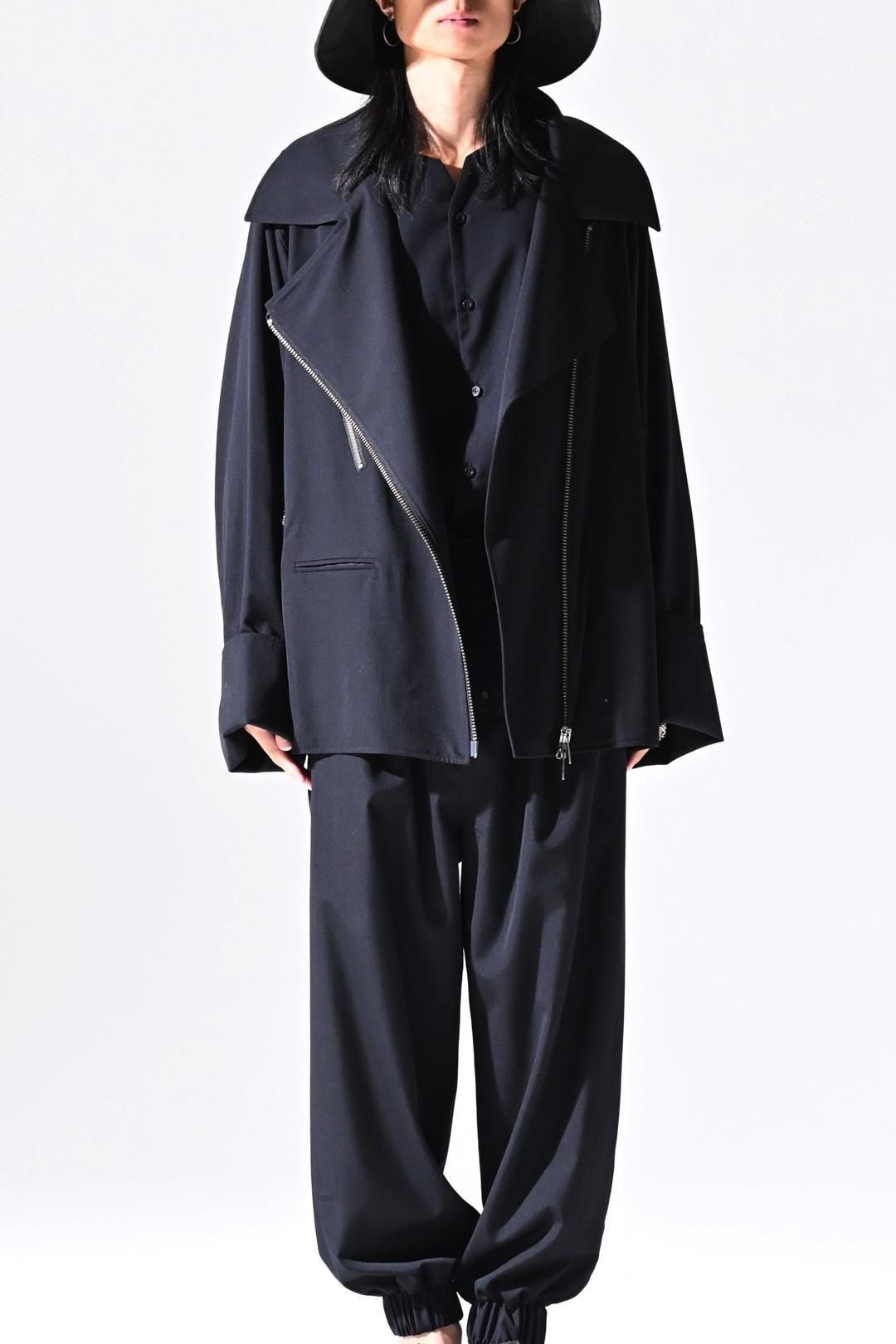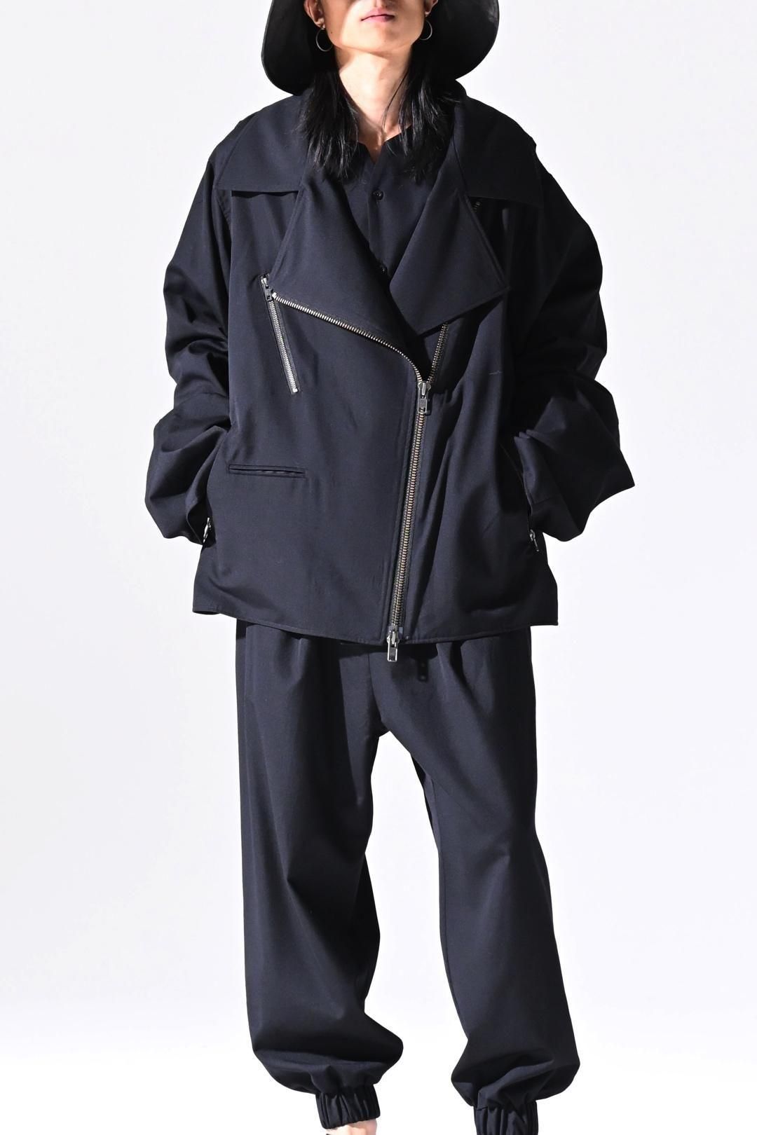 高級毛織物の産地"尾州"産のウールギャバジンを使用したライダーズジャケット。