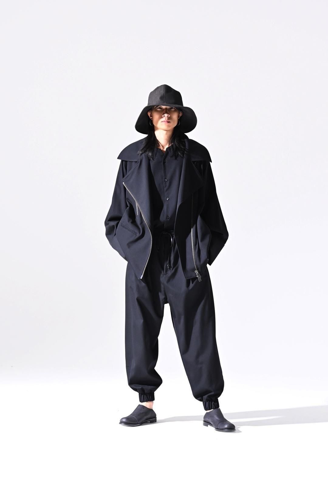 そのオーバーシルエットによるウールギャバジン生地の美しいドレープが最大の魅力。