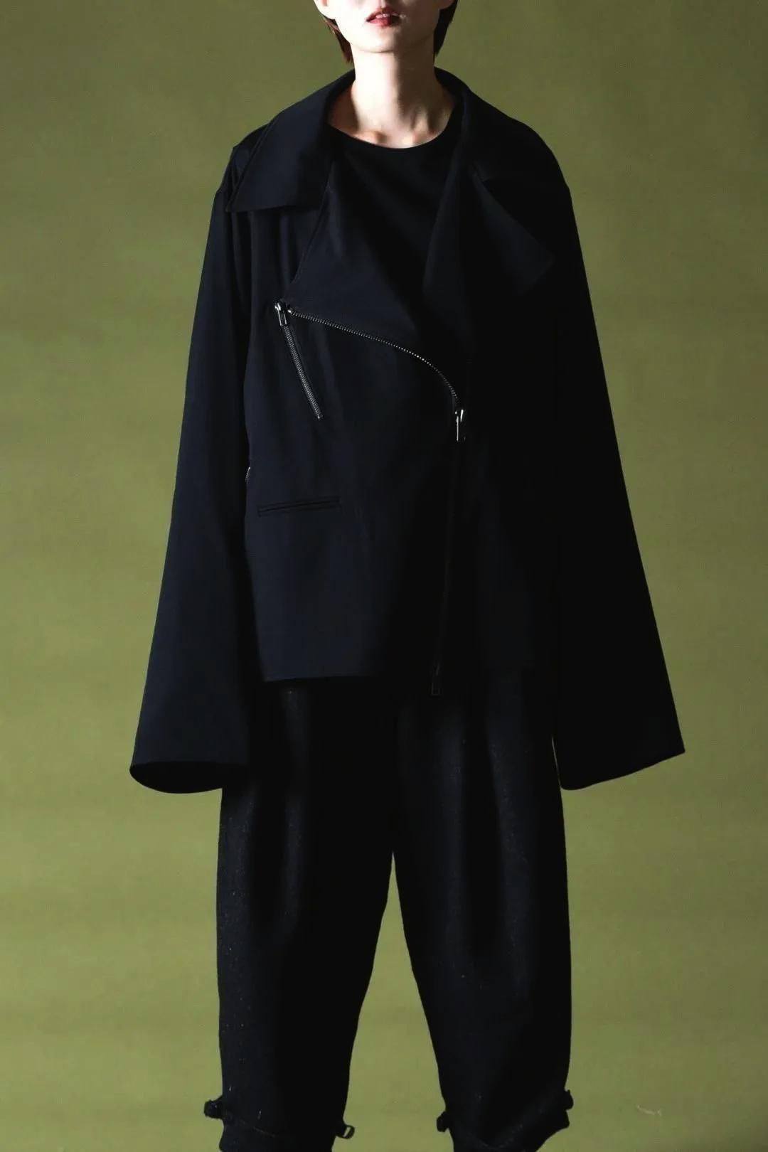 -レザーのイメージが強い「ライダーズジャケット」を私たちが最も好むウールギャバジン生地で制作しました。春や秋に、カットソーやスウェット1枚の上にバサッと羽織って頂きたい1着。365日のうち、200日ほど着用頂きたい-