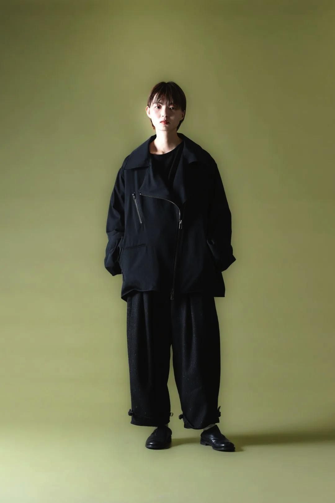 -レザーのイメージが強い「ライダーズジャケット」を私たちが最も好むウールギャバジン生地で制作しました。春や秋に、カットソーやスウェット1枚の上にバサッと羽織って頂きたい1着。365日のうち、200日ほど着用頂きたい-
