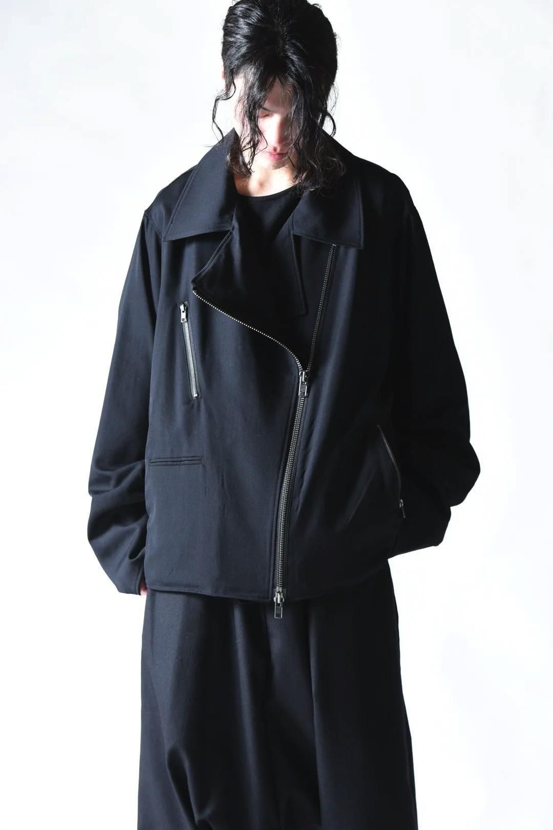 高級毛織物の産地"尾州"産のウールギャバジンを使用したライダーズジャケット。