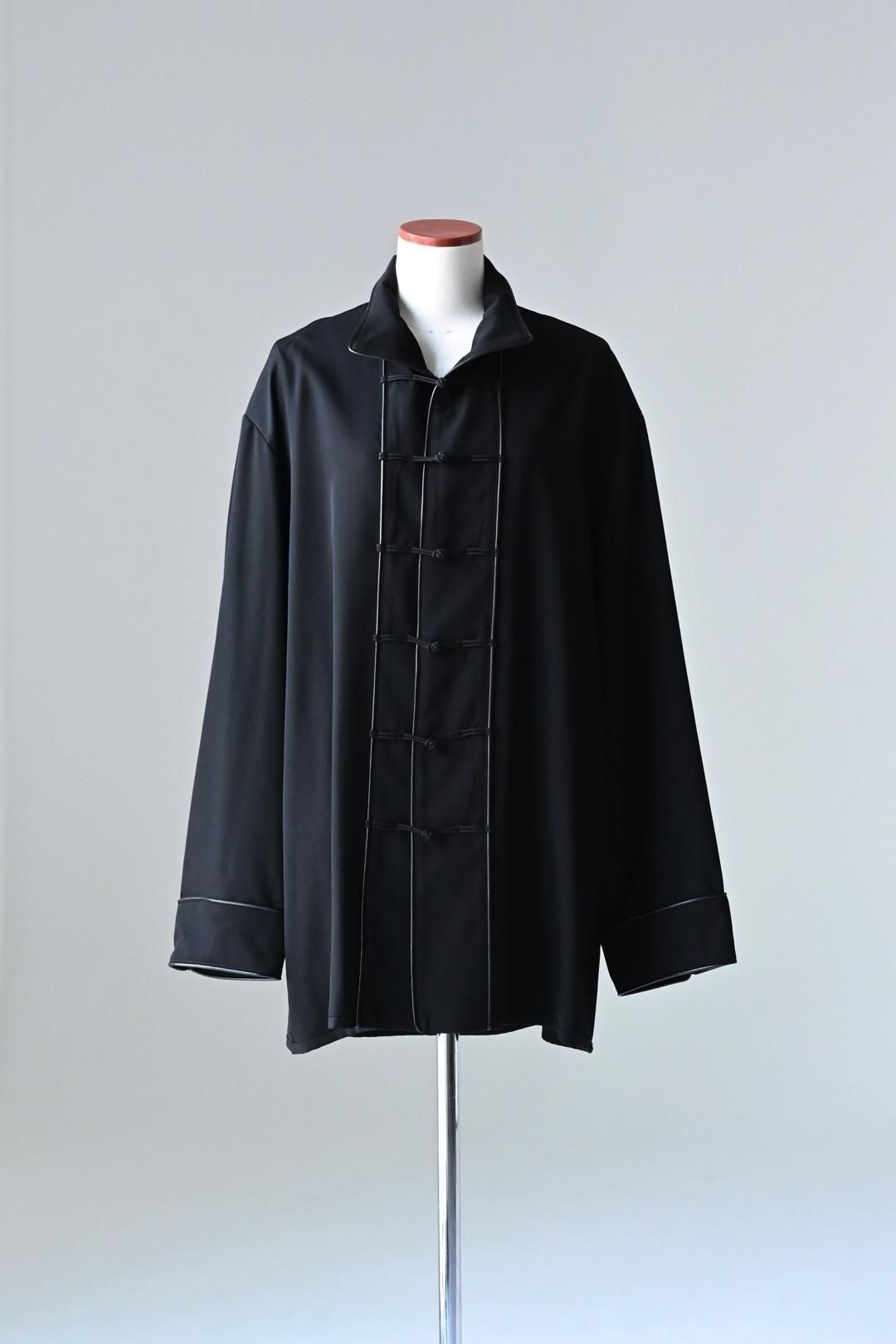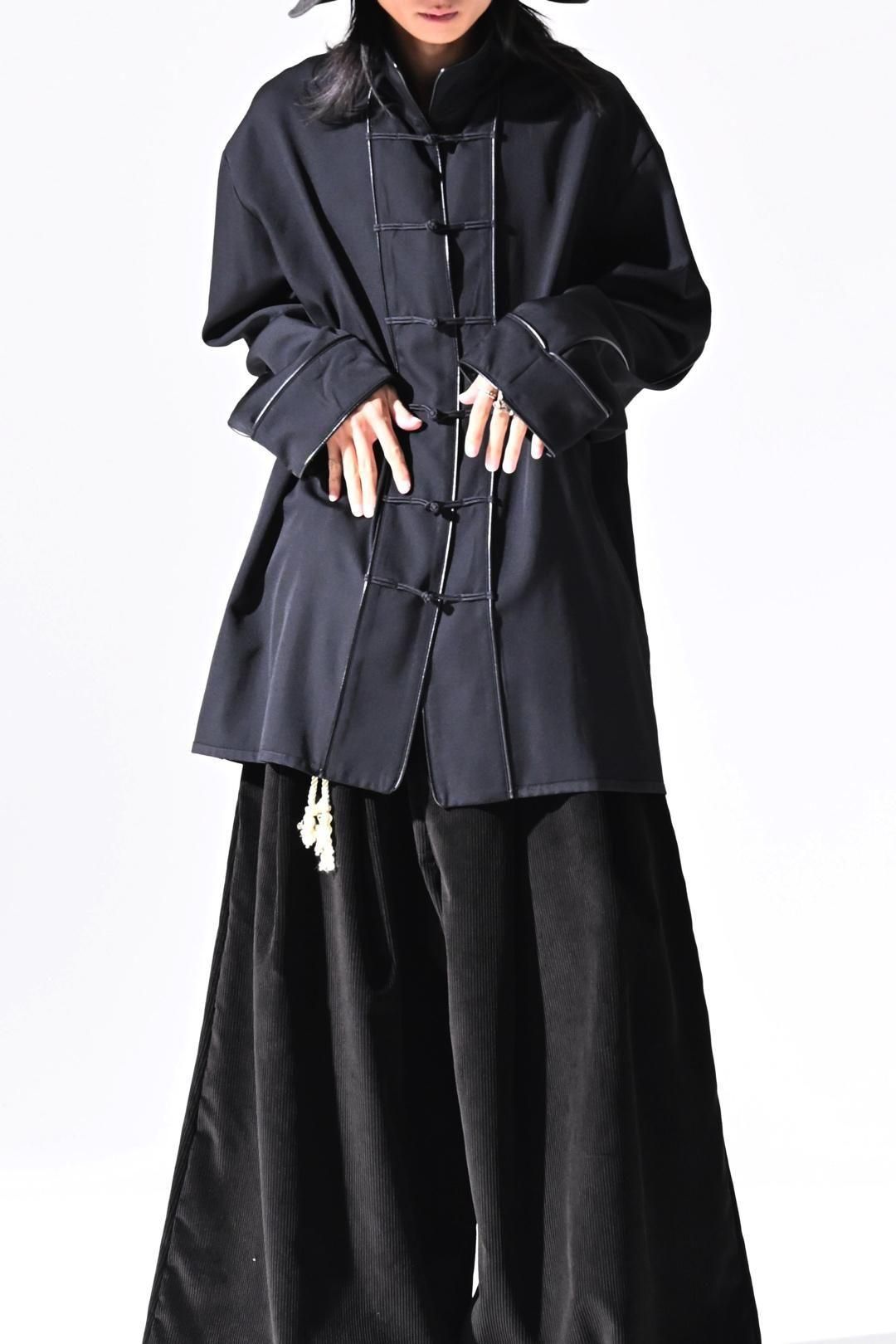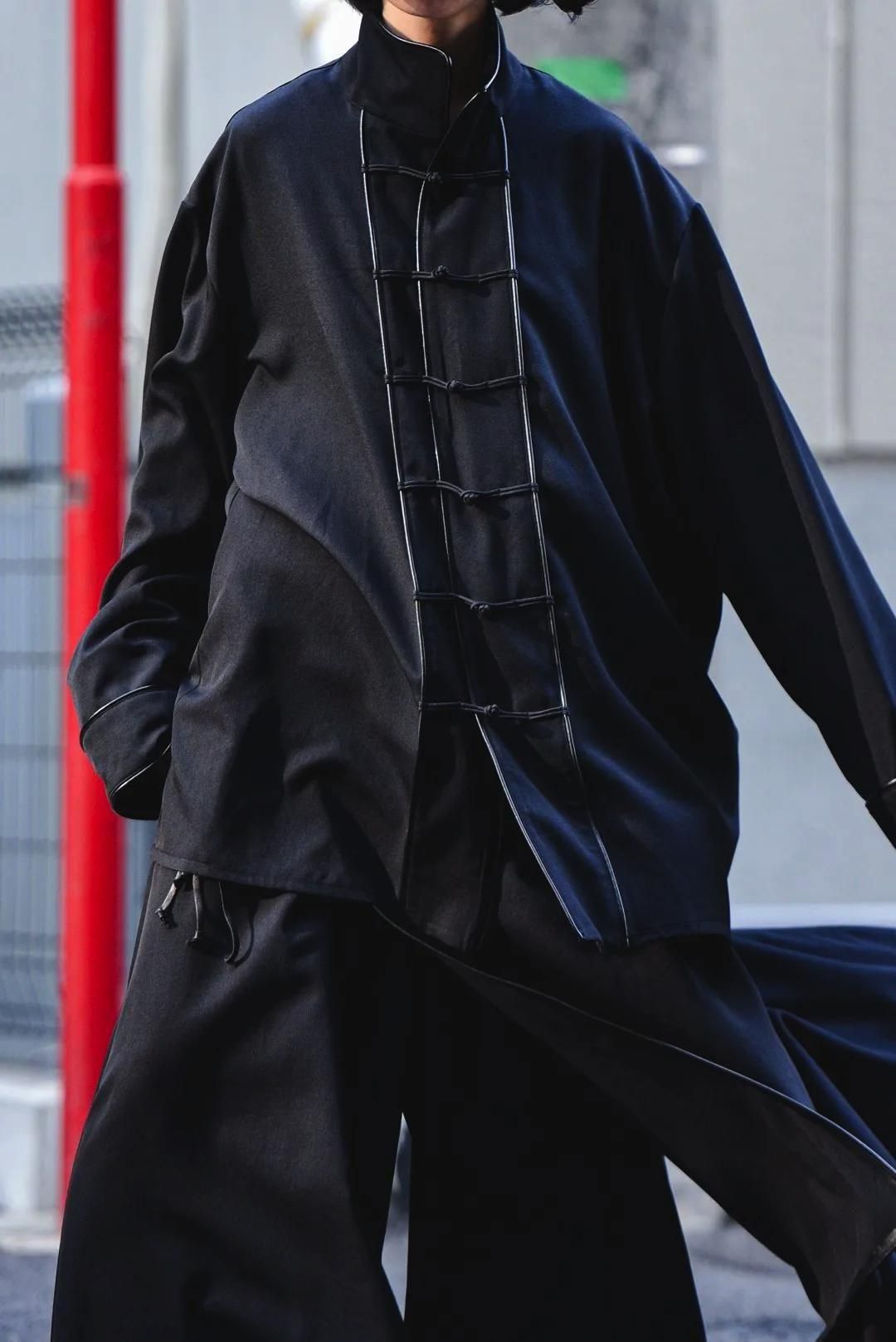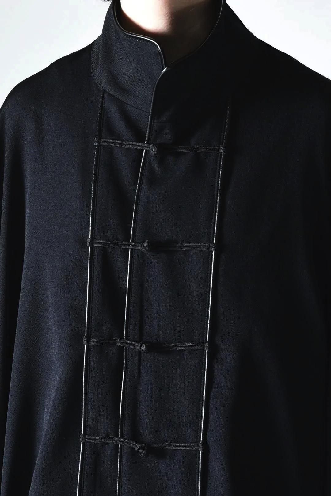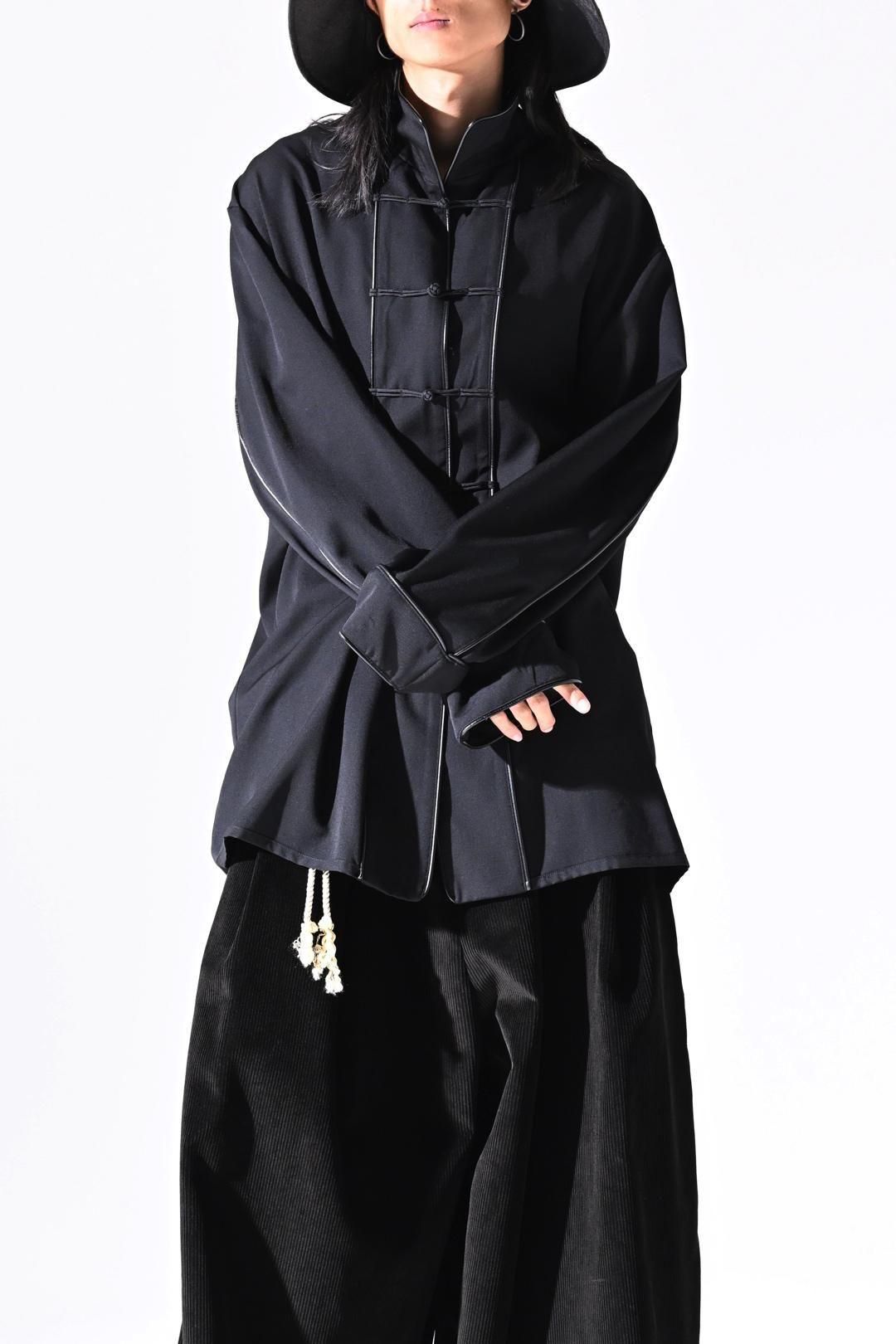日本で生産される本革レザーパイピングを配したチャイナジャケット。