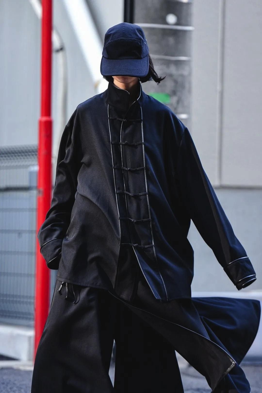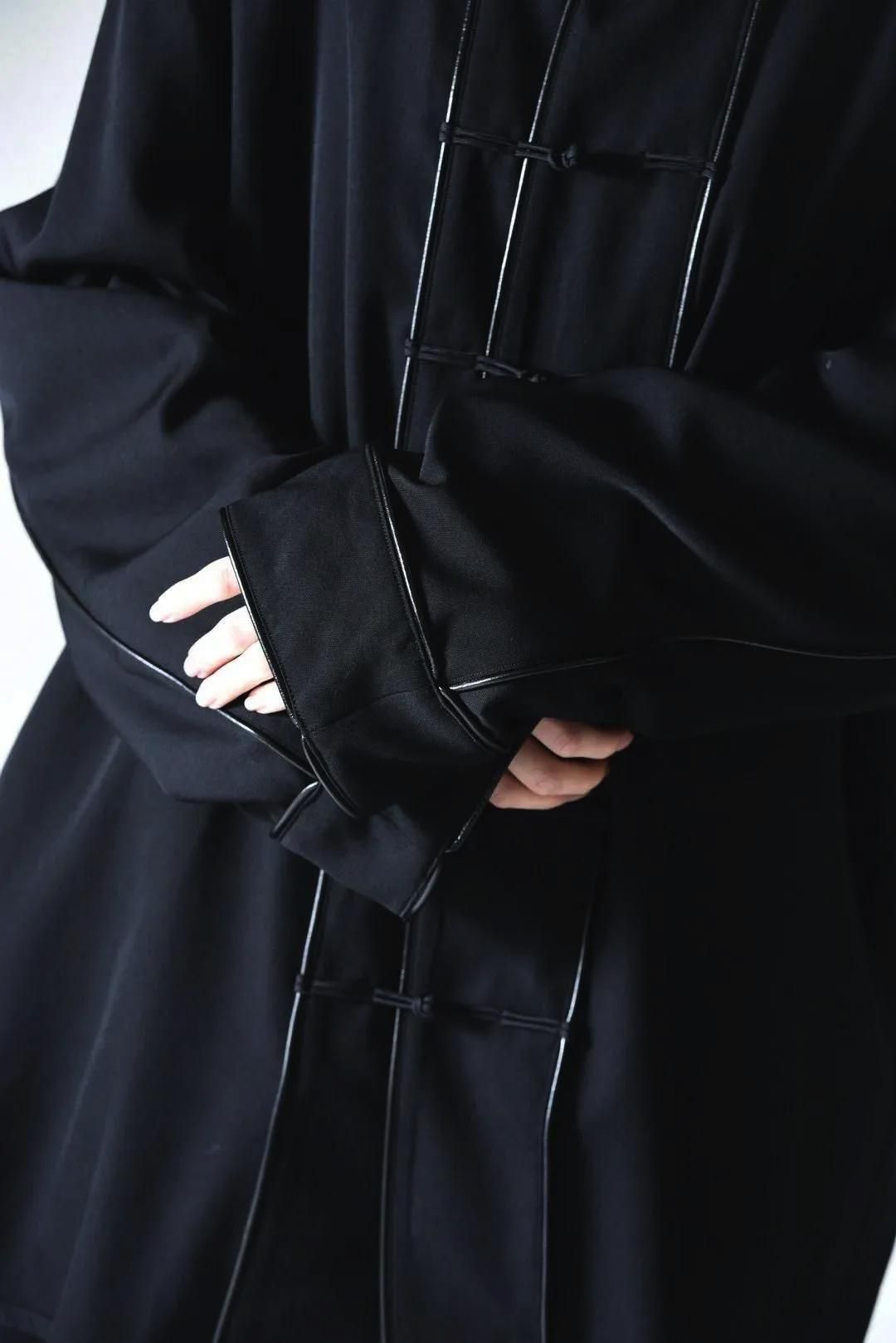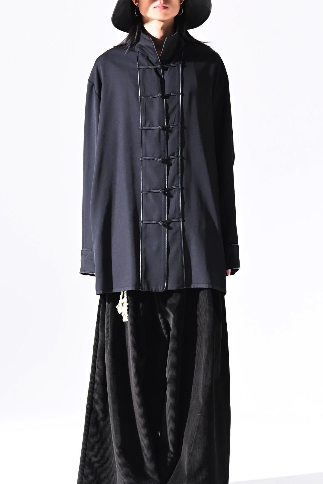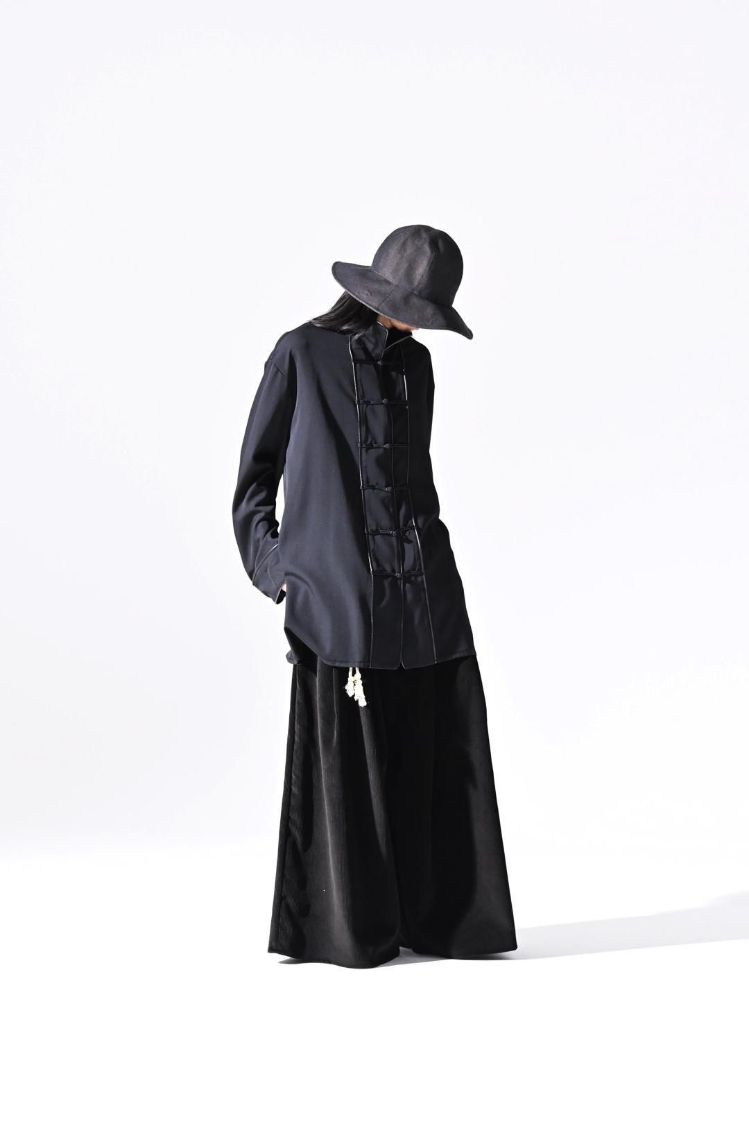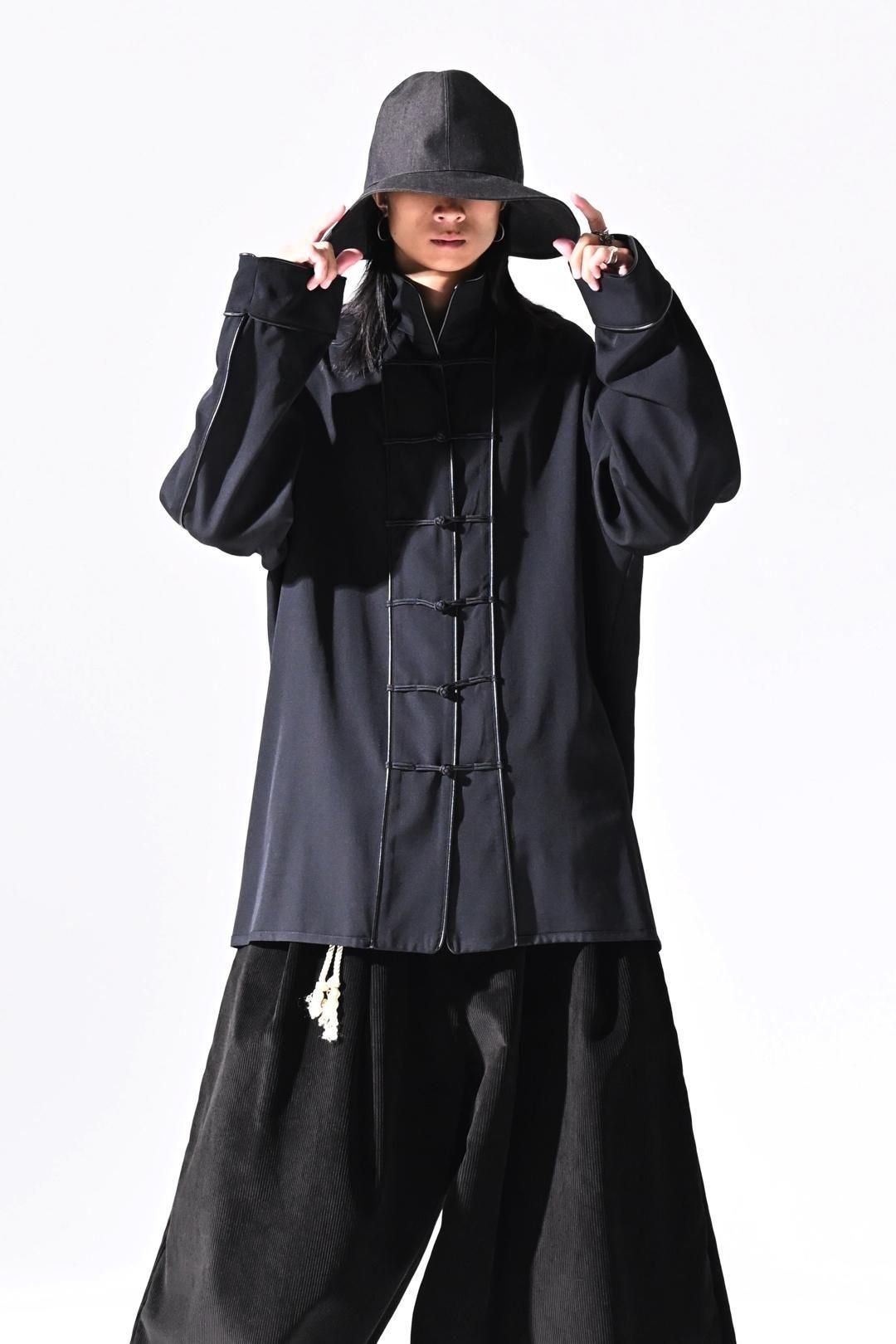 日本で生産される本革レザーパイピングを配したチャイナジャケット。