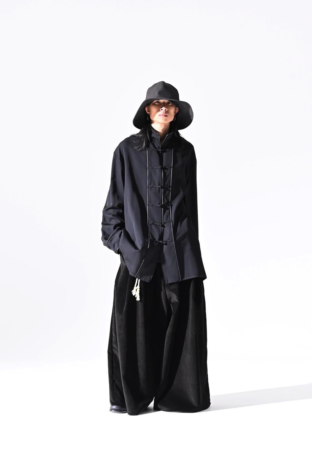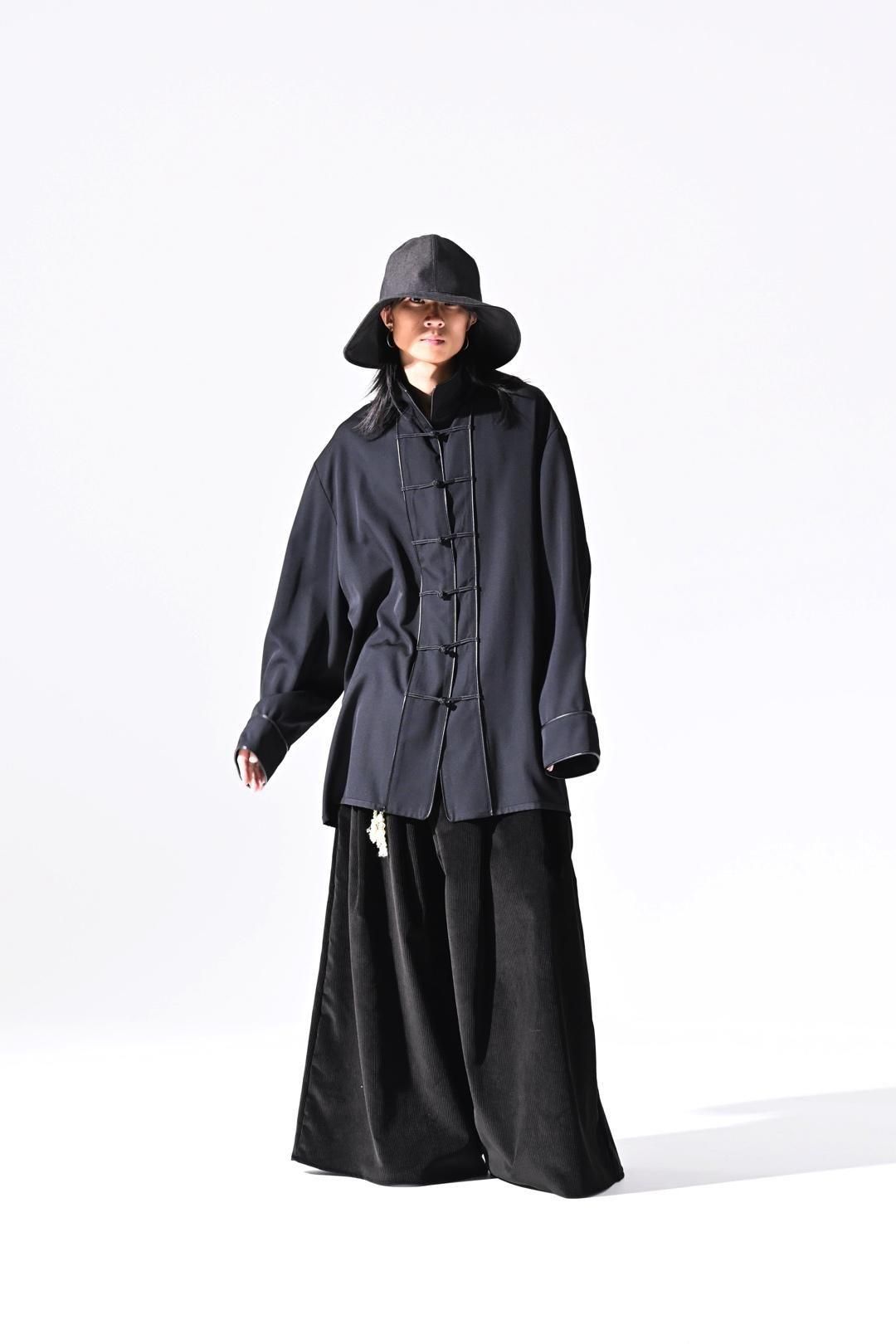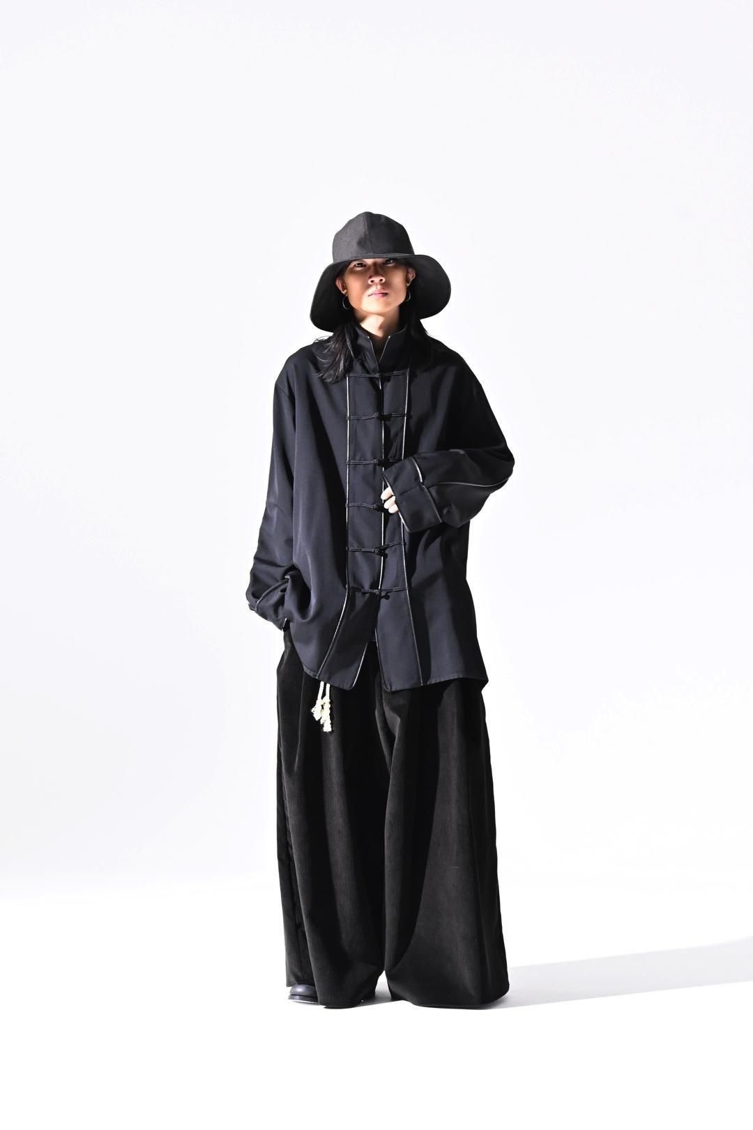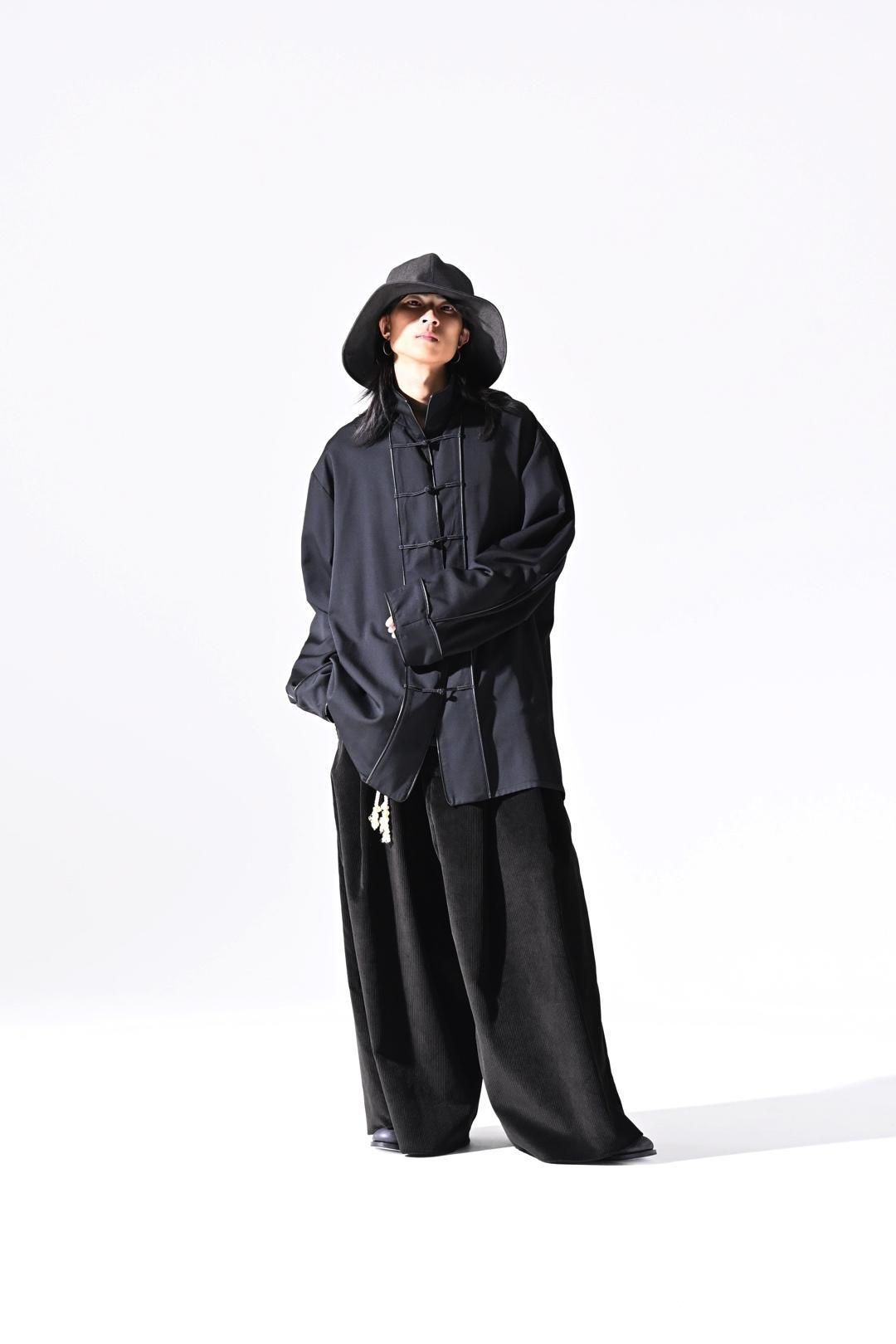 日本で生産される本革レザーパイピングを配したチャイナジャケット。
