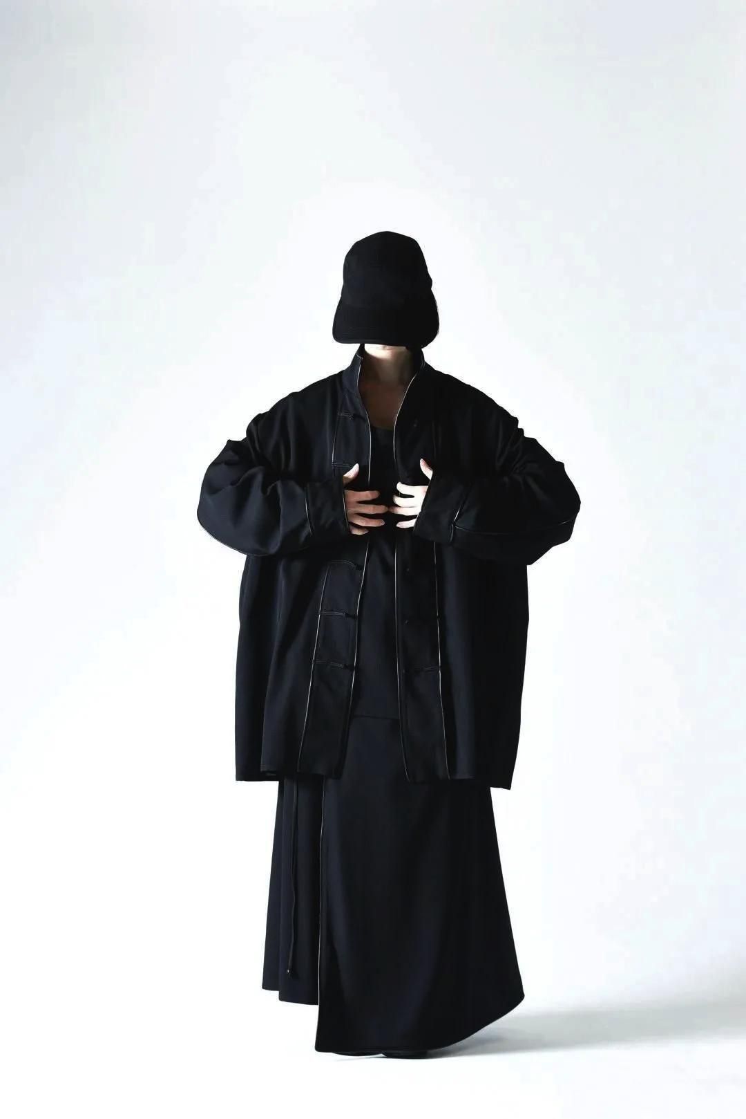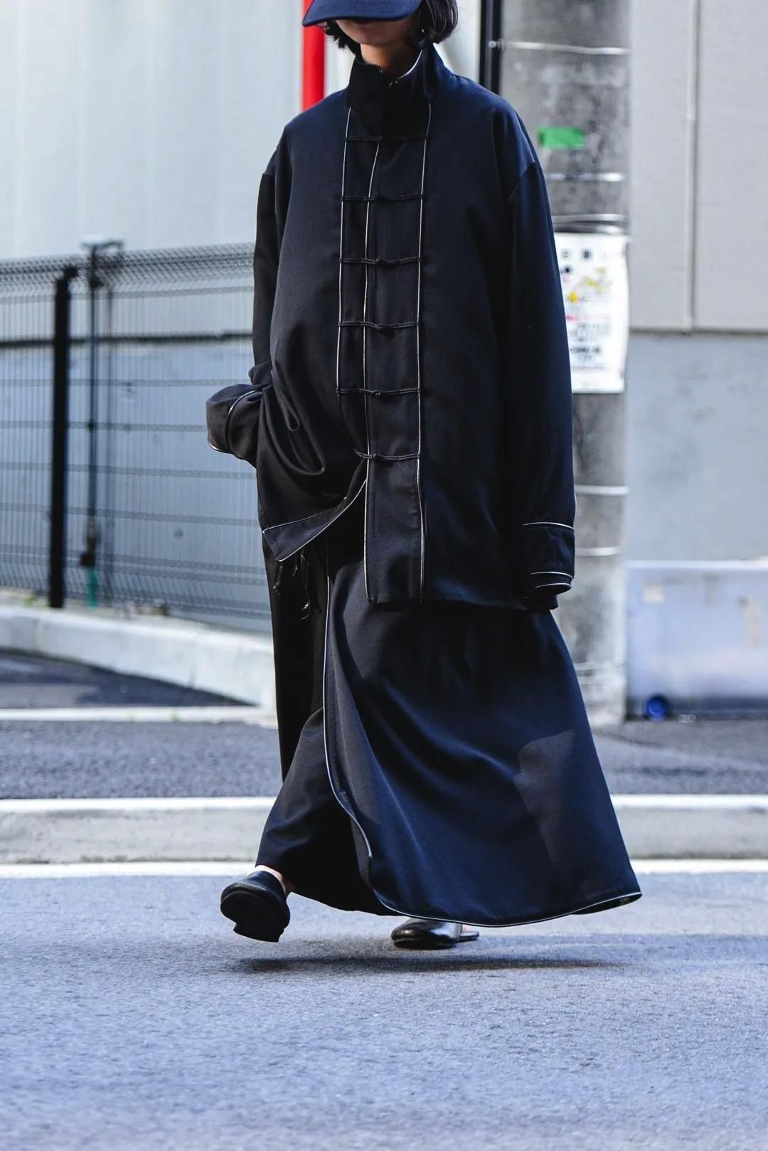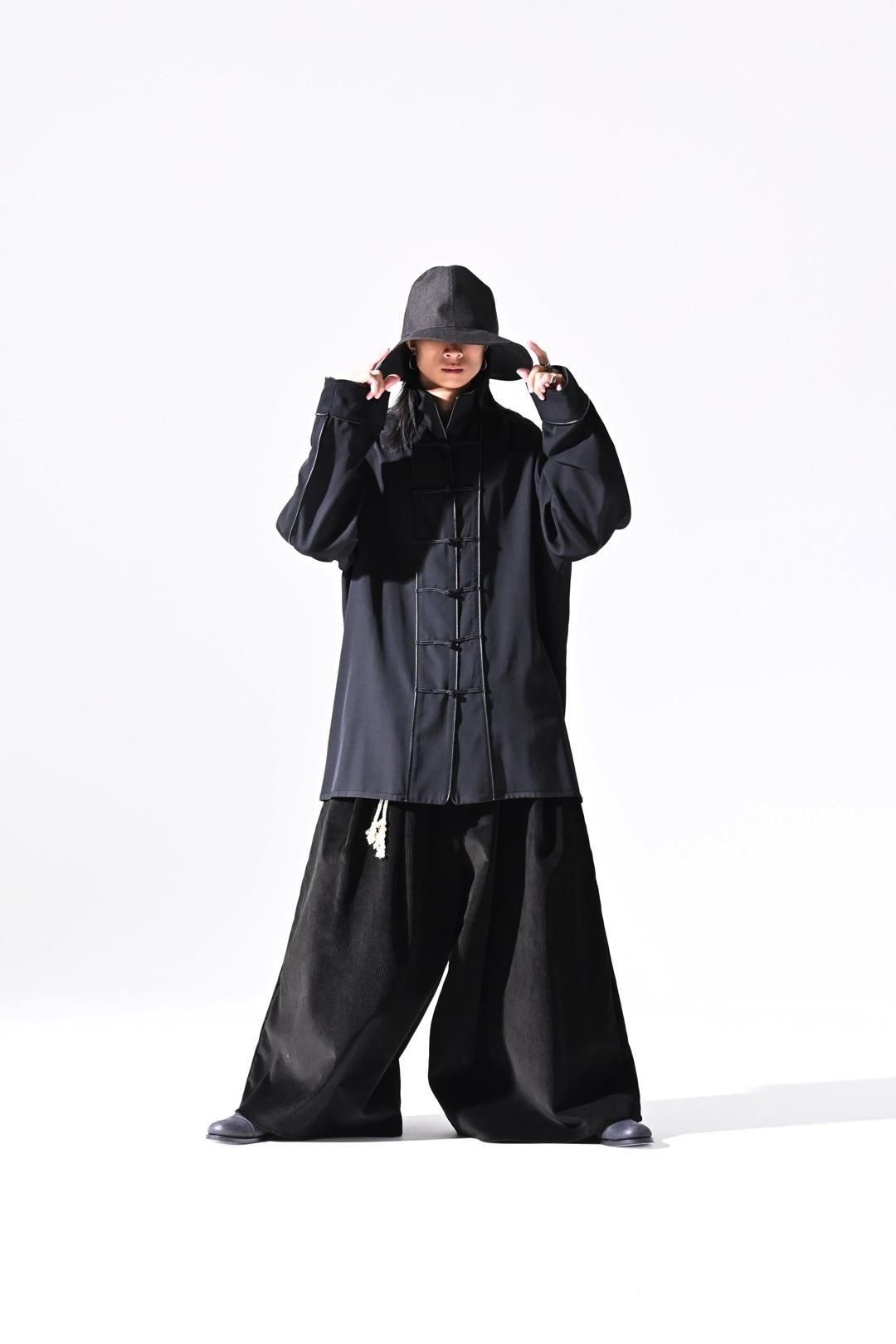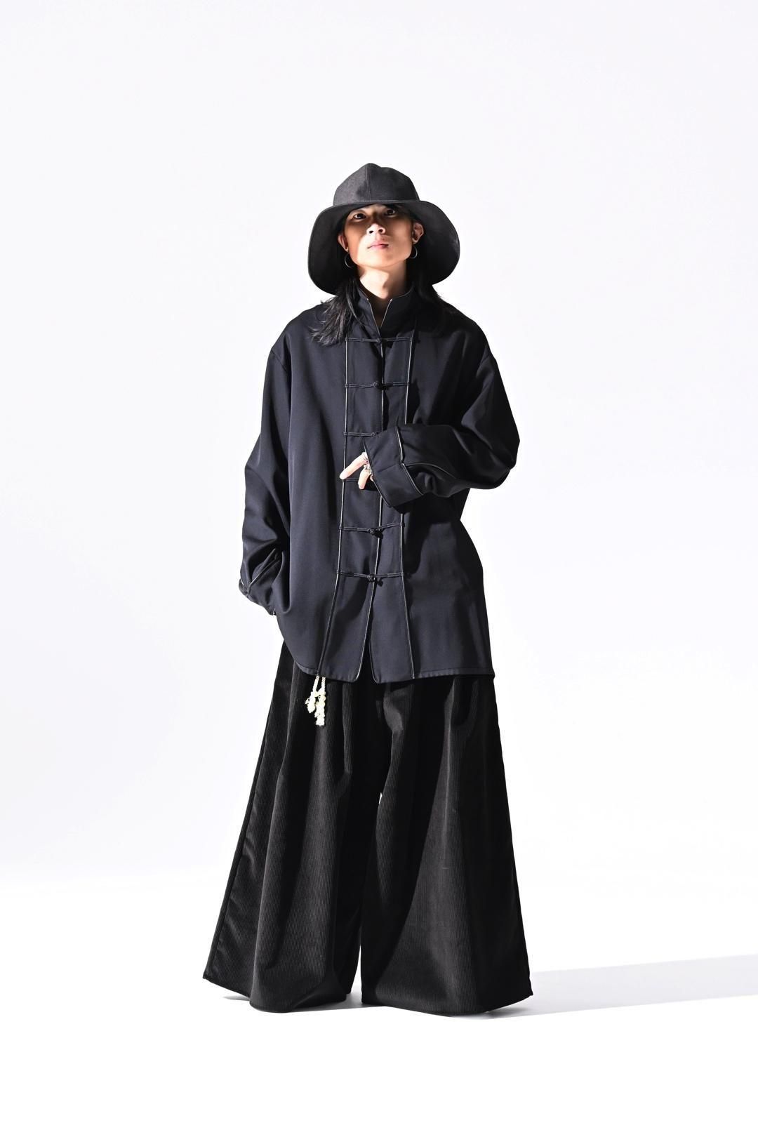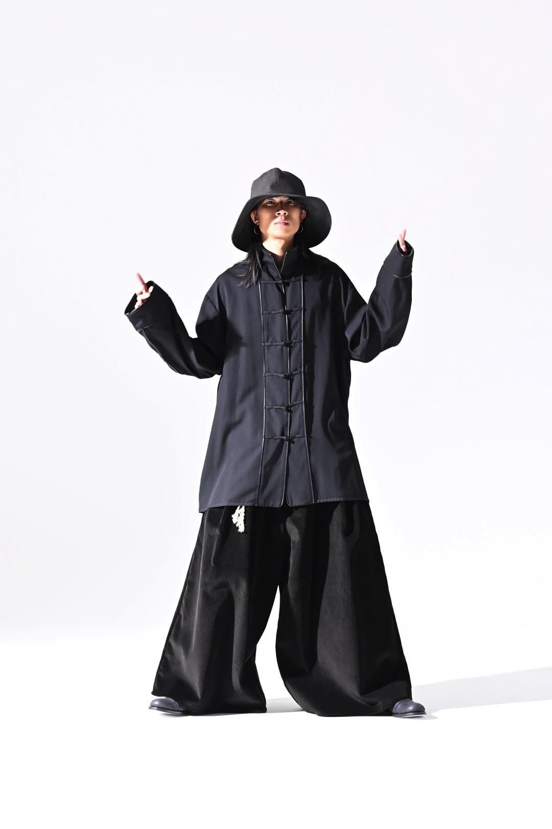 日本で生産される本革レザーパイピングを配したチャイナジャケット。