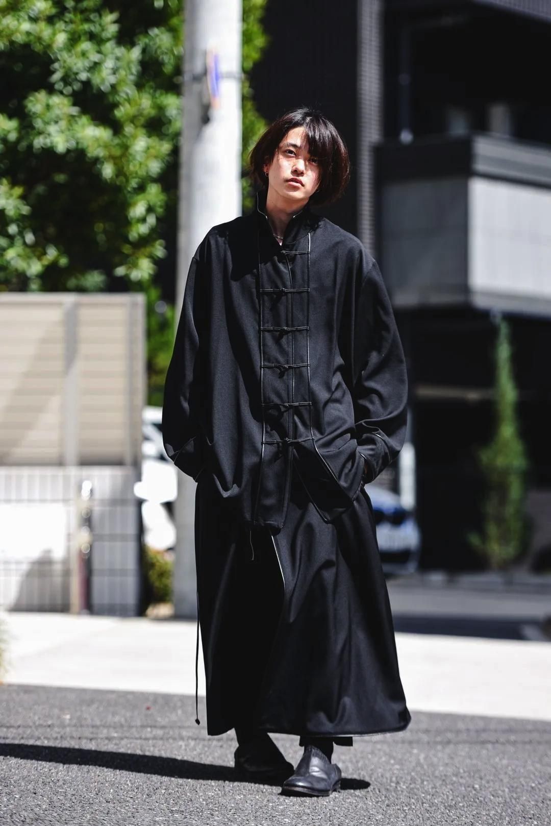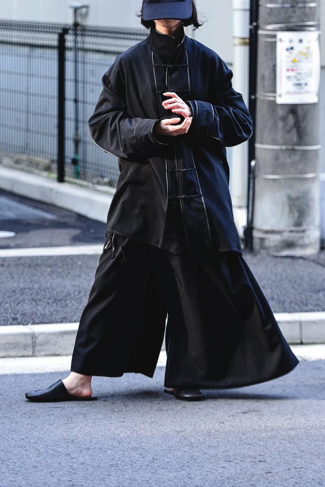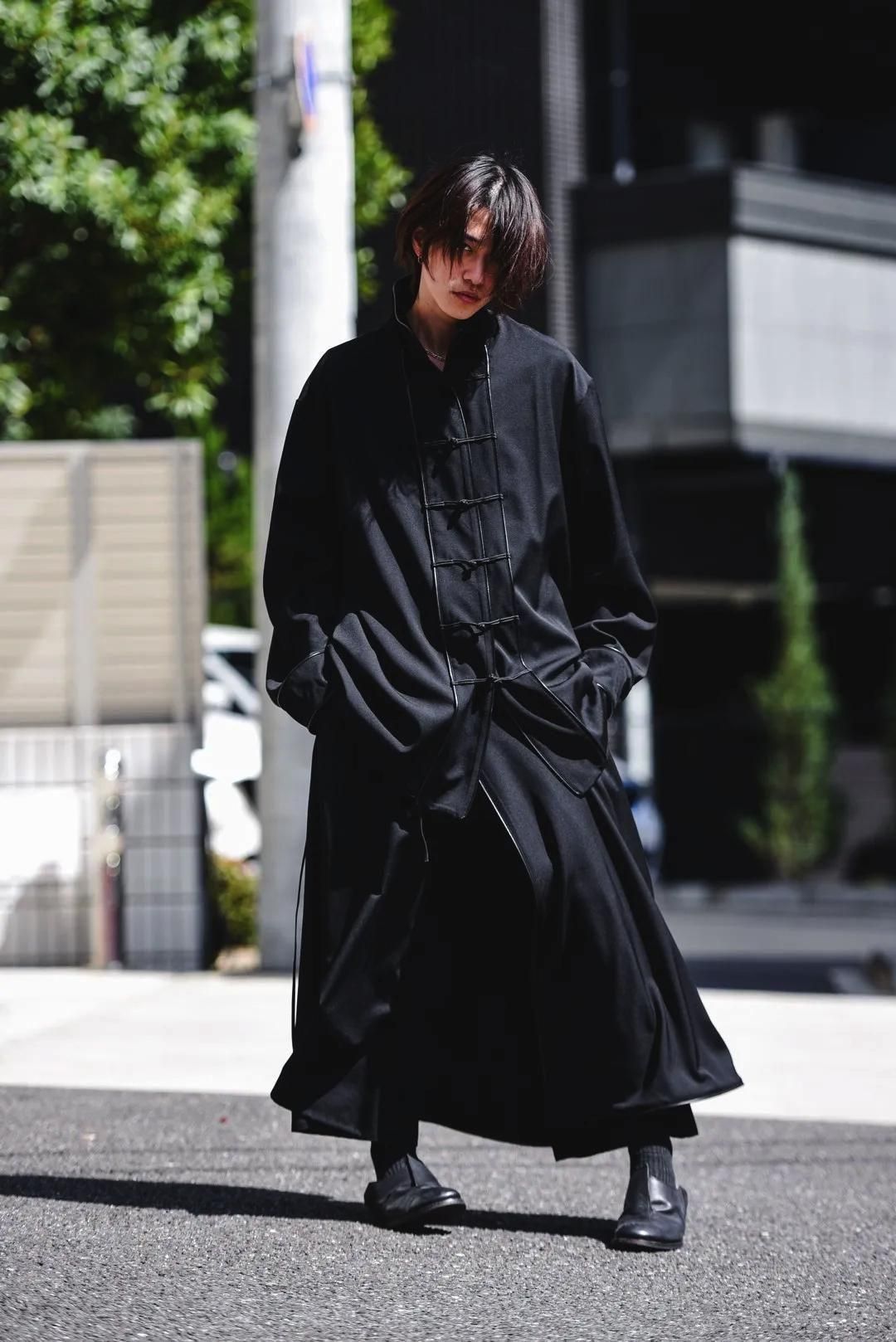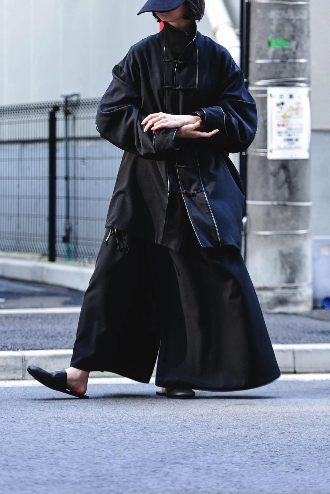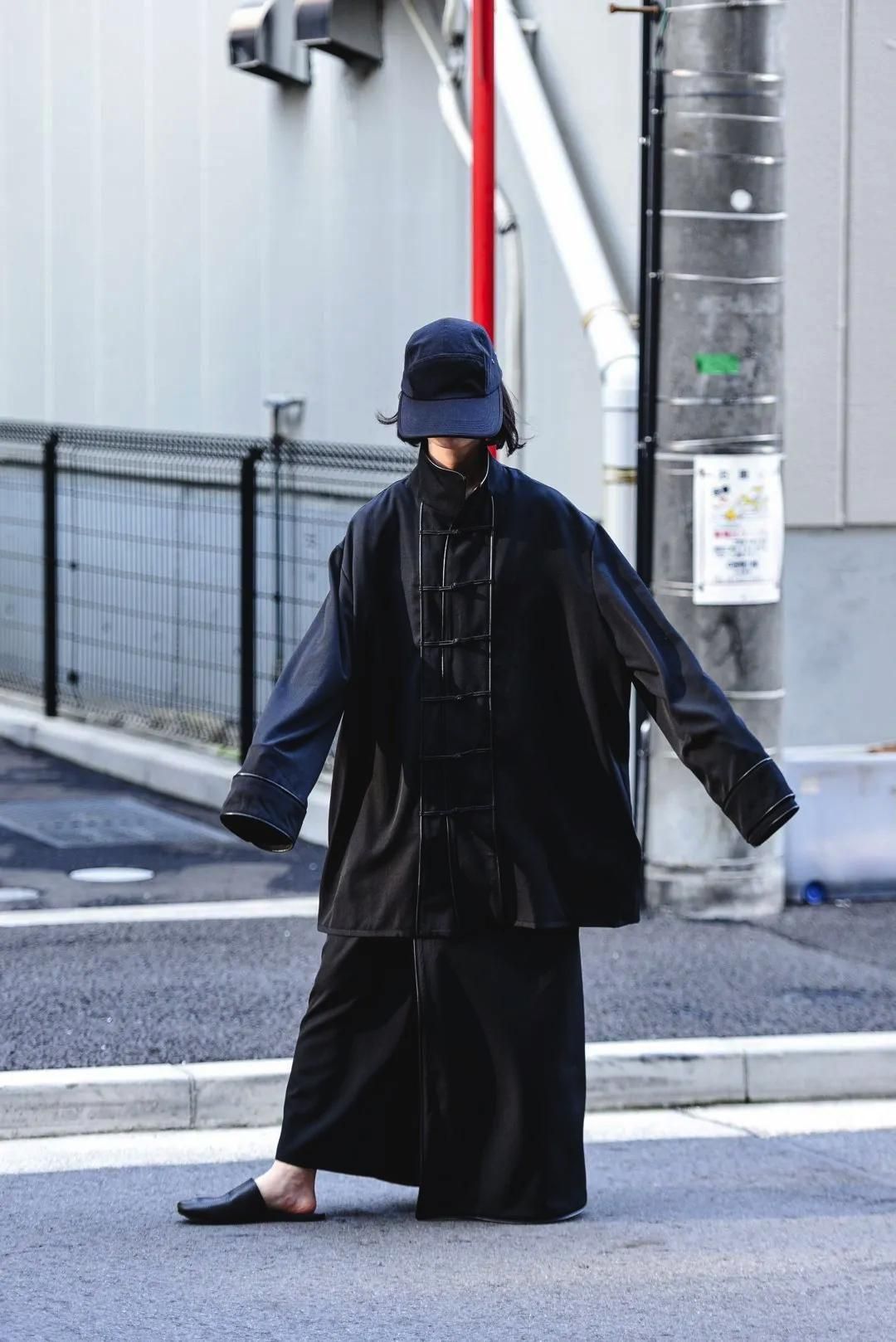 日本で生産される本革レザーパイピングを配したチャイナジャケット。