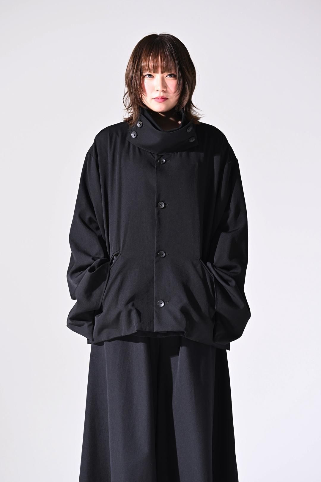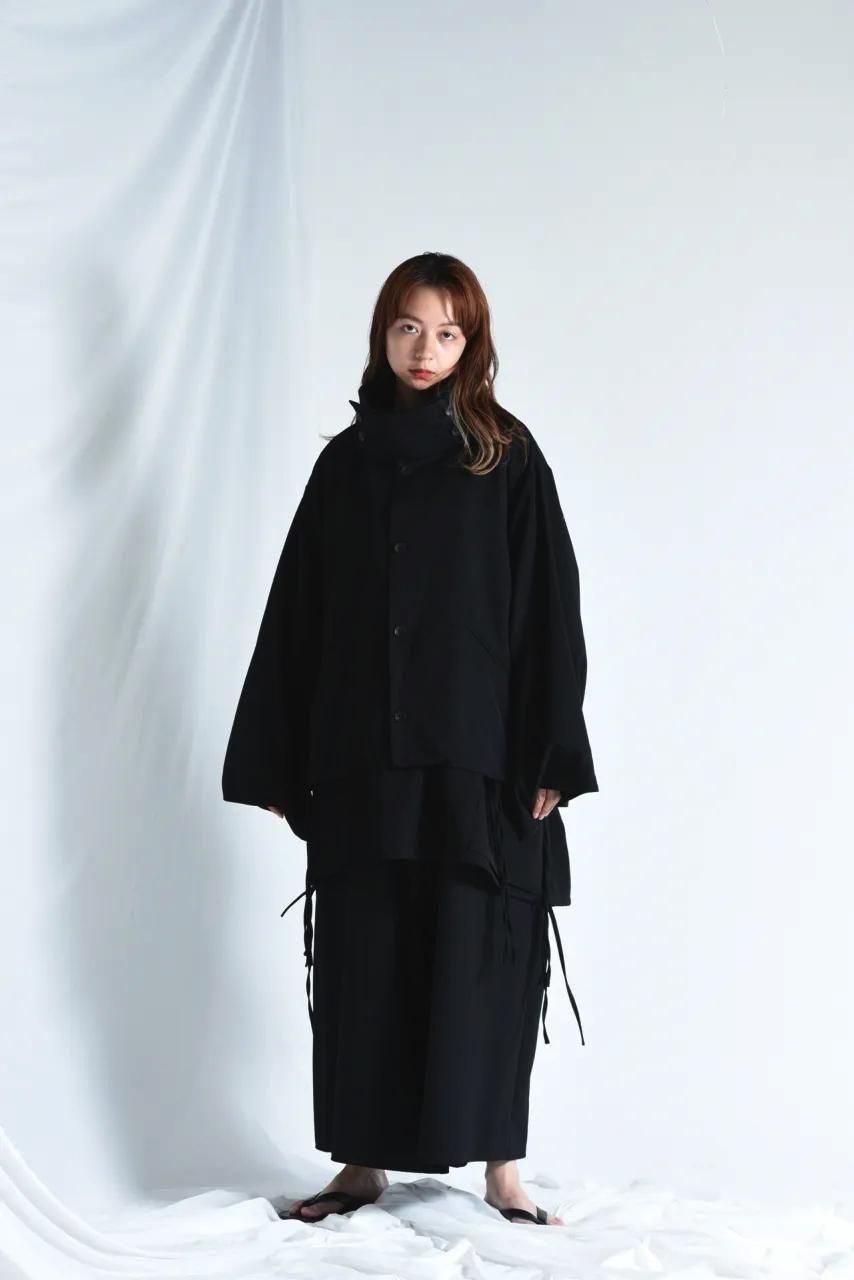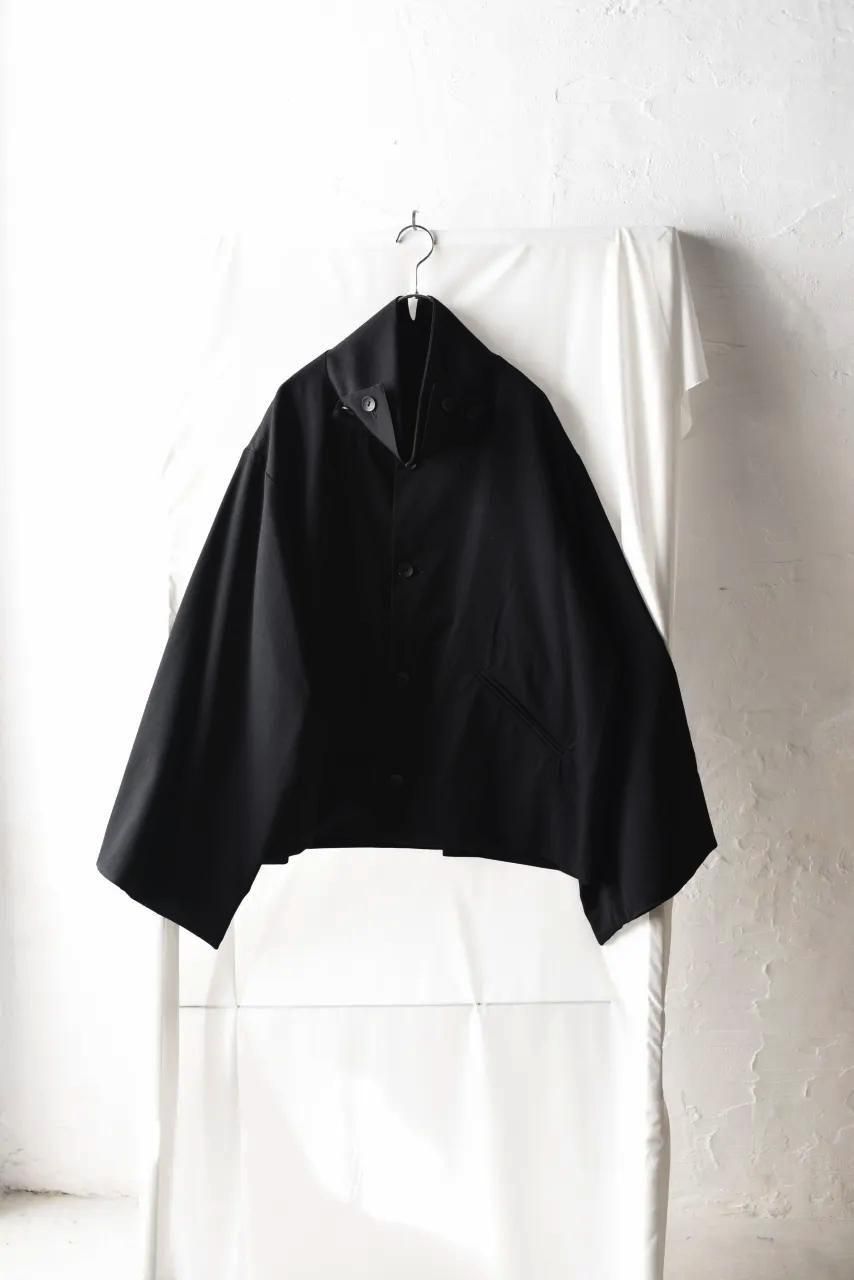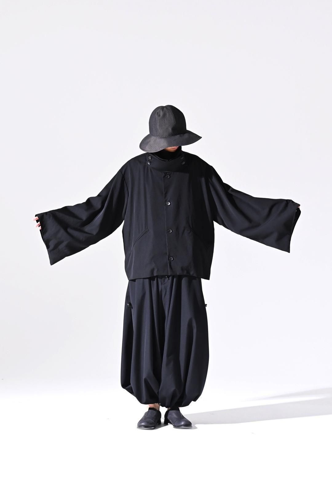 着物の雰囲気を持ったワイドスリーブを採用したスタンドジャケット。