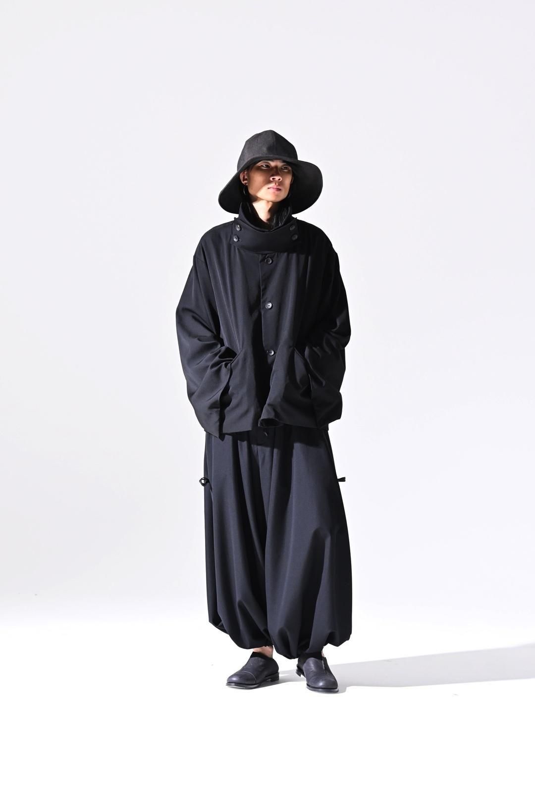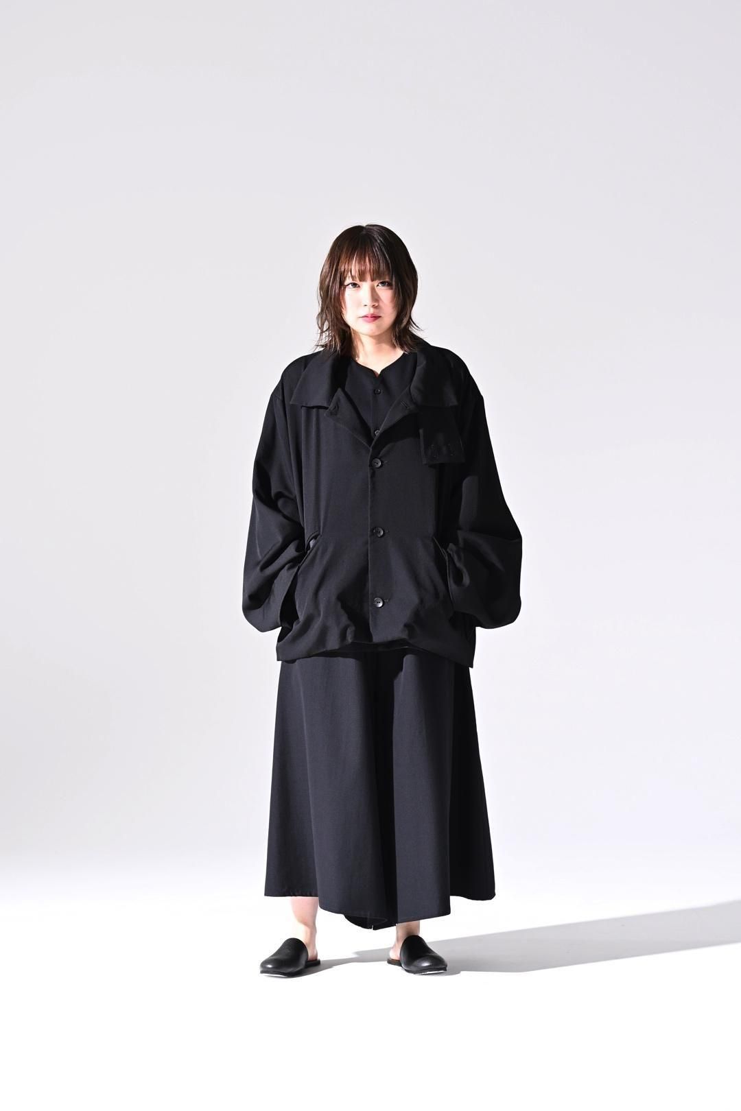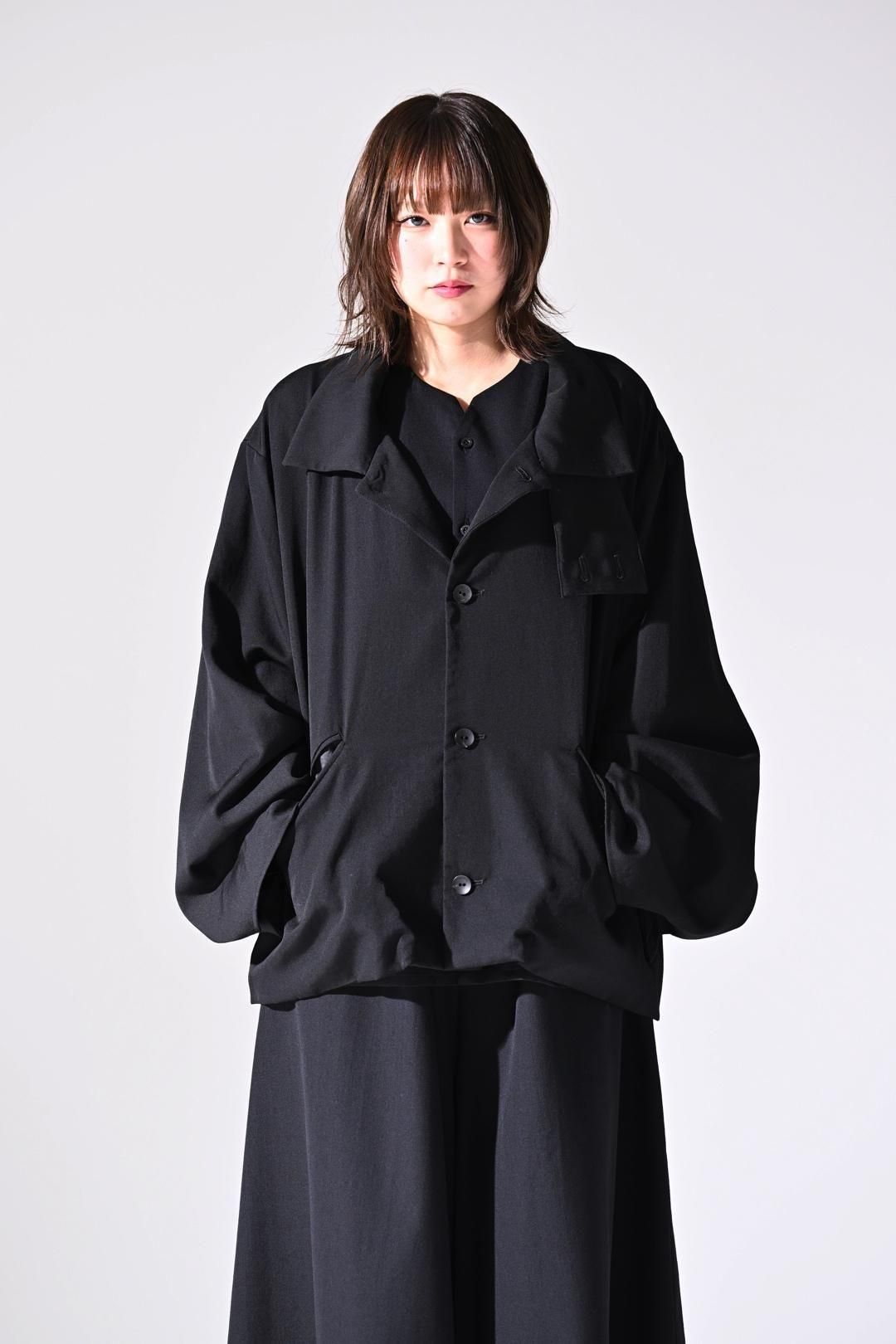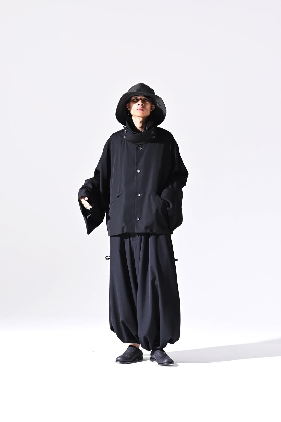 着物の雰囲気を持ったワイドスリーブを採用したスタンドジャケット。