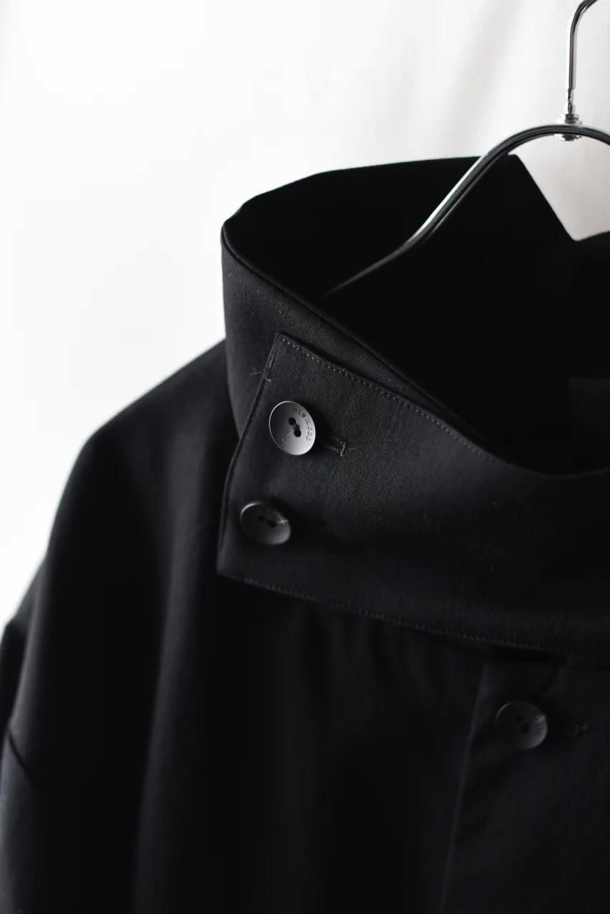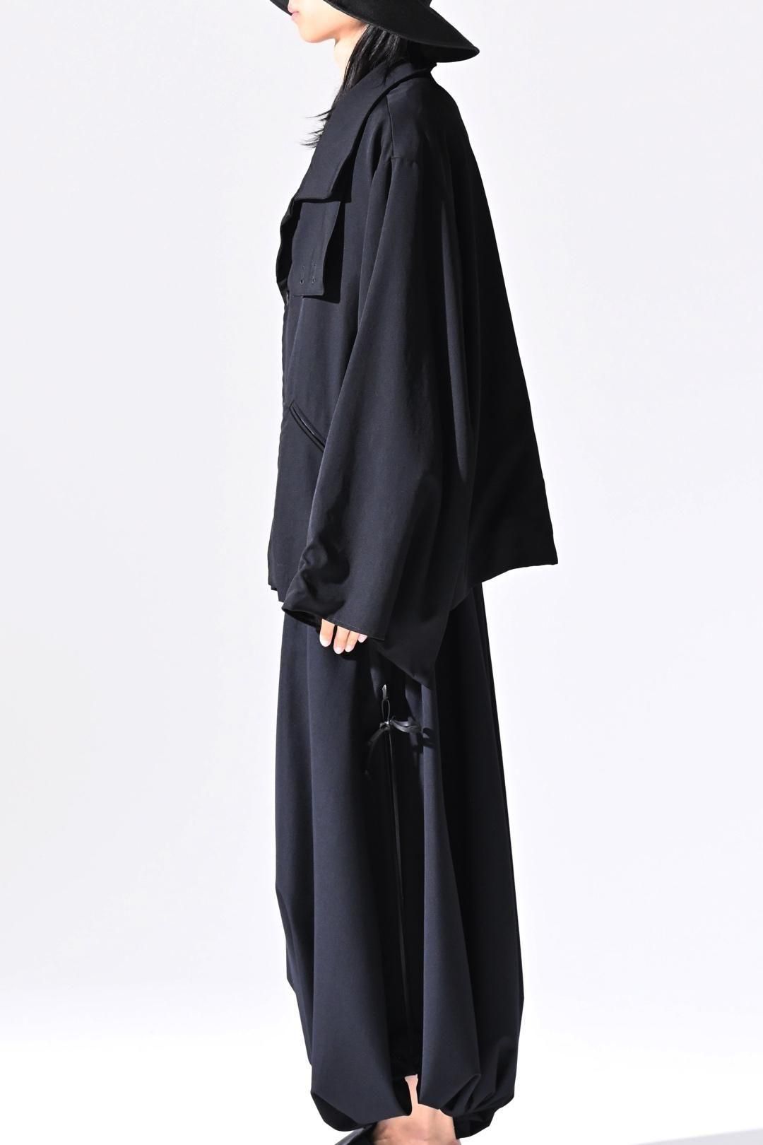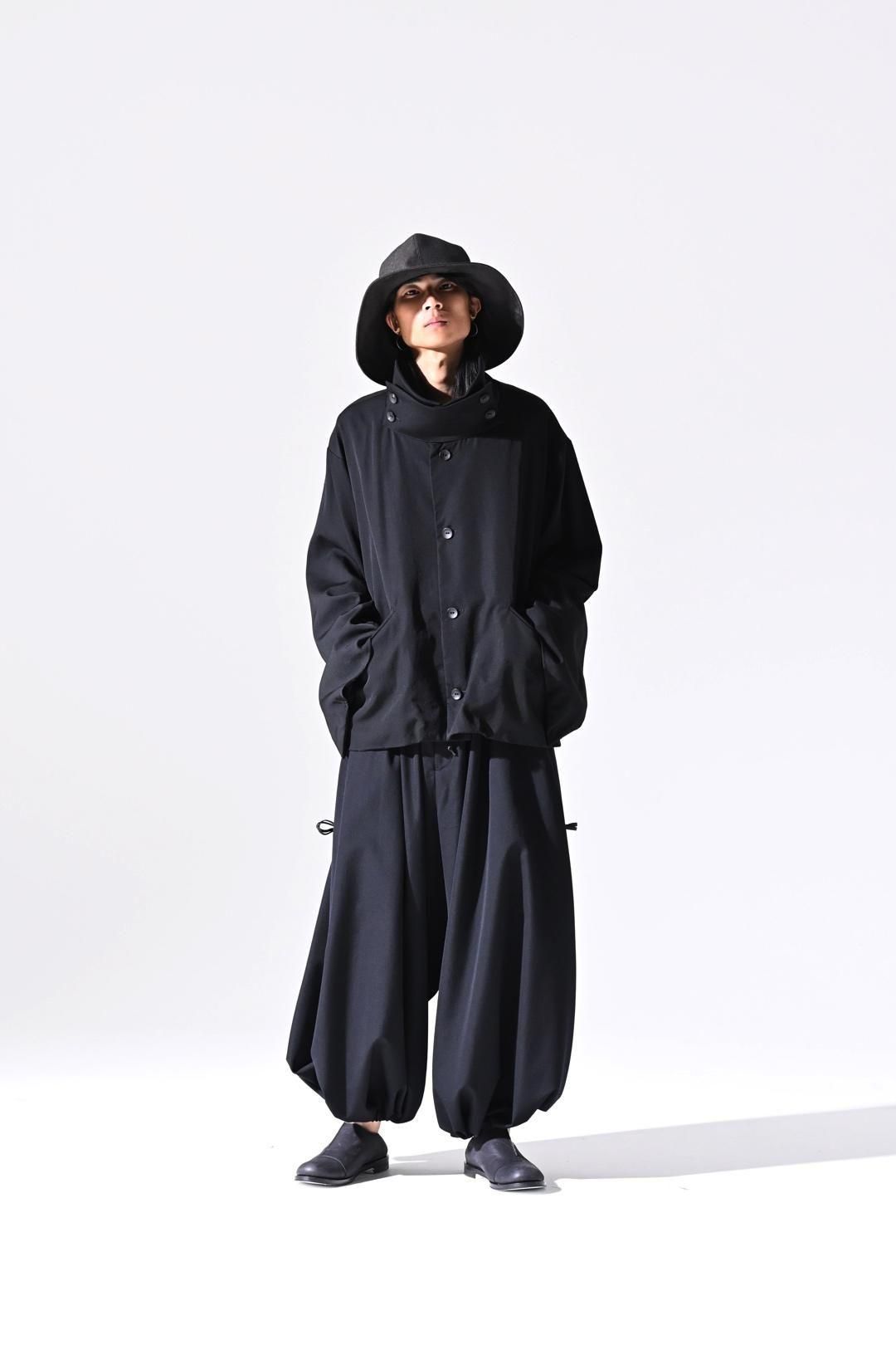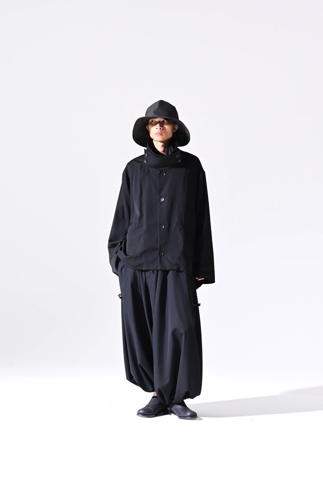 着物の雰囲気を持ったワイドスリーブを採用したスタンドジャケット。