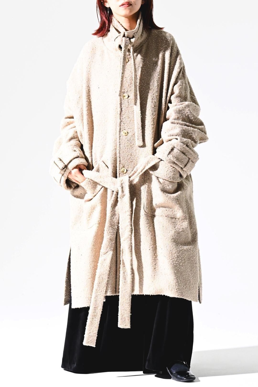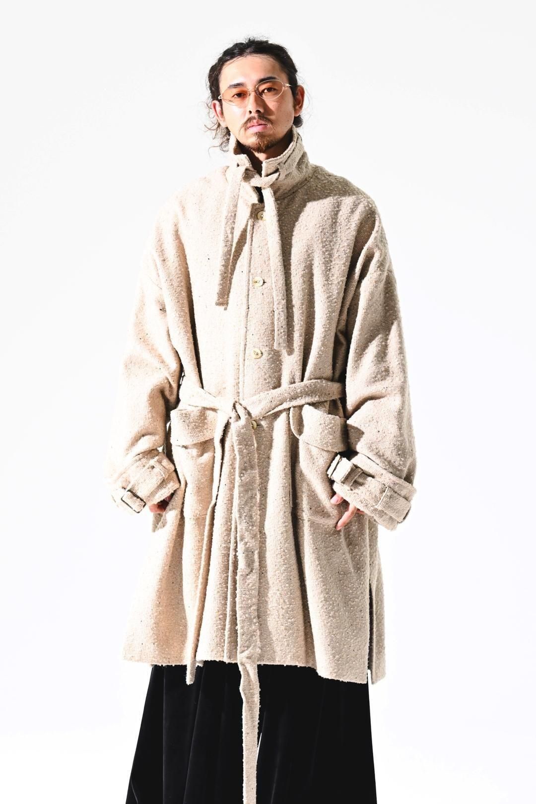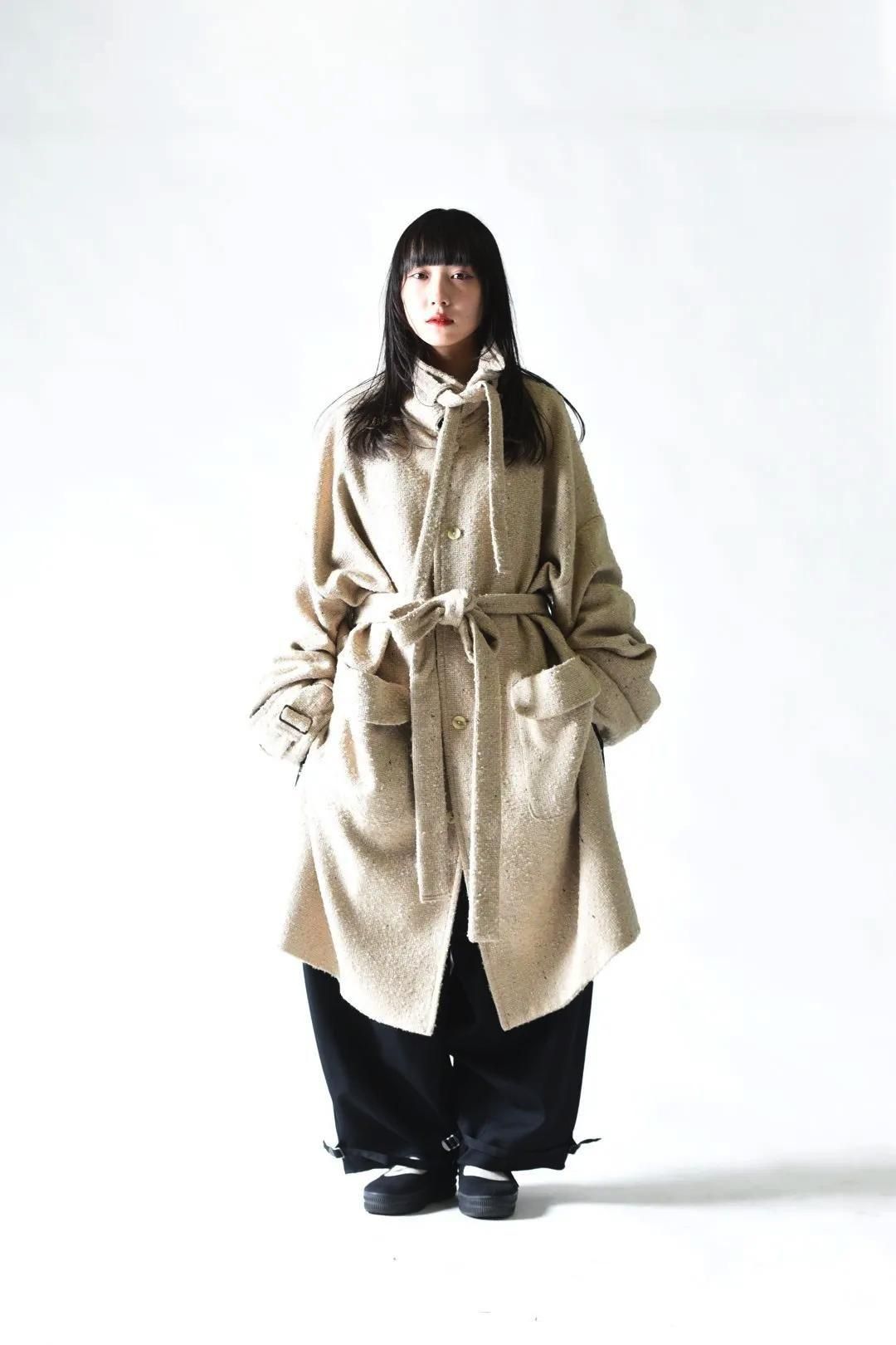 この紐を結んで頂くことでスタンドカラーコートとしてお召し頂けます。